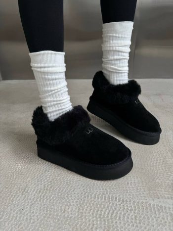 UGG Fur Slippers Black Suede