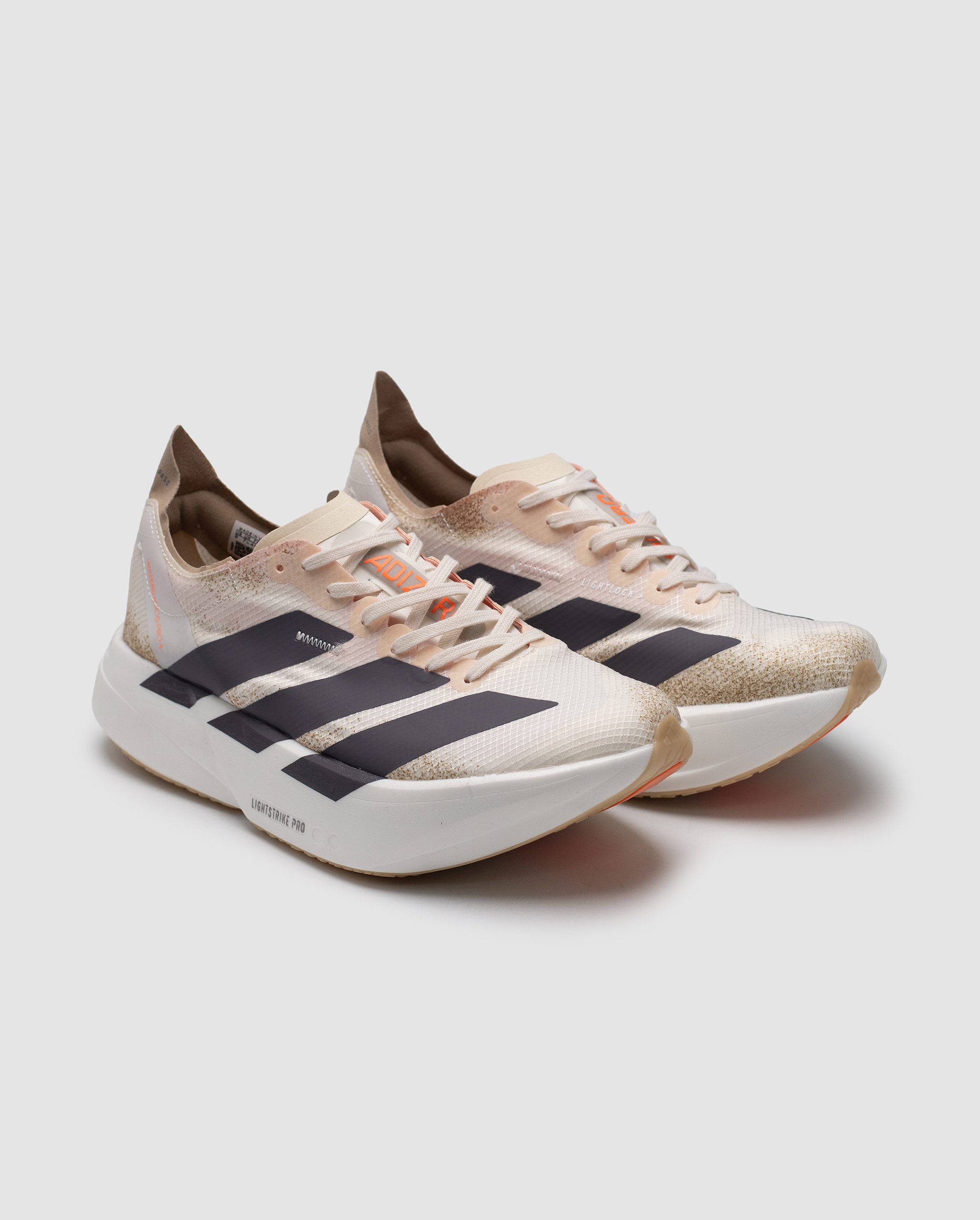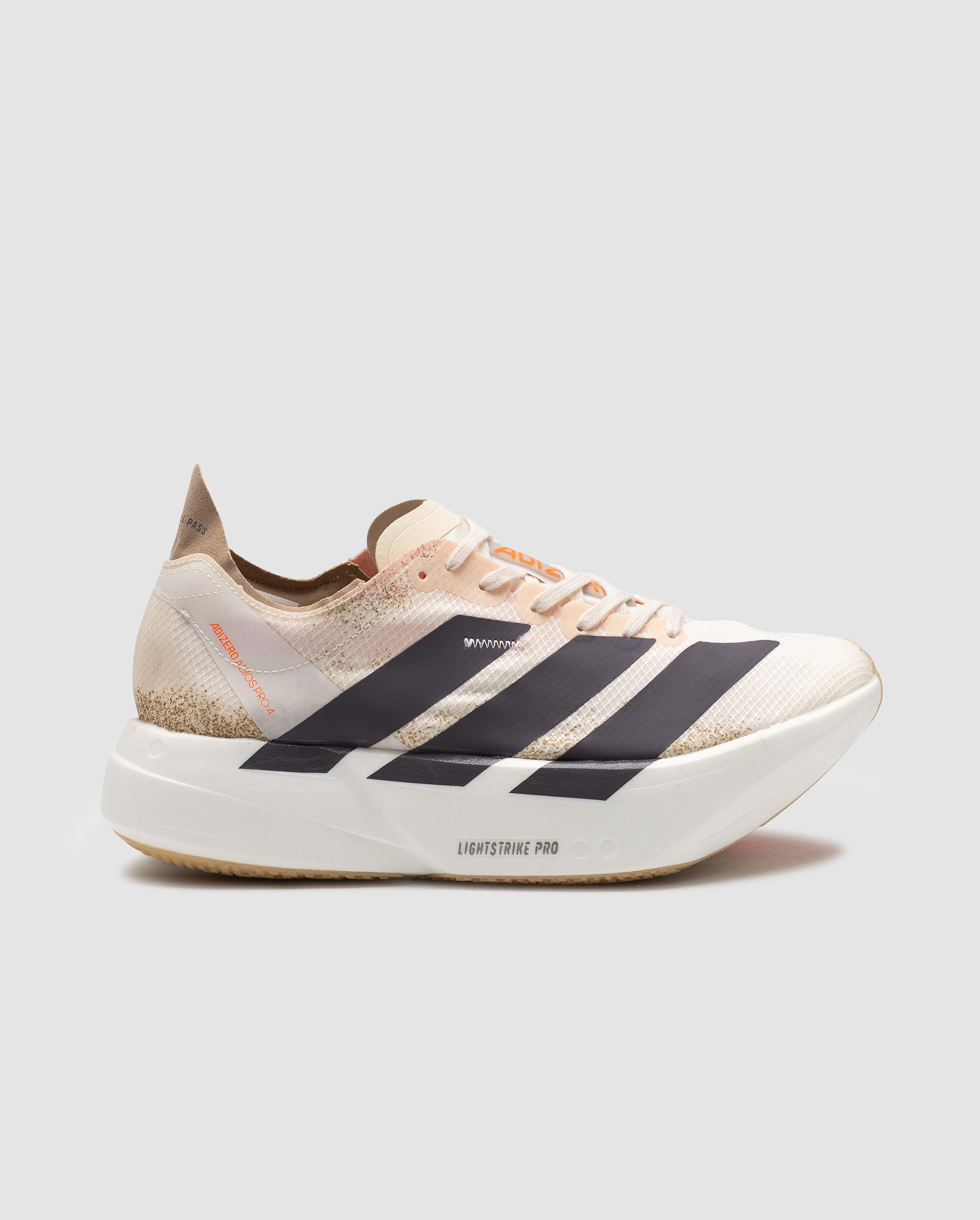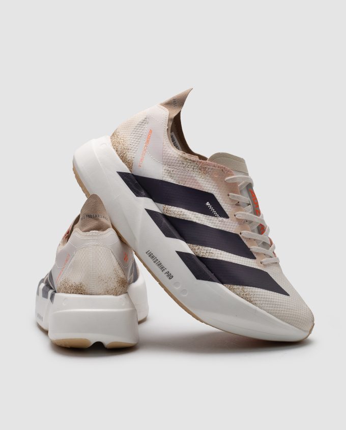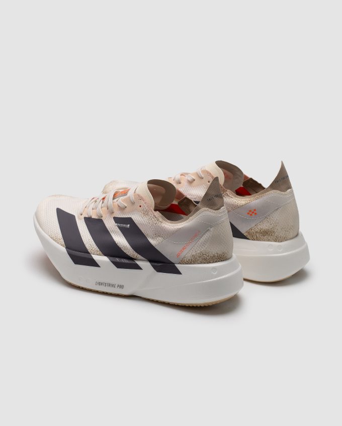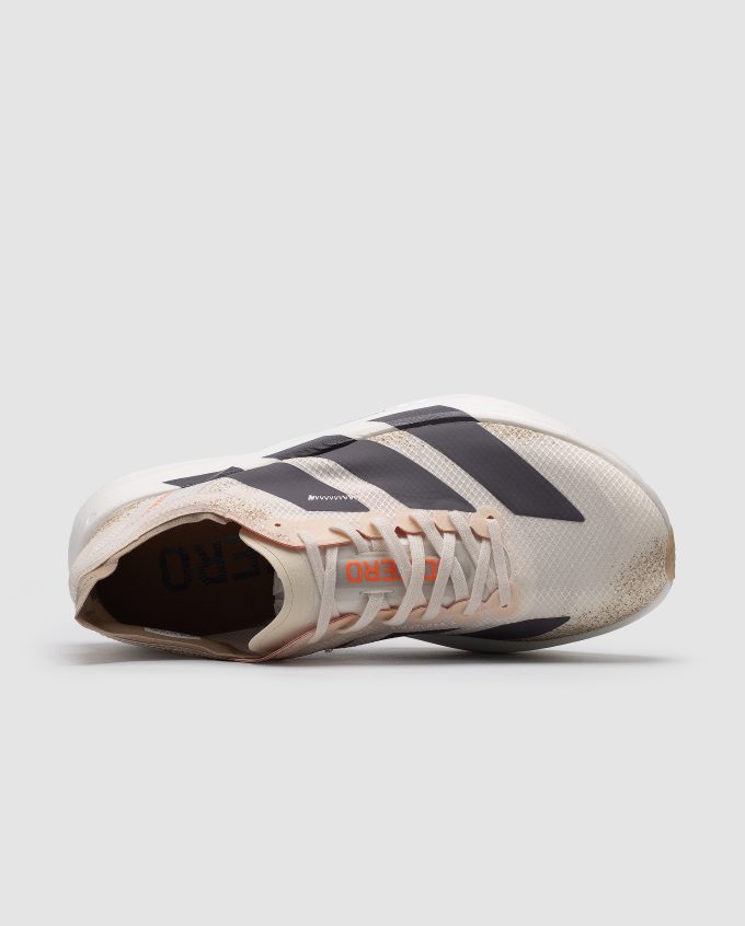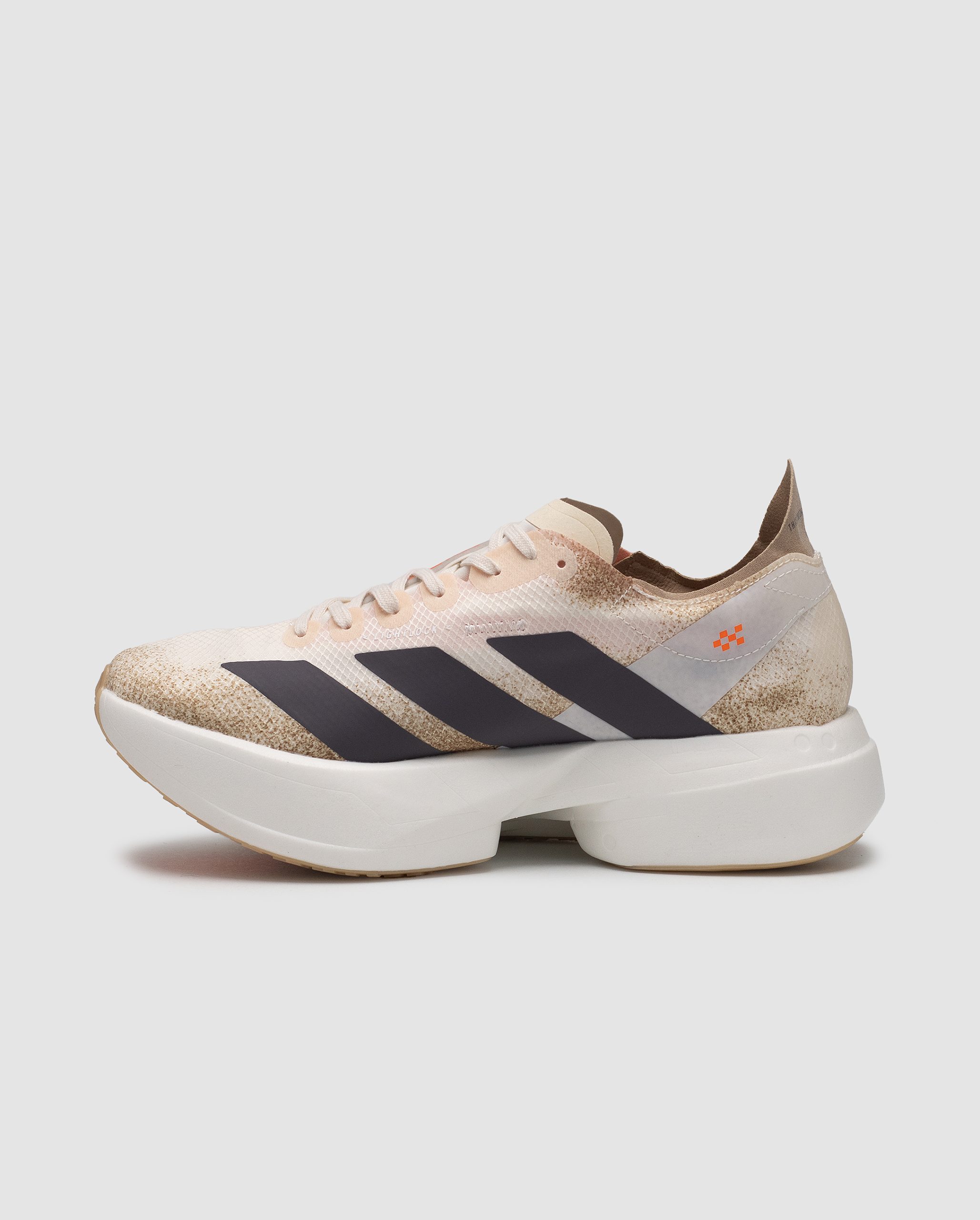 Adidas Adizero Adios Pro 3 M Beige — бігові кросівки в бежевому кольорі з легким дихаючим верхом і високотехнологічною підошвою, створені для максимальної швидкості та комфорту на довгих дистанціях.