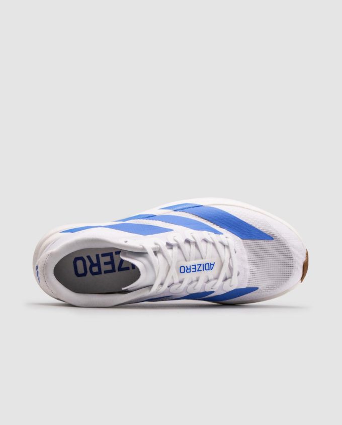 Adidas Adizero Evo SL White/Blue Fusion — надлегка модель із серії Adizero, створена для вибухової динаміки та мінімальної ваги.