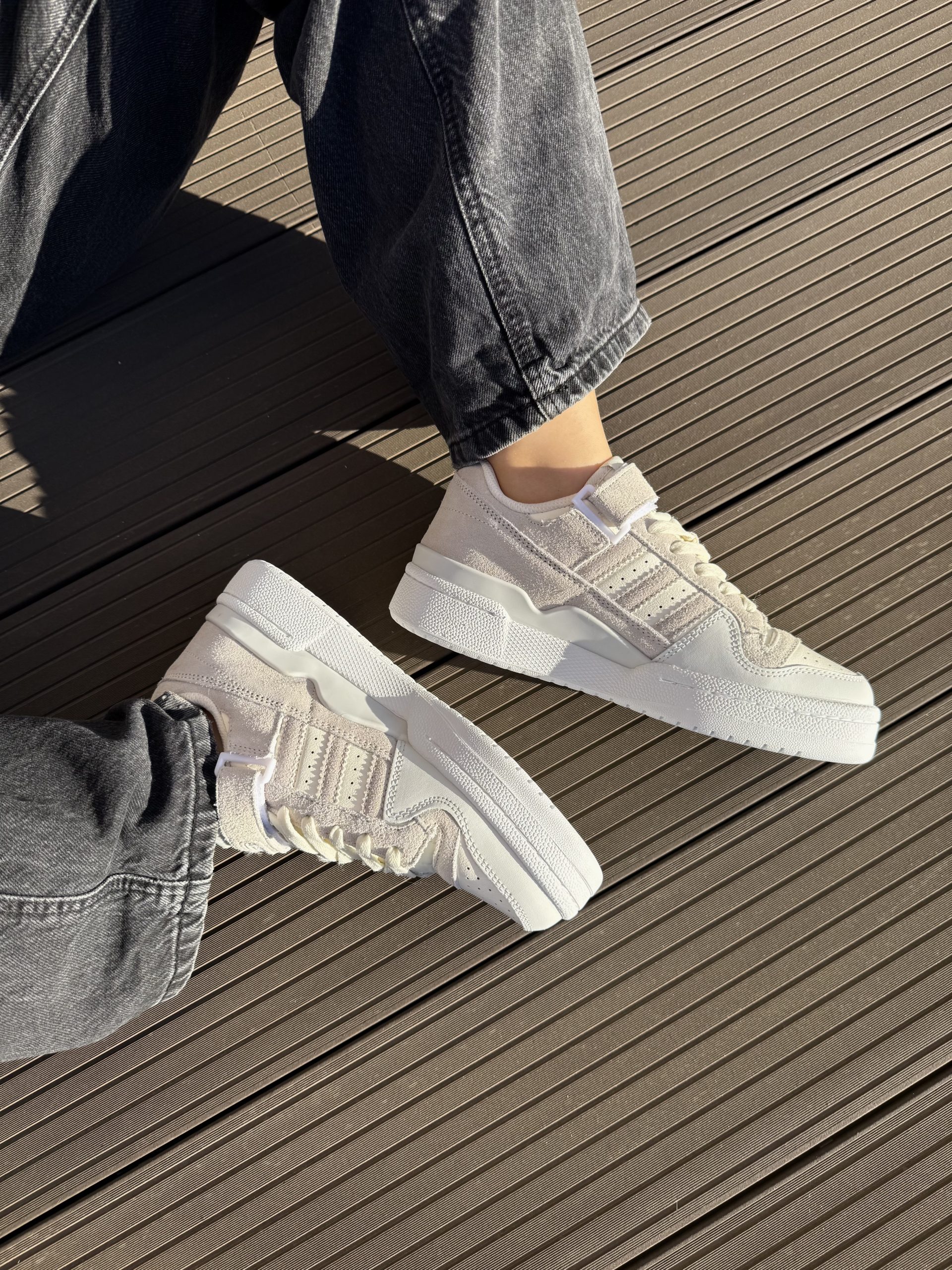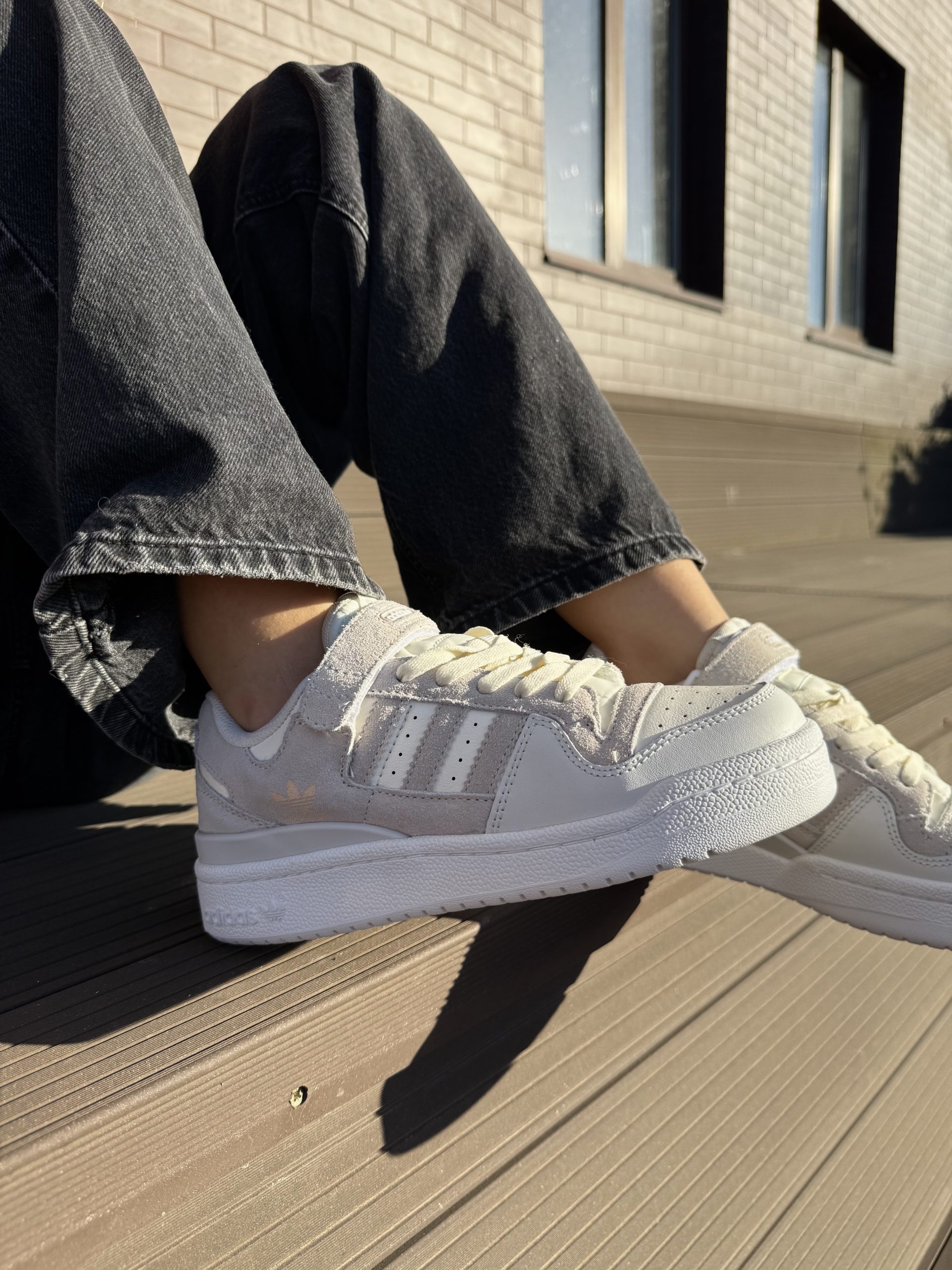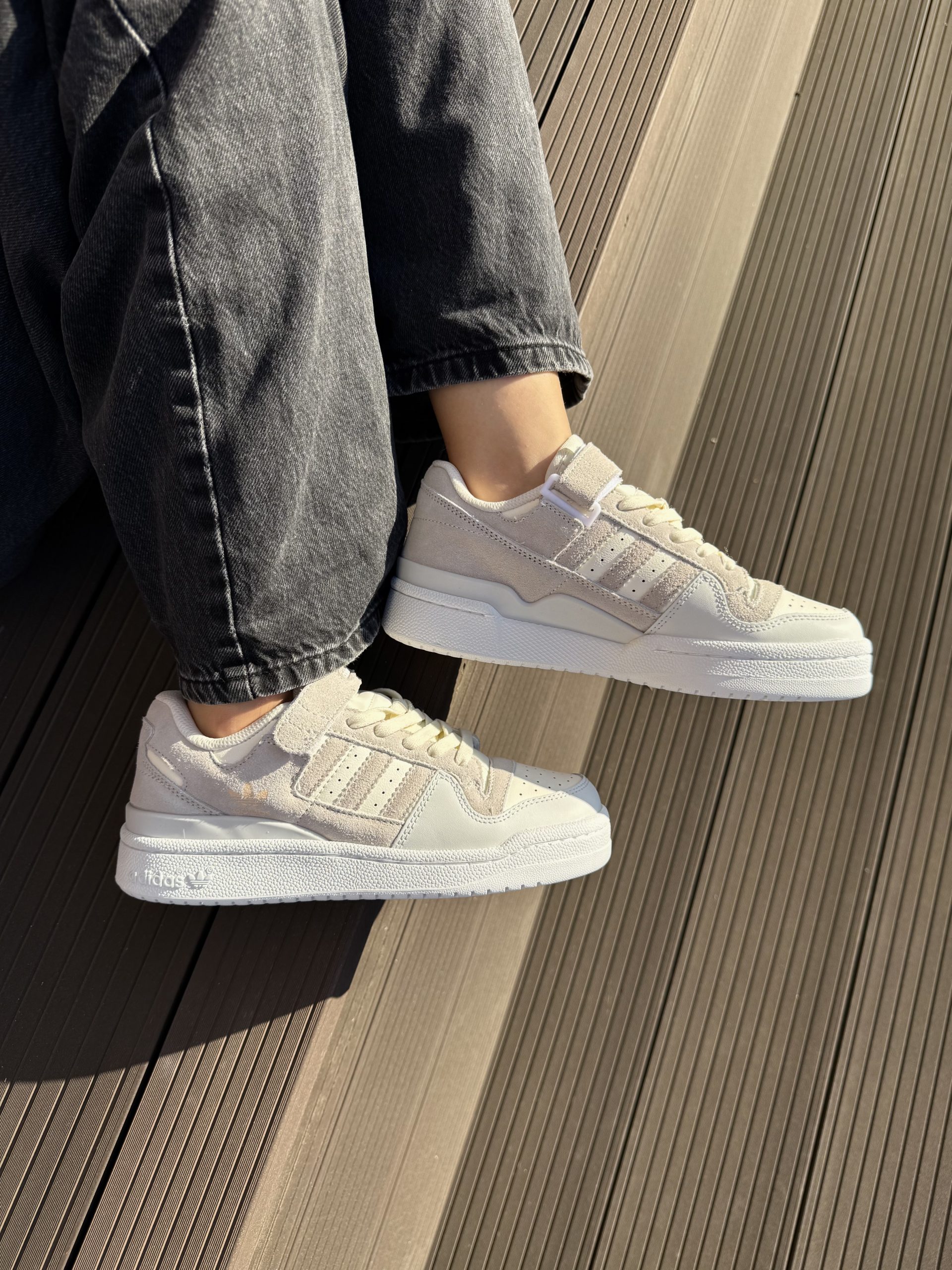 Adidas Forum Low Grey Beige White — стильна модель у поєднанні сірого, бежевого та білого кольорів, що вирізняється комфортом, м’якістю та впізнаваним ретро-силуетом.
