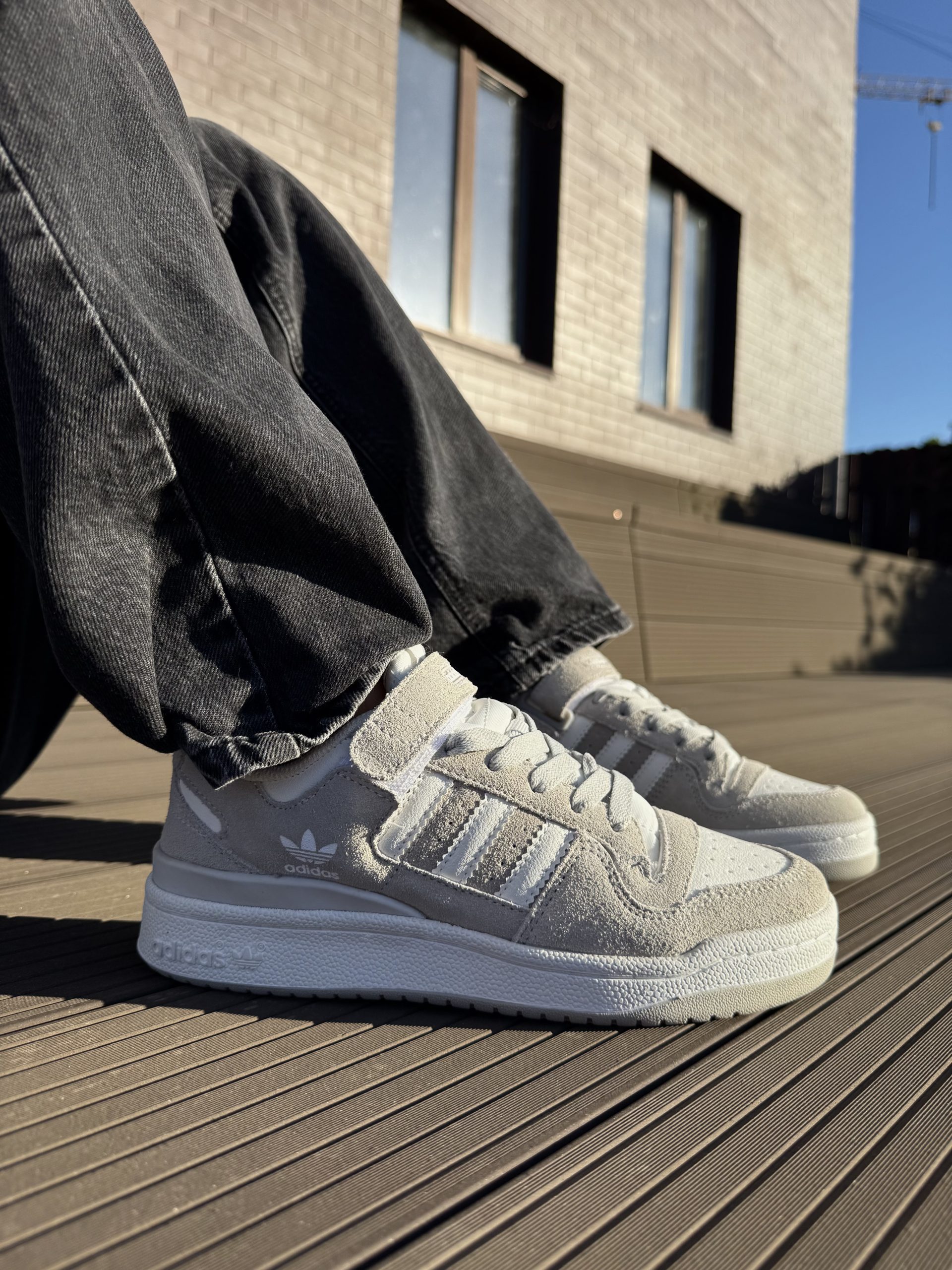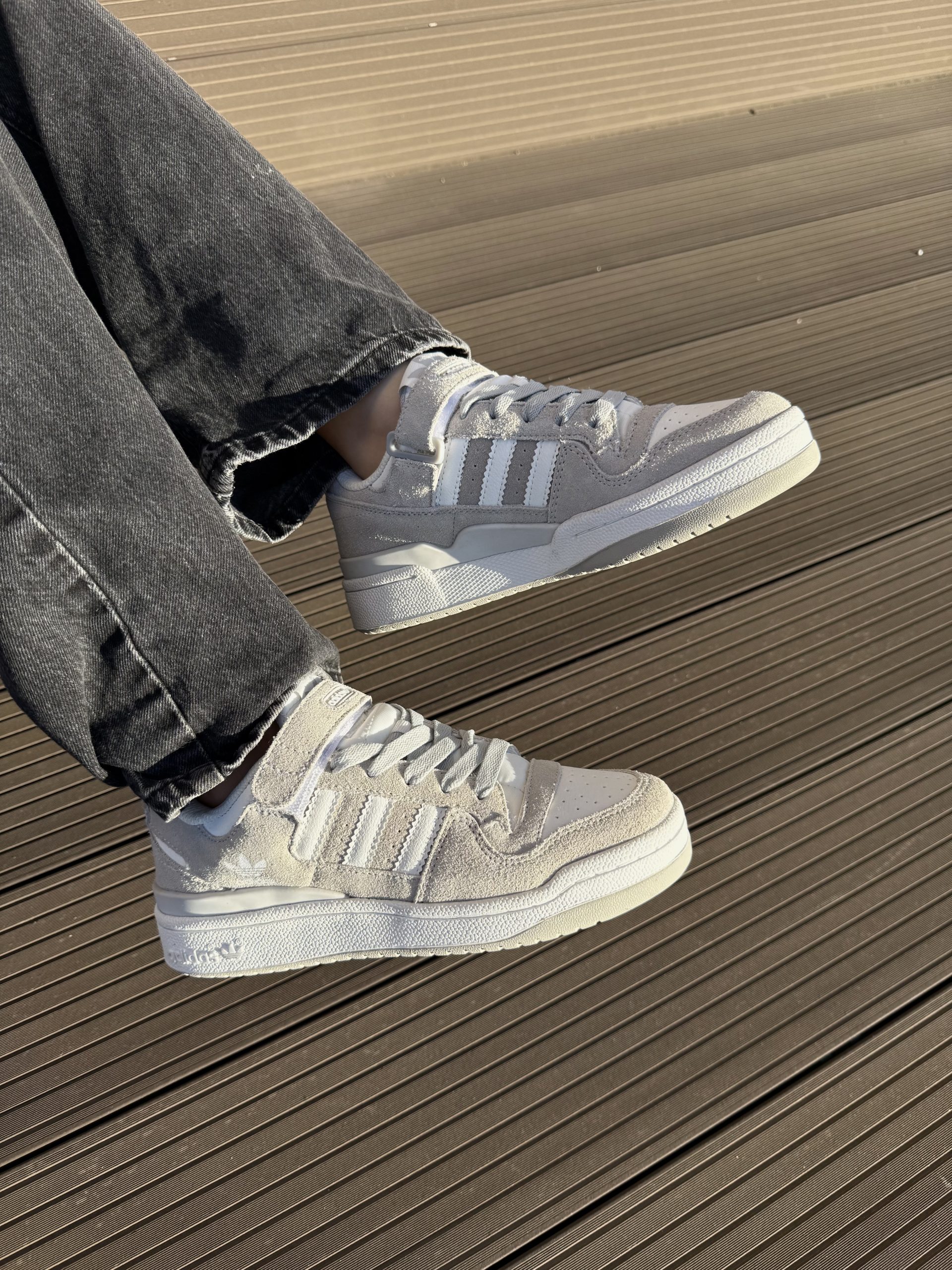 Adidas Forum Low Grey White — класична модель у сірому та білому кольорах, що поєднує комфорт, підтримку й упізнаваний ретро-дизайн у сучасному виконанні.