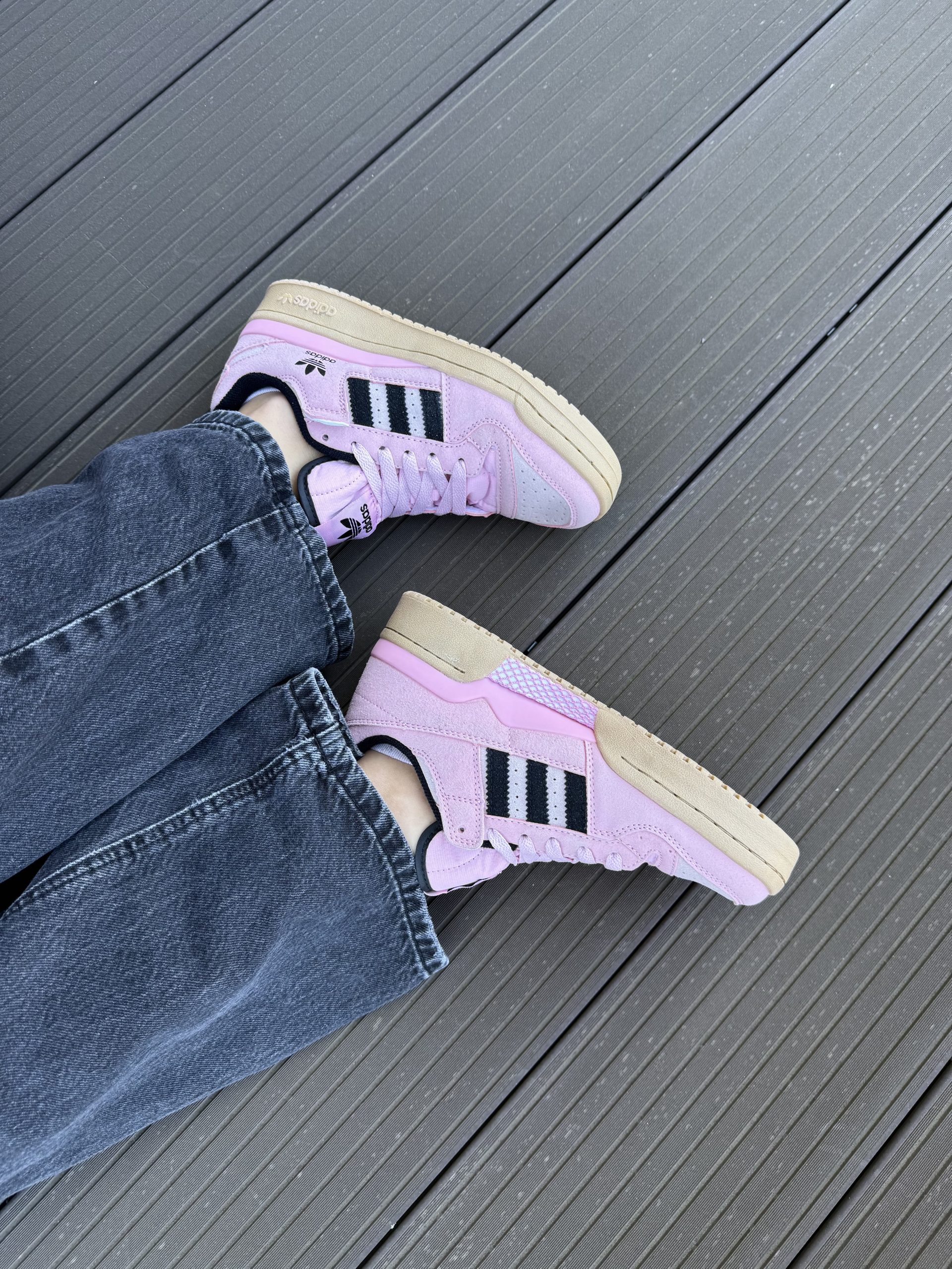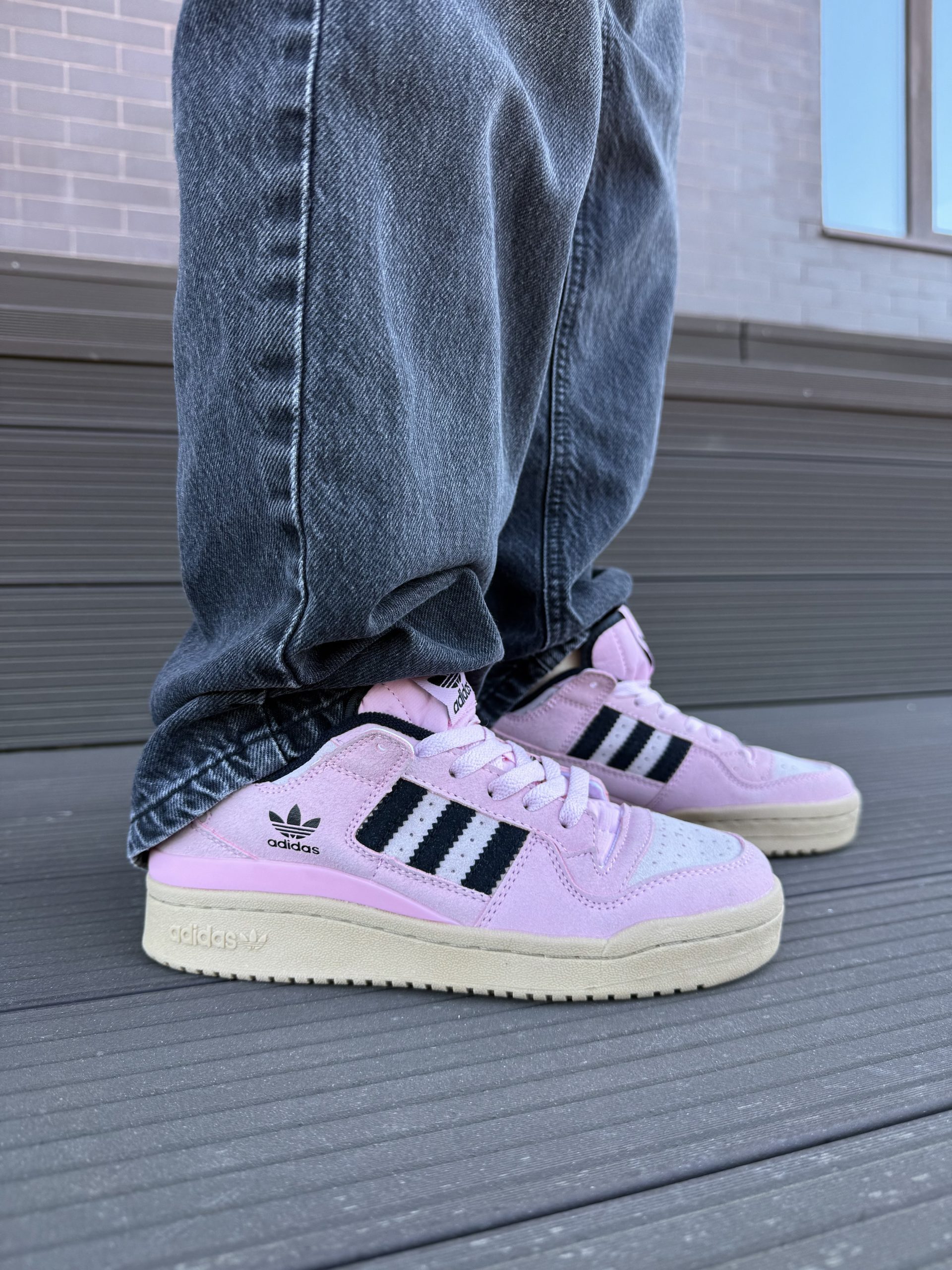 Adidas Forum Low Pink Black Gum — стильна модель у рожево-чорній гамі з контрастною гумовою підошвою, що поєднує ретро-естетику та сучасний комфорт на кожен день.