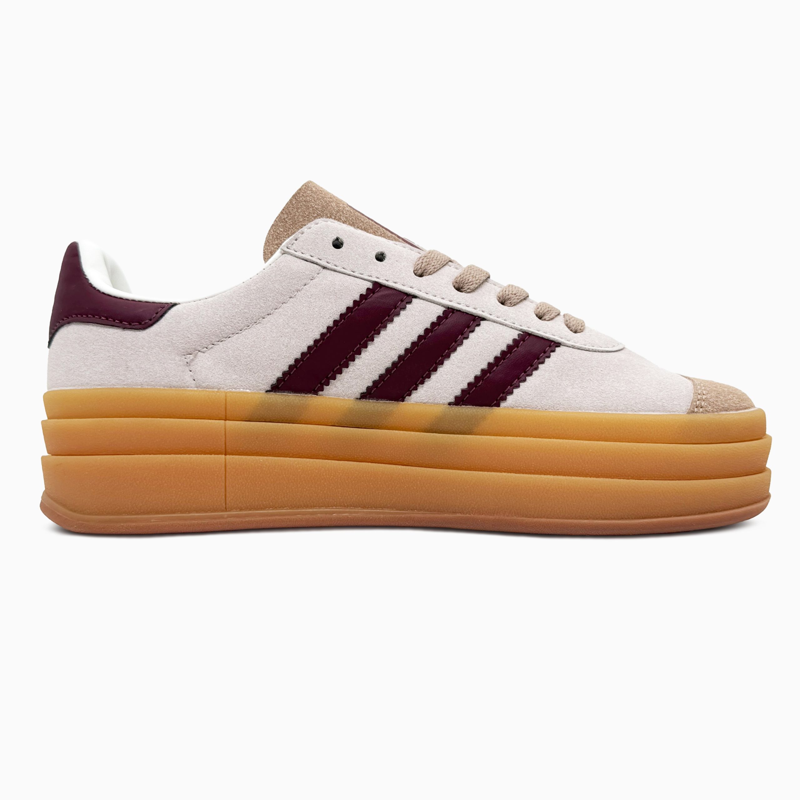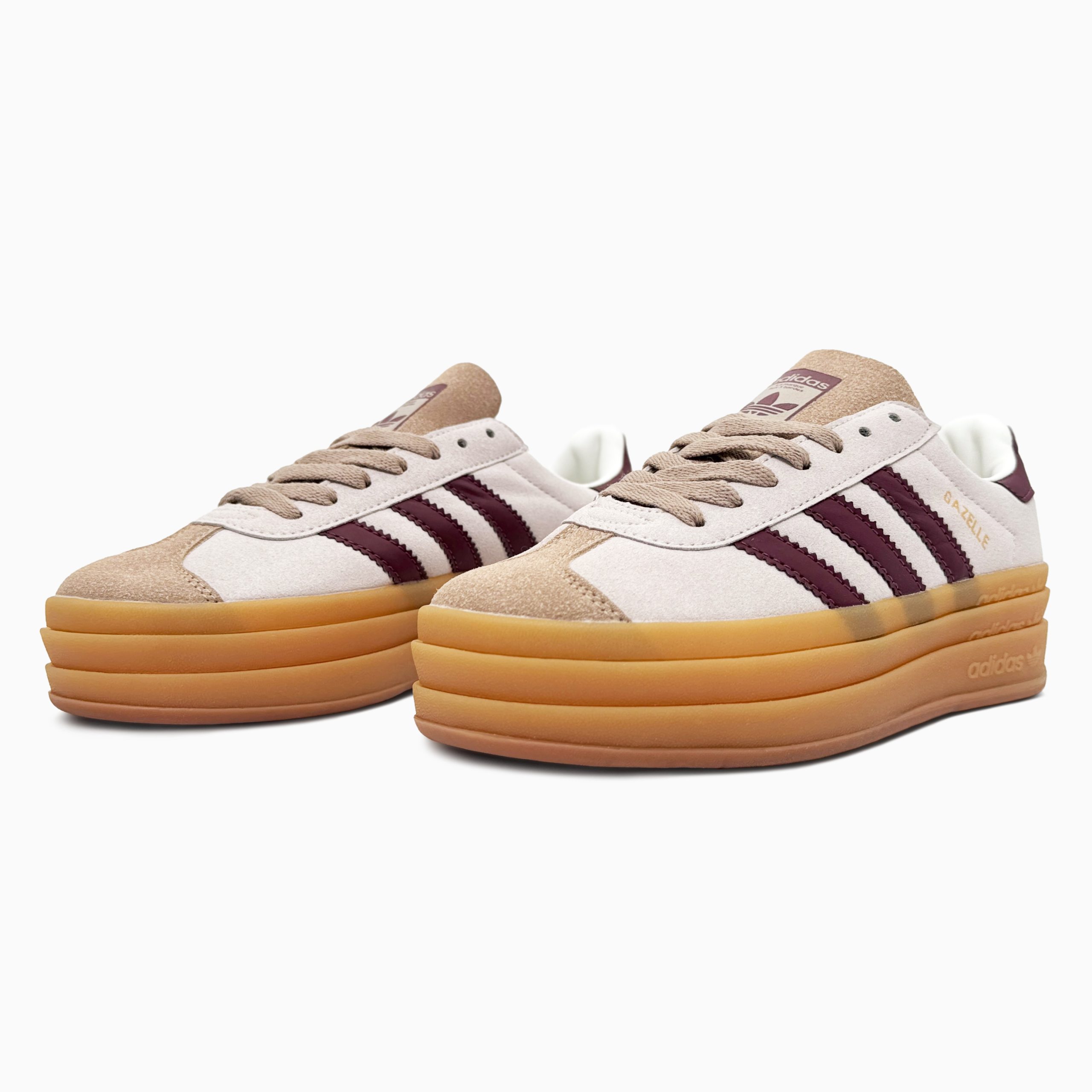 Adidas Gazelle Bold Cream Maroon — модель у кремовому кольорі з бордовими акцентами та високою підошвою, що поєднує ретро-естетику, виразний силует і комфортну посадку для повсякденного стилю.
