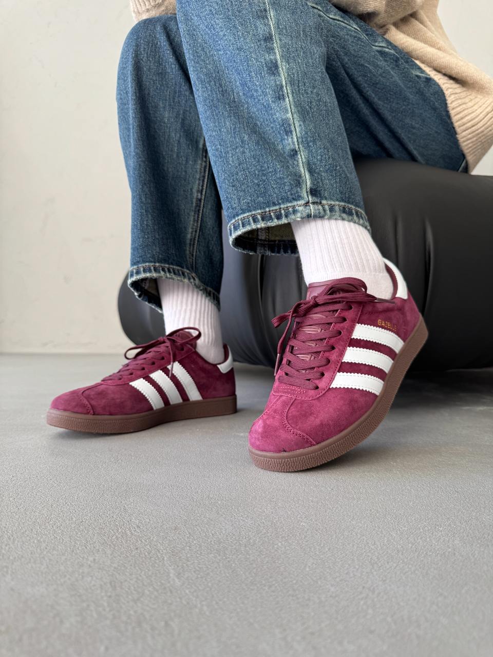 Adidas Gazelle Bordo — універсальні кеди в глибокому бордовому кольорі, які поєднують стиль ретро і комфорт.