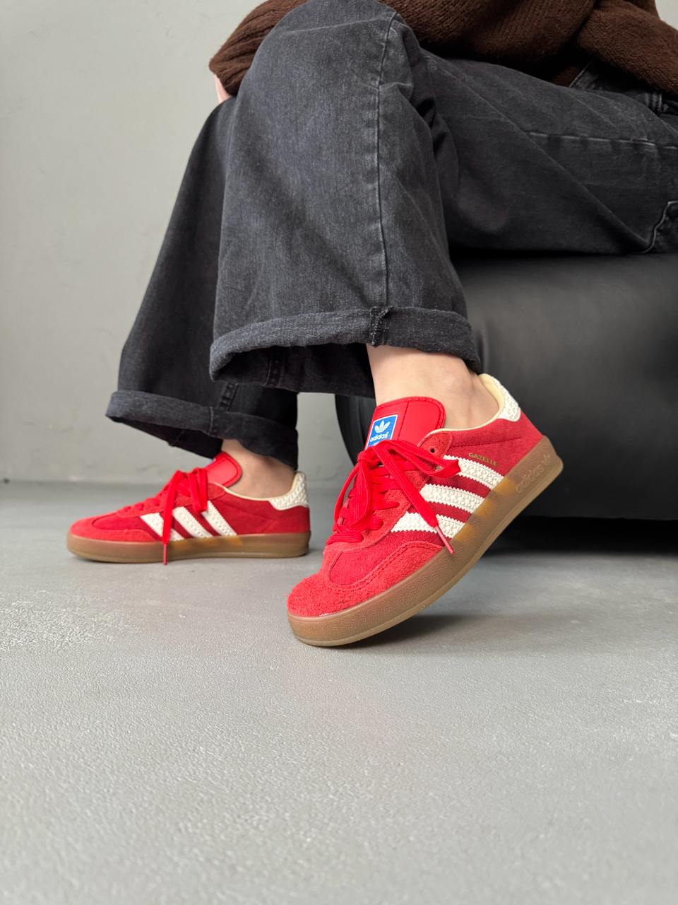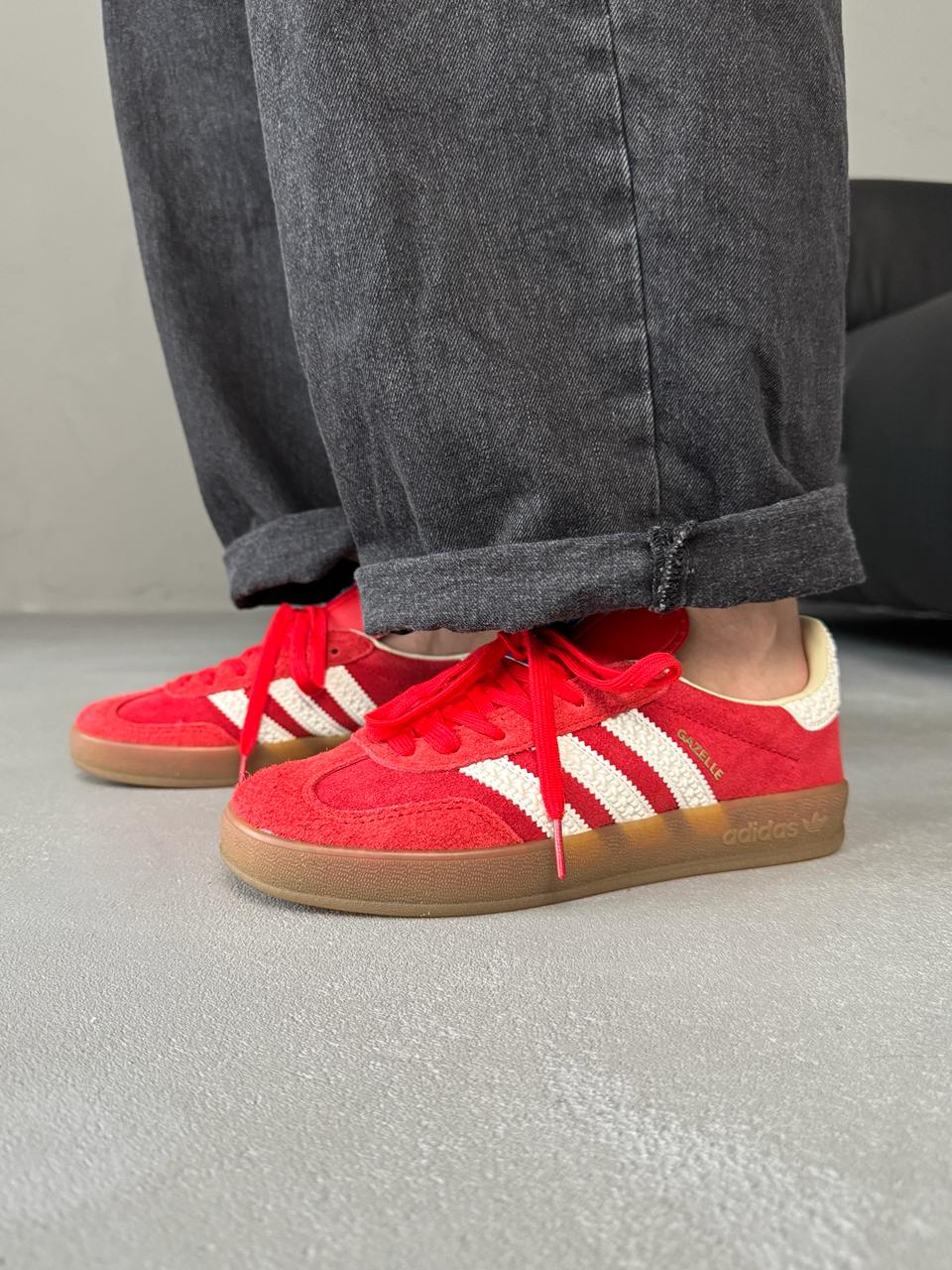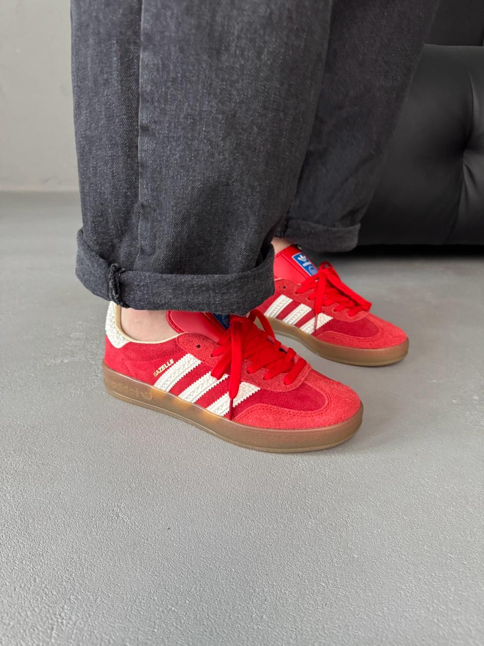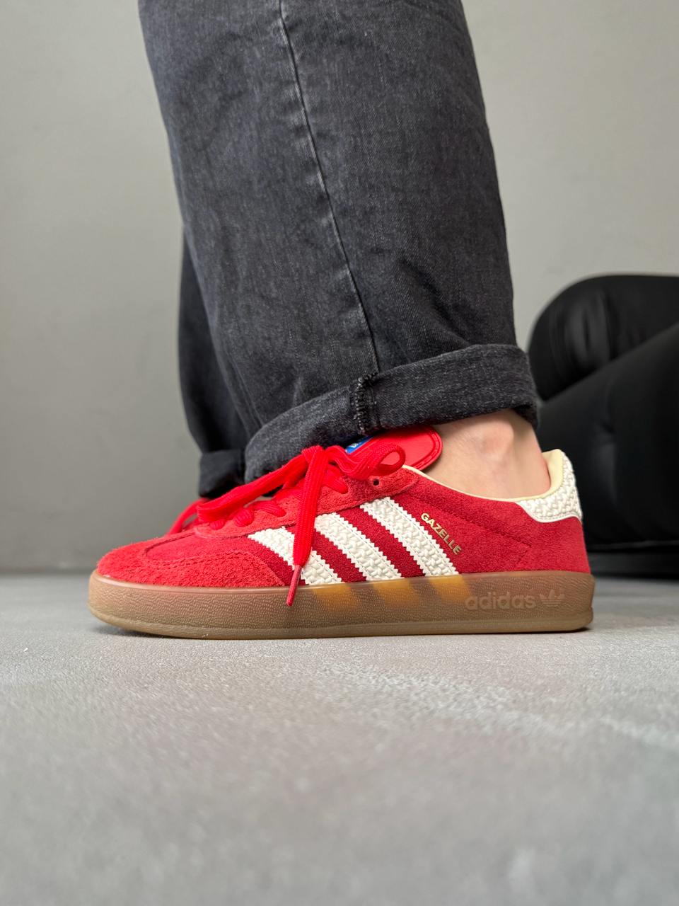 Adidas Gazelle Red — яскрава модель у насиченому червоному кольорі з культовим силуетом, що поєднує класичний спортивний стиль, впізнаваний дизайн та універсальність у поєднанні з різними образами.