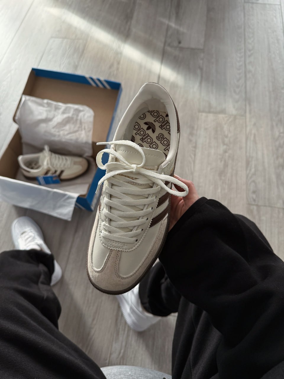 Adidas Handball Spezial Brown Cream White — класична модель у кремово-білій гамі з коричневими акцентами та ретро-силуетом, що поєднує стриманий дизайн, комфортну посадку та універсальний повсякденний стиль.