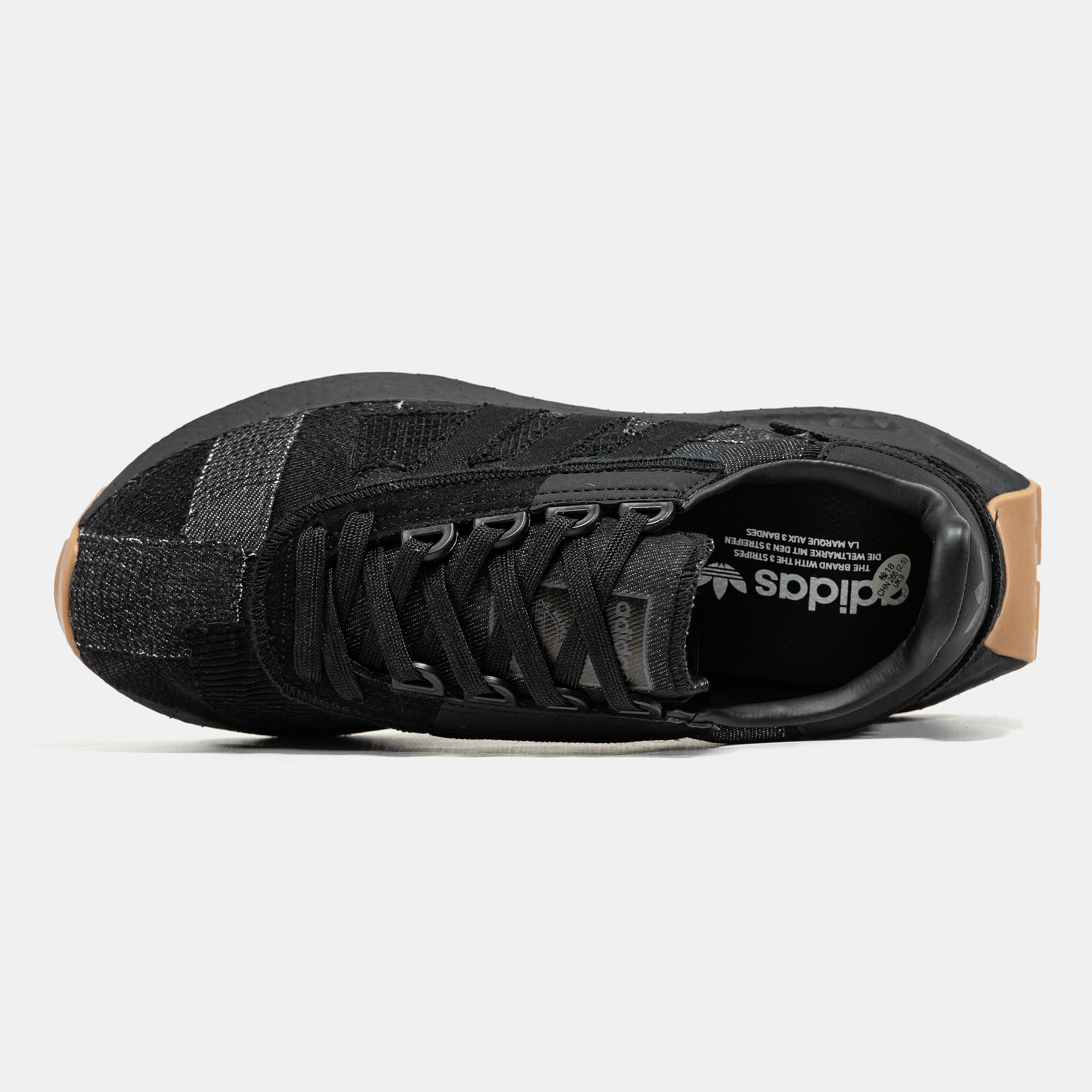 Adidas Retropy E5 Black Gum — модель у чорному кольорі з гумовою підошвою та ретро-натхненням, що поєднує акуратний силует, комфортну посадку та стриманий повсякденний стиль.