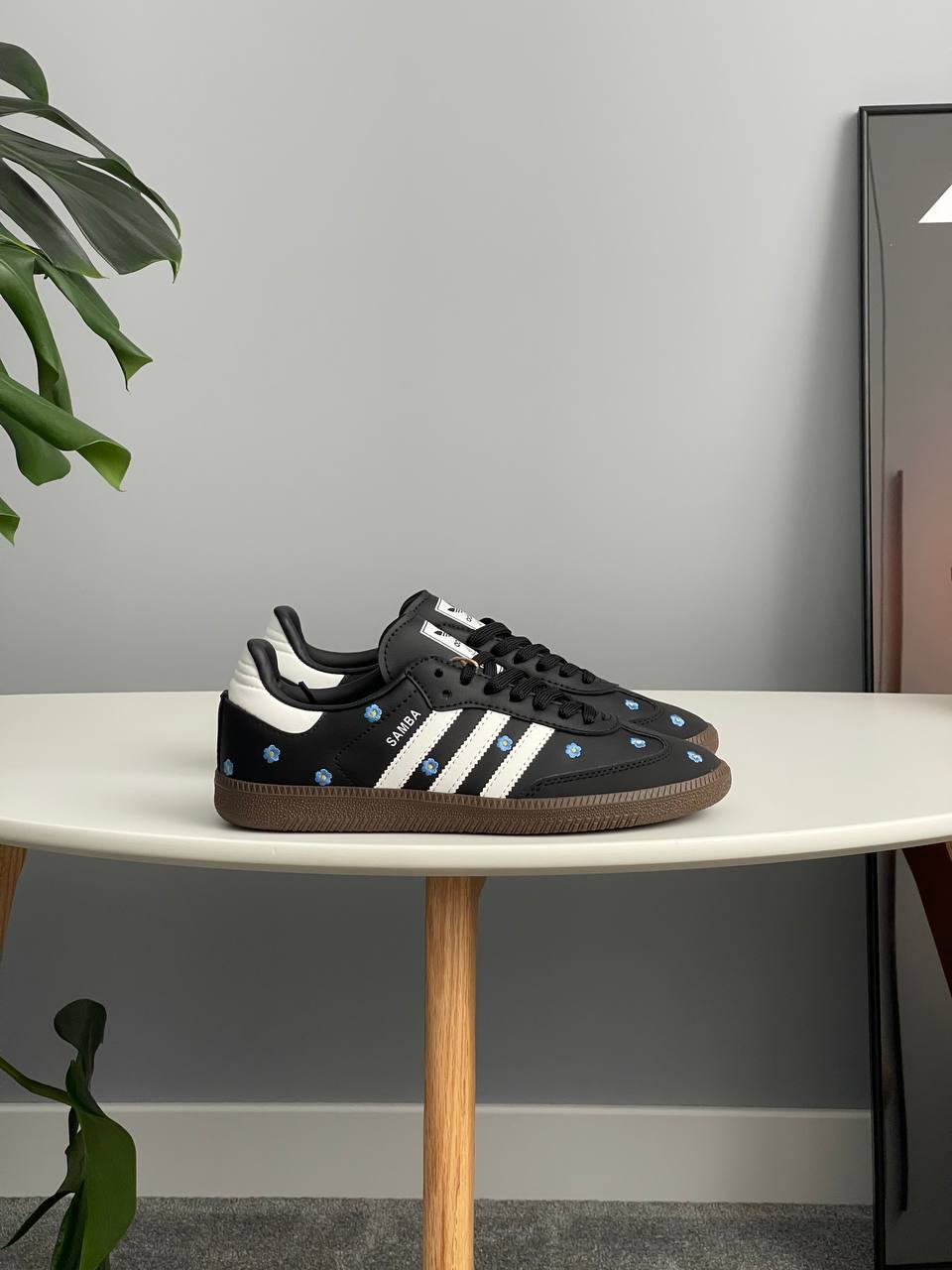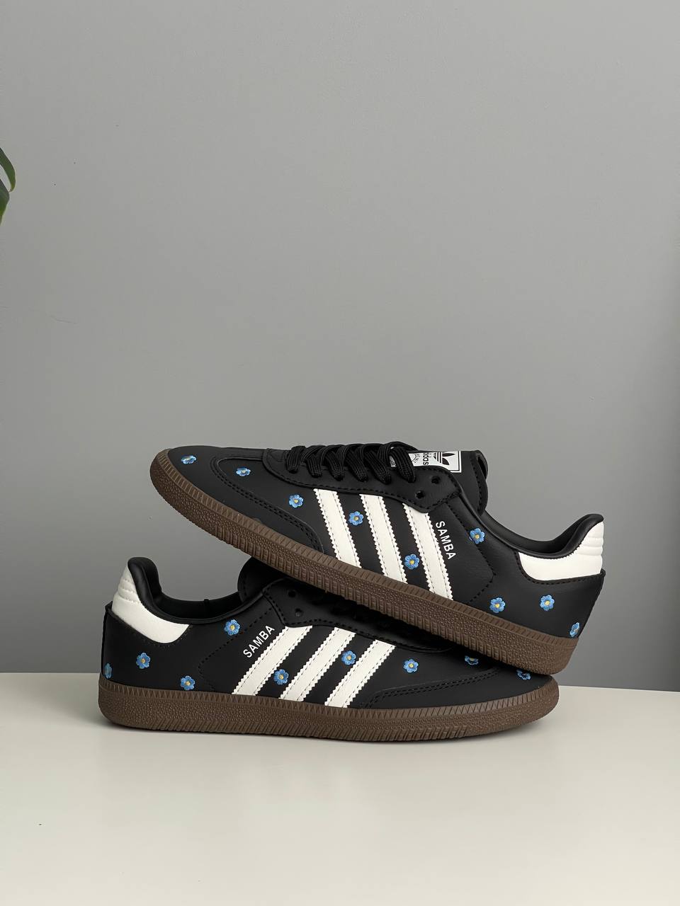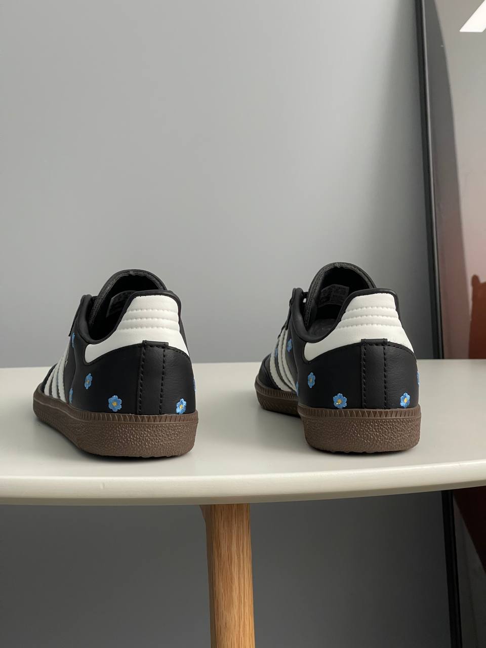 Adidas Samba Black Floral Embroidery— класика з жіночним акцентом: елегантне поєднання чорного шкіряного верху з витонченими квітковими вишивками.