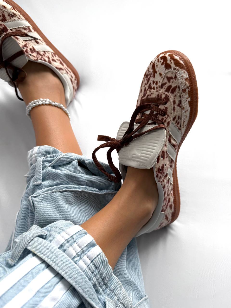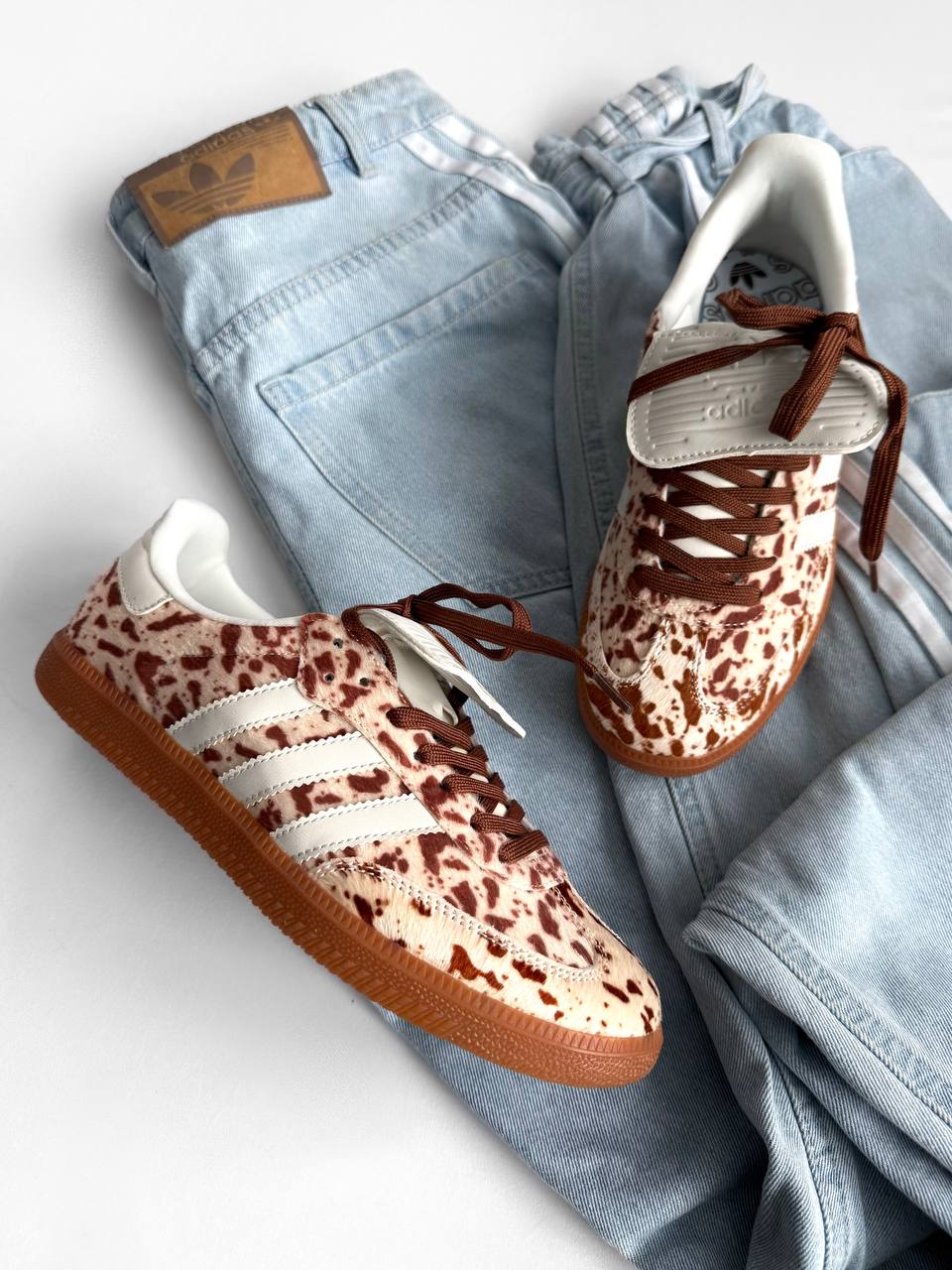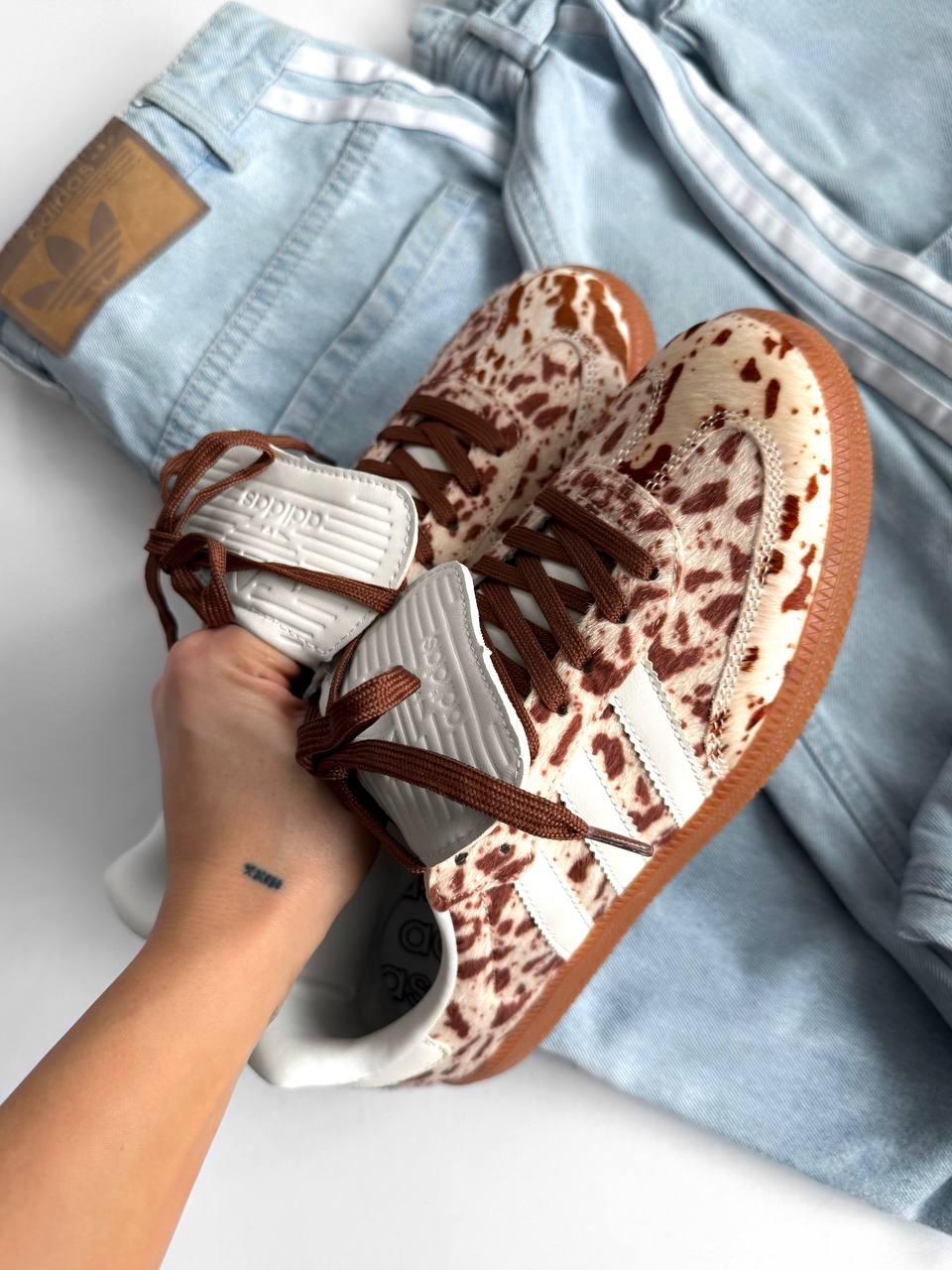 Adidas Samba LT Cow Print Brown White — яскрава модель у поєднанні коричневого, білого та бежевого кольорів з культовим силуетом і стильними деталями, що додають образу характеру.