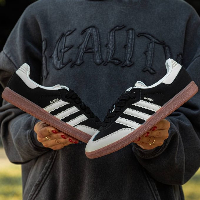 Adidas Samba OG Black Beige Gum — класика, що ніколи не виходить з моди. Легендарний силует у чорному кольорі з бежевими акцентами та фірмовою гумовою підошвою ідеально підходить для щоденного носіння. Стиль, перевірений часом, і комфорт на кожен день.