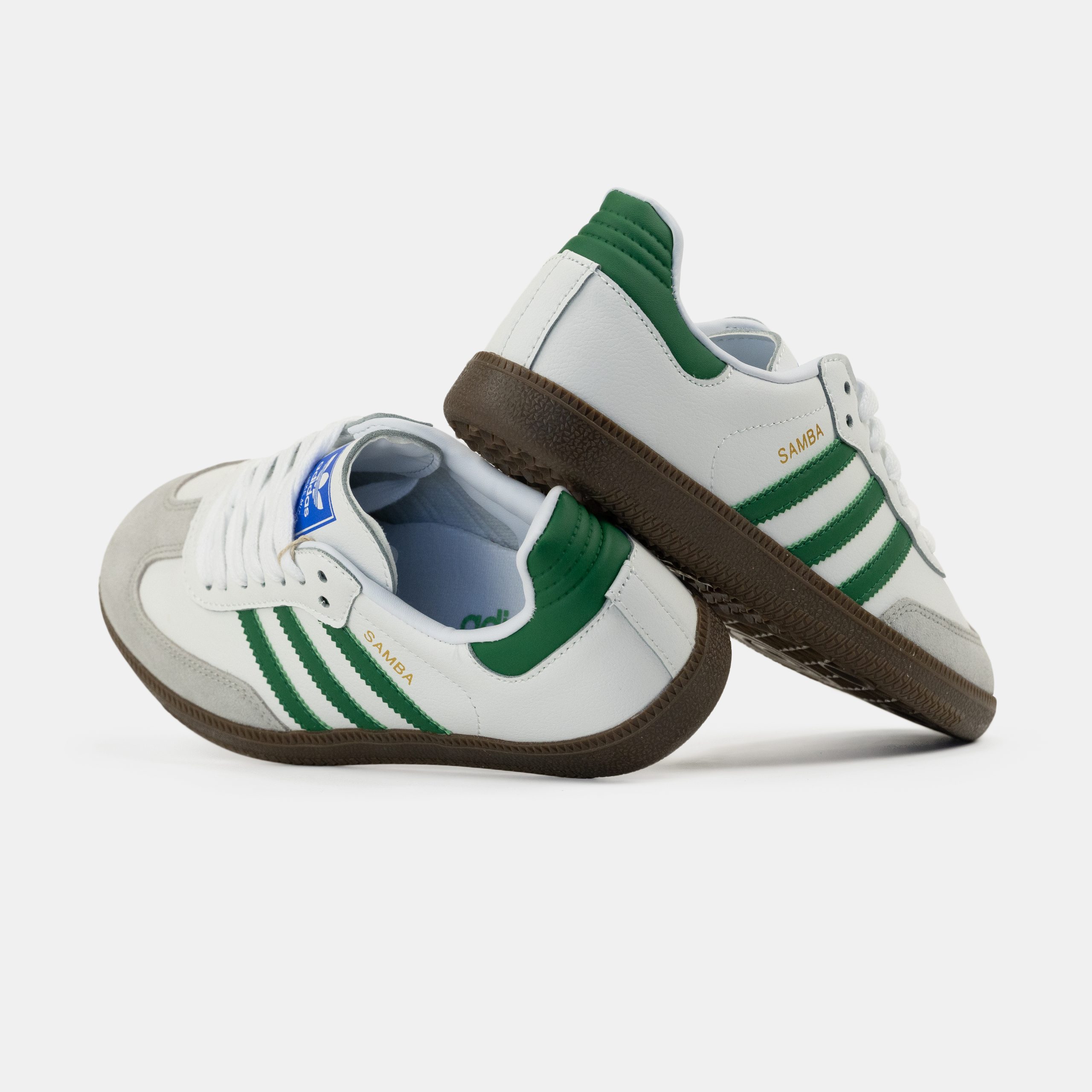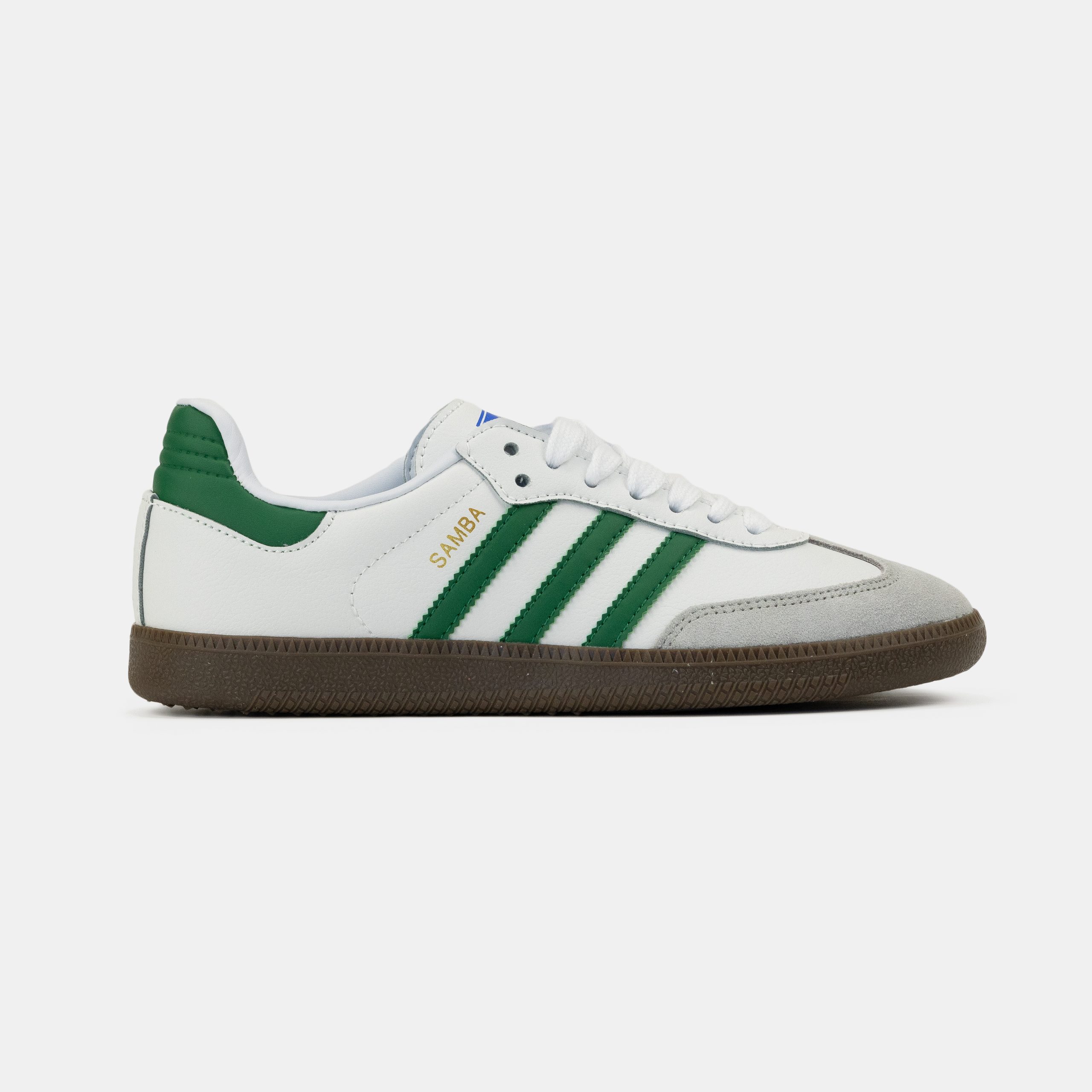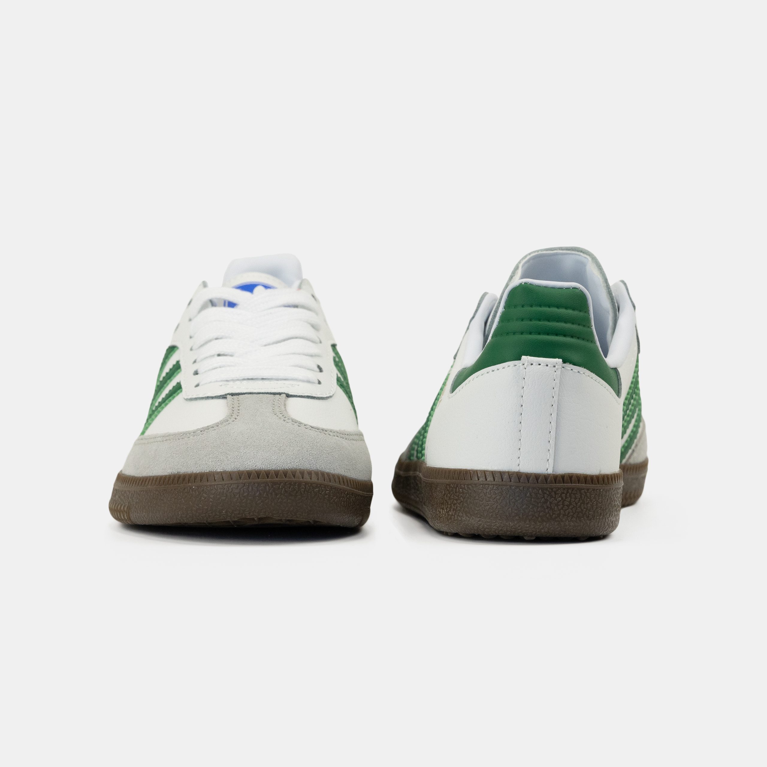 Adidas Samba White Green — кросівки з класичним дизайном у білому кольорі з зеленими акцентами, що вирізняються ретро-естетикою, комфортом і універсальністю для щоденного образу.
