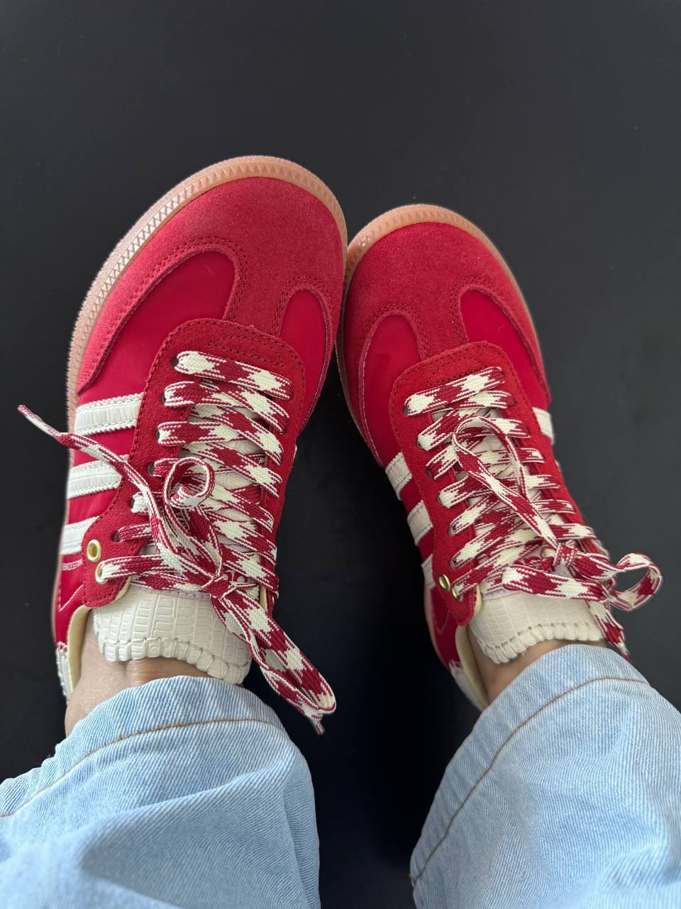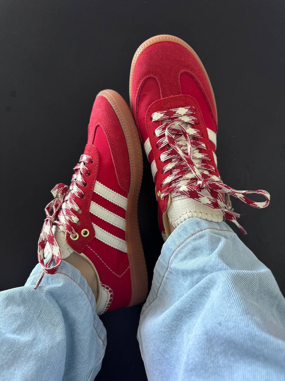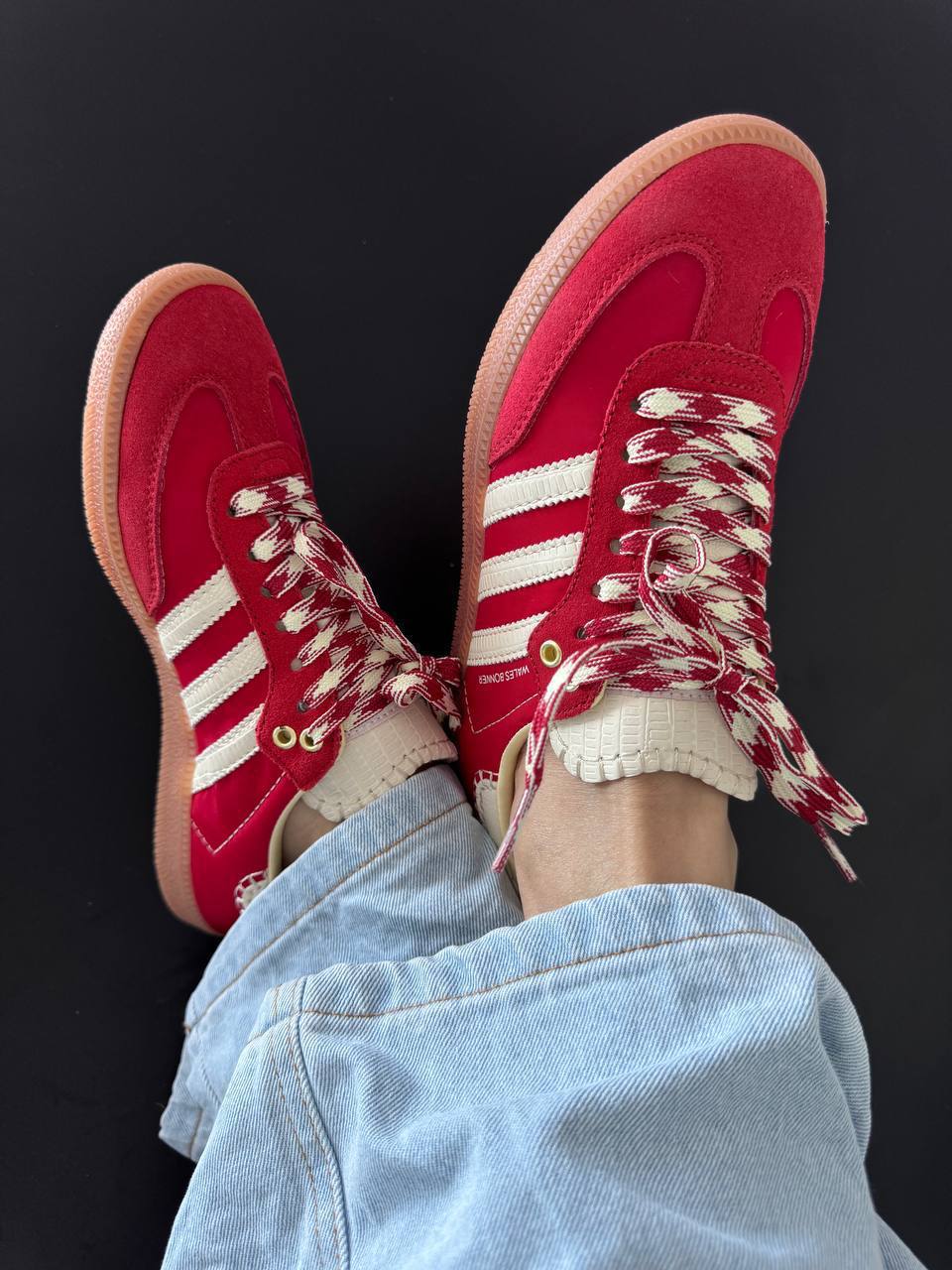 Adidas Samba x Wales Bonner Red — це переосмислення легендарних кросівок Samba у співпраці з дизайнеркою Грейс Велс Боннер. Модель поєднує архівний силует з естетикою 70-х років.