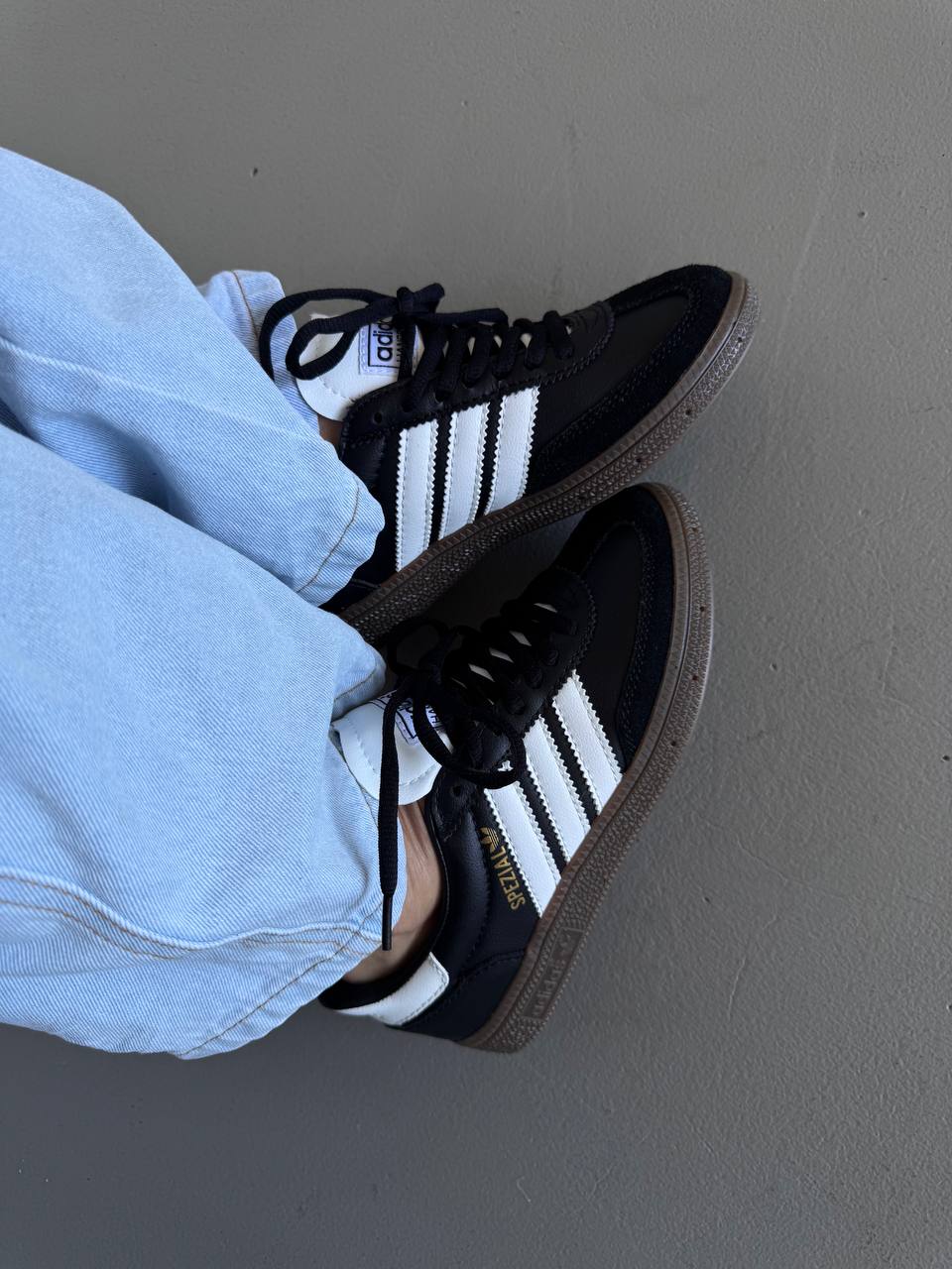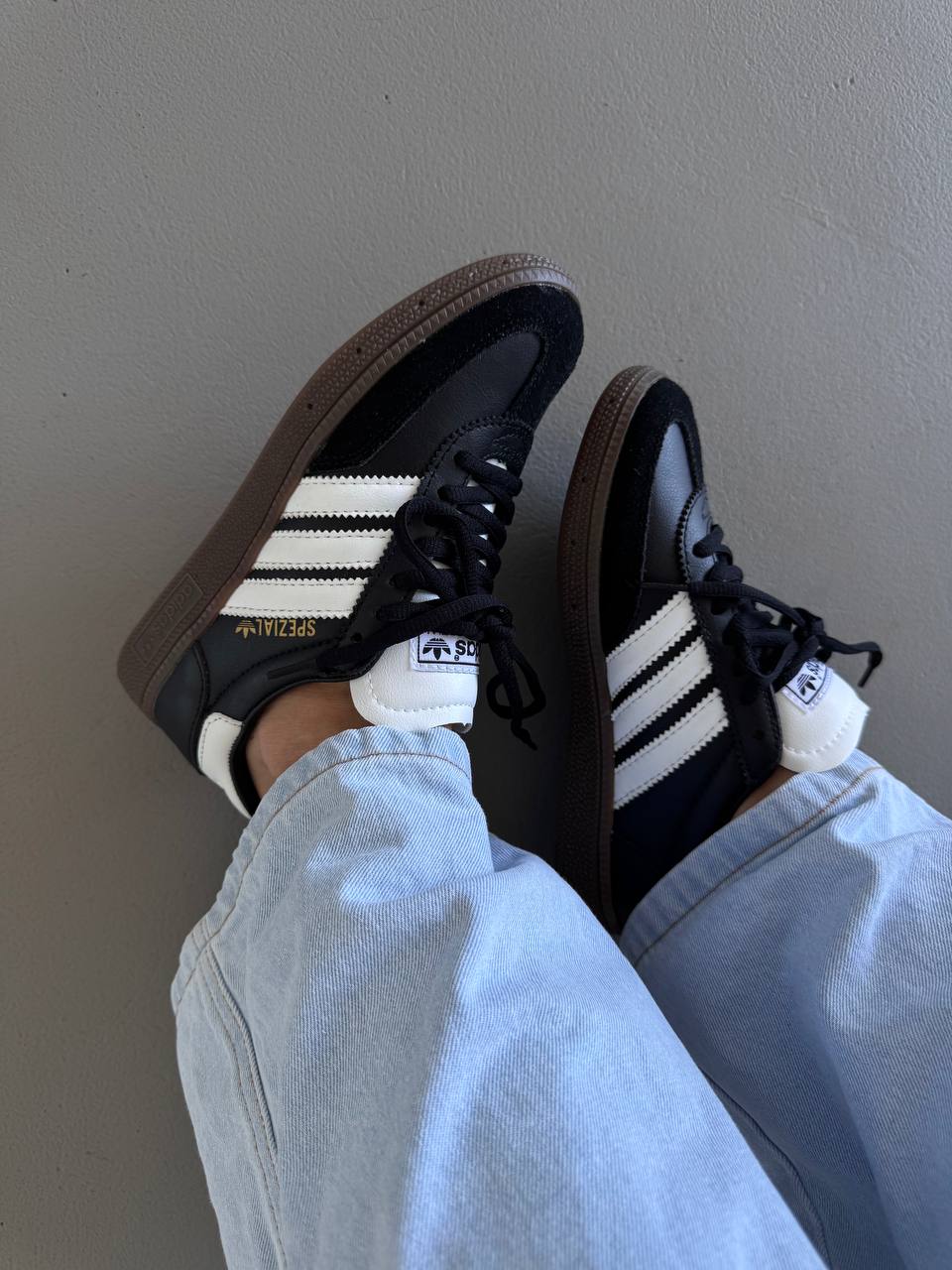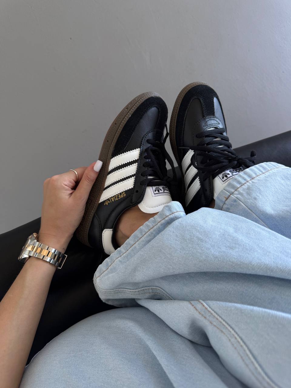 Adidas Spezial White / Black Leather — кросівки в класичному поєднанні білого та чорного з шкіряним верхом, що поєднують ретро-стиль, якість і комфорт для універсального повсякденного образу.