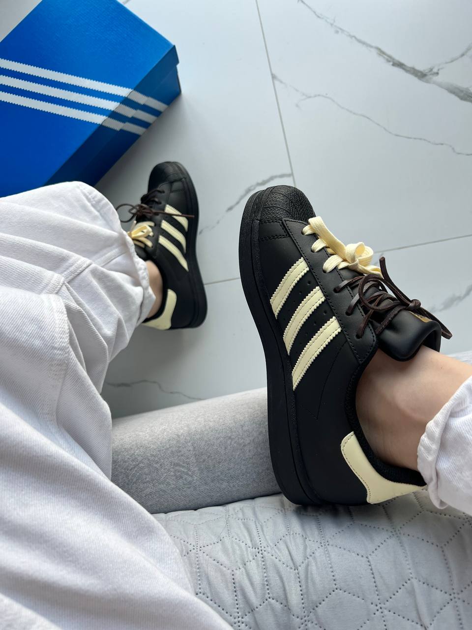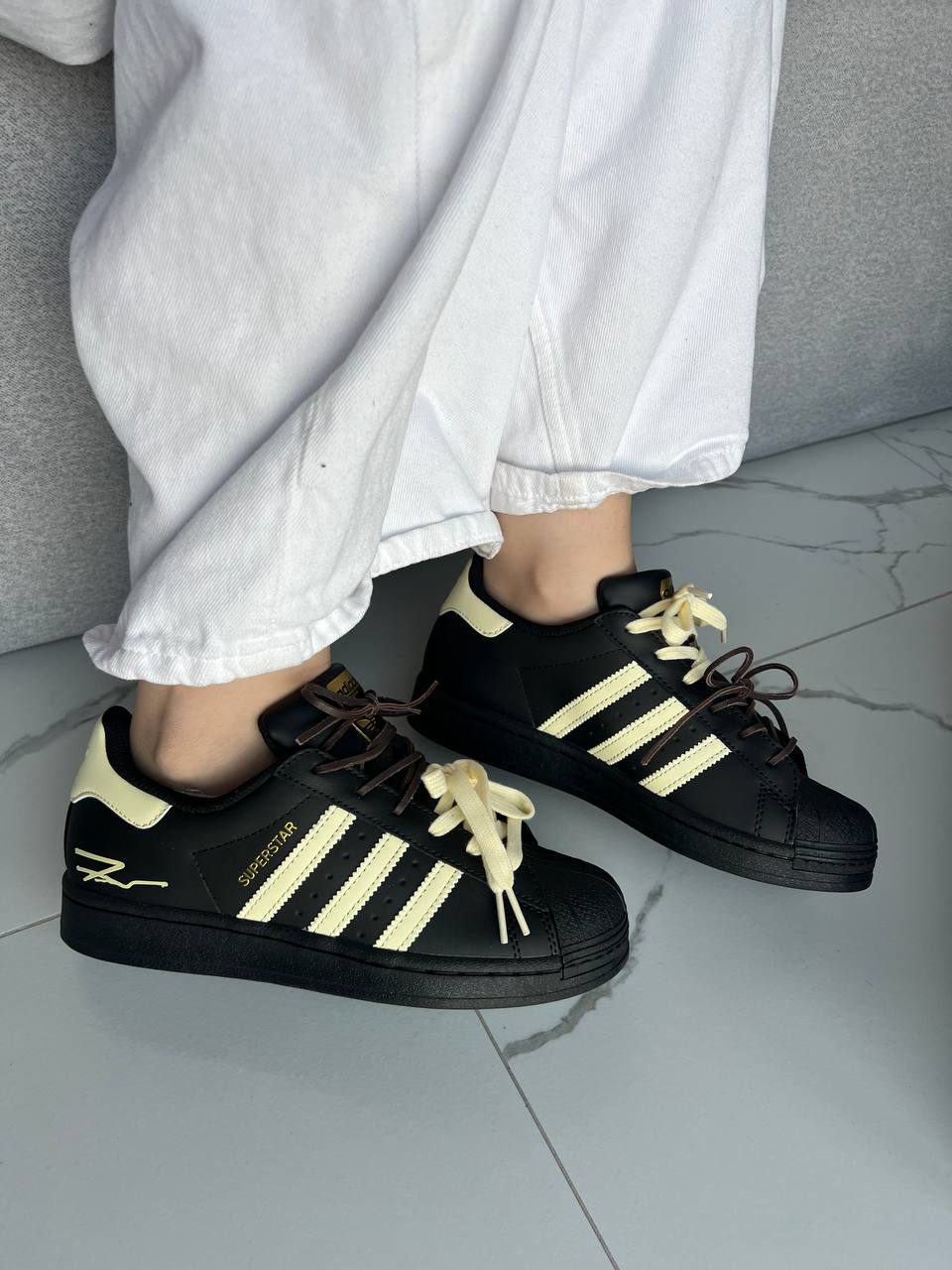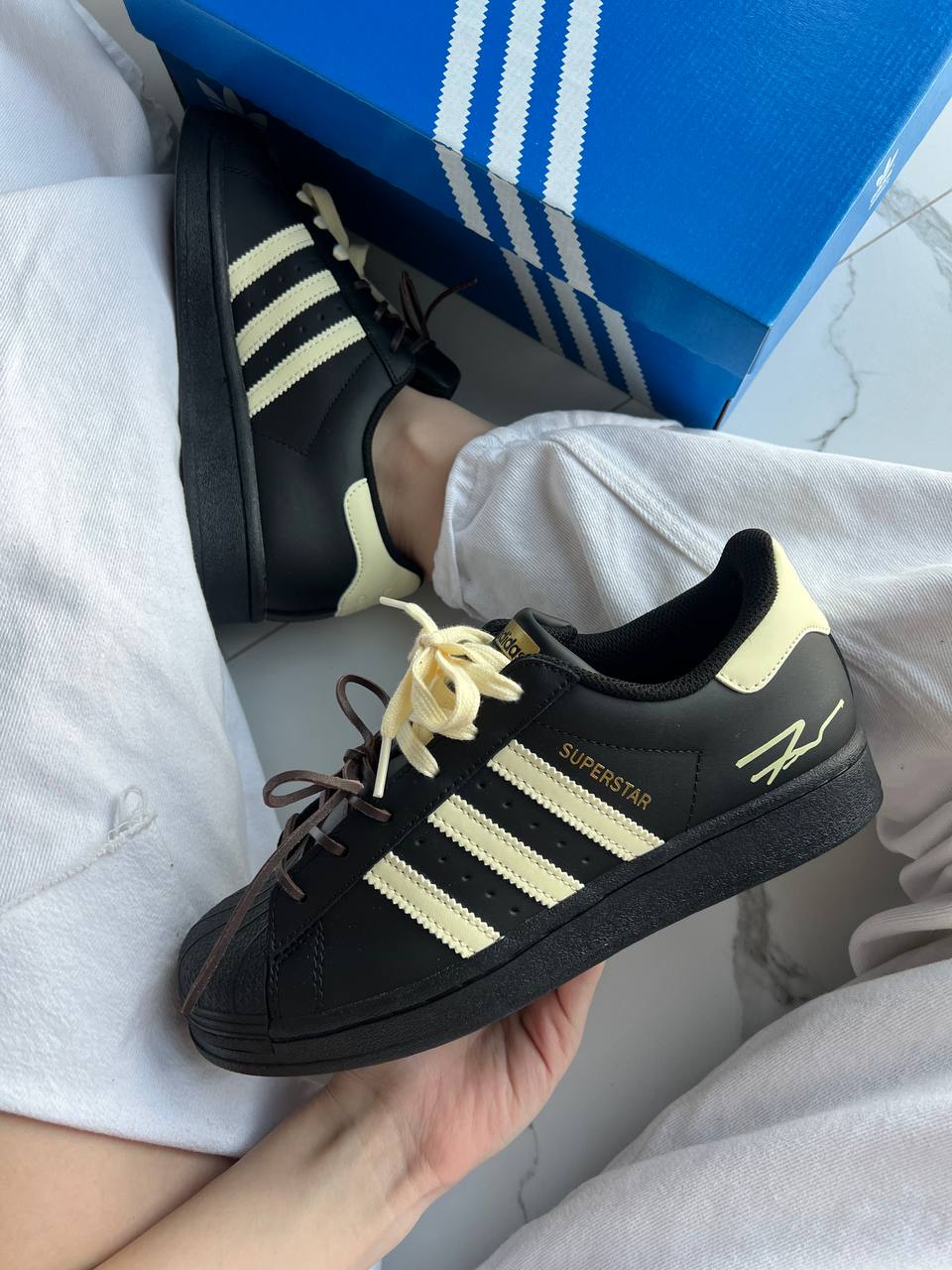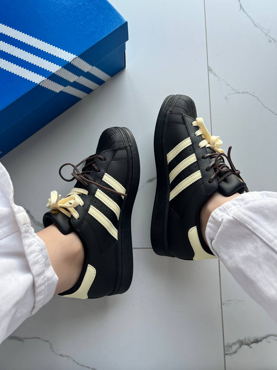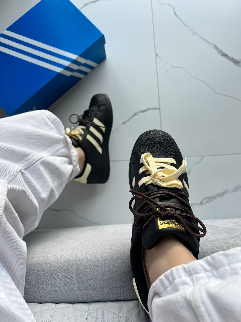 Adidas Superstar Custom Laces Black Yellow — культова модель із яскравими жовтими шнурками, що додають контрасту й унікальності класичному чорному дизайну.
