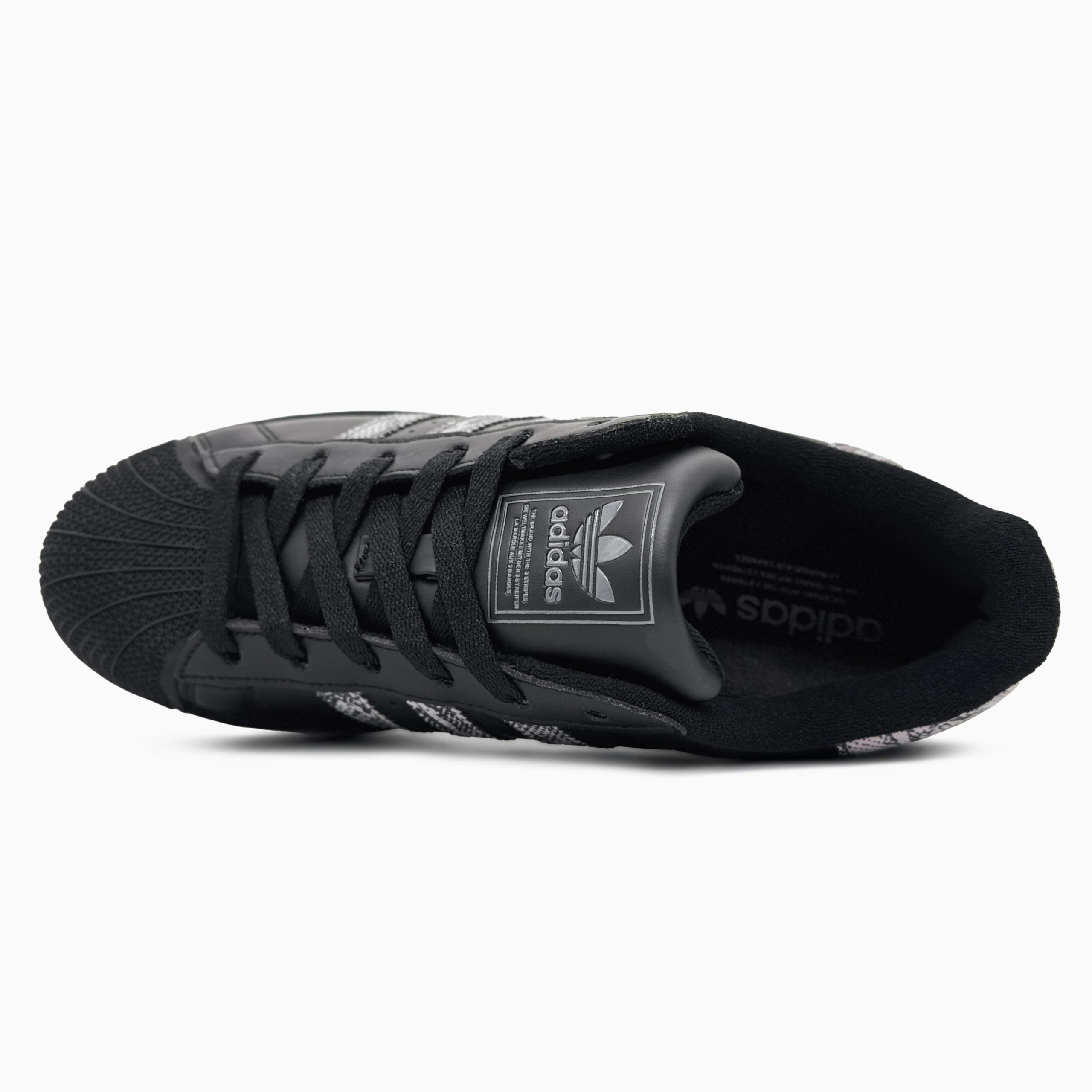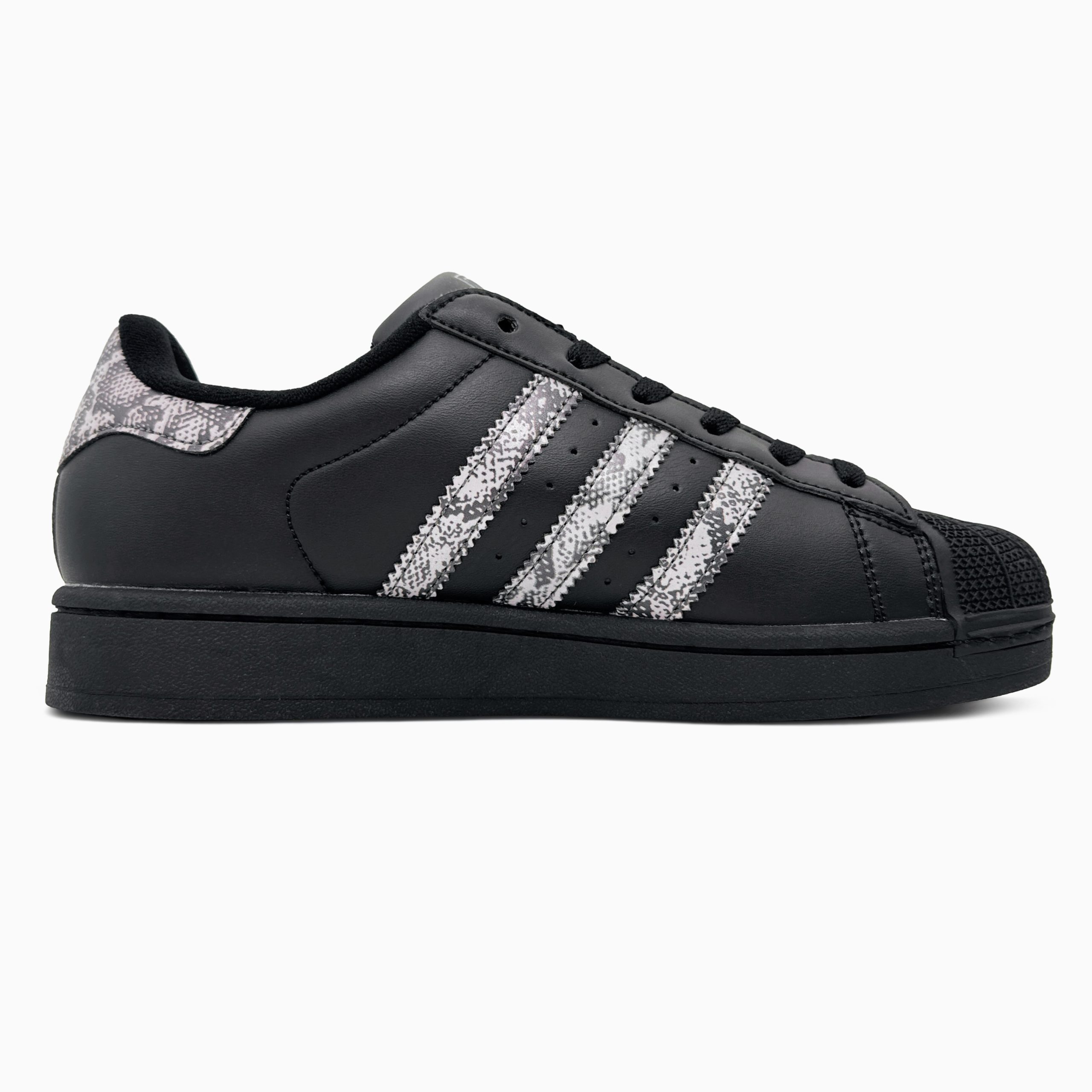 Adidas Superstar II Black / Snakeskin — класична модель у чорному кольорі з акцентними вставками під зміїну шкіру, що поєднує культовий дизайн, впізнаваний носок-«черепашку» та стильний міський характер.