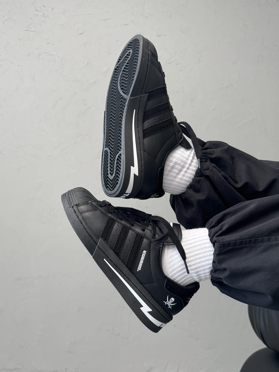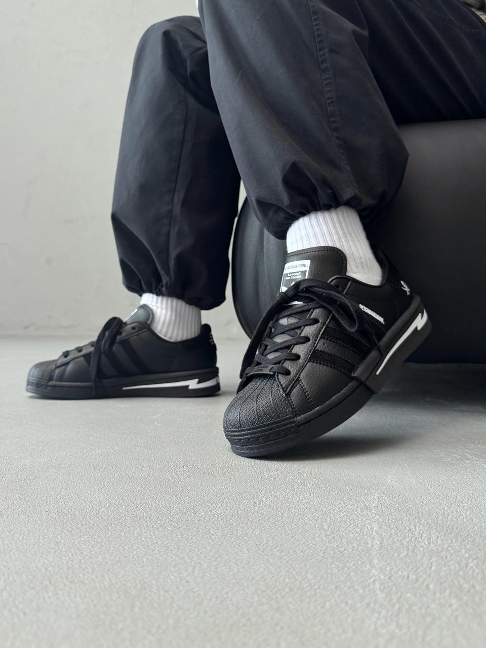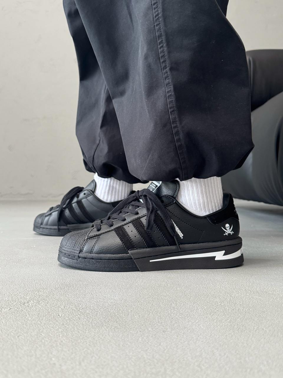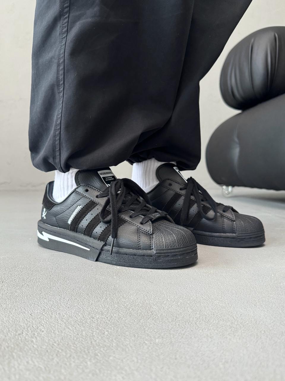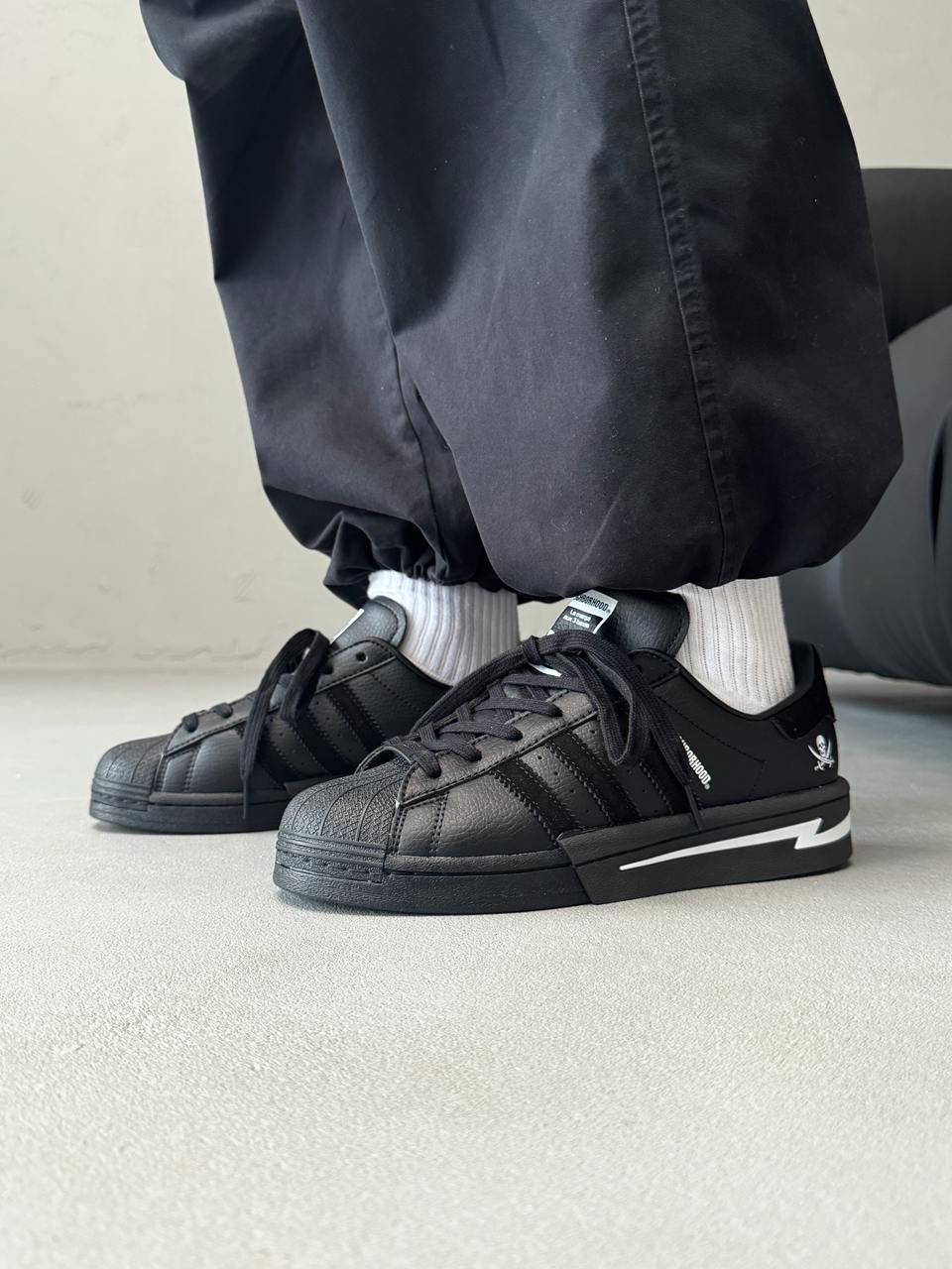 Adidas Superstar x Neighborhood Black/White — стильна та практична колаборація у чорно-білому виконанні, створена для комфортного повсякденного носіння.