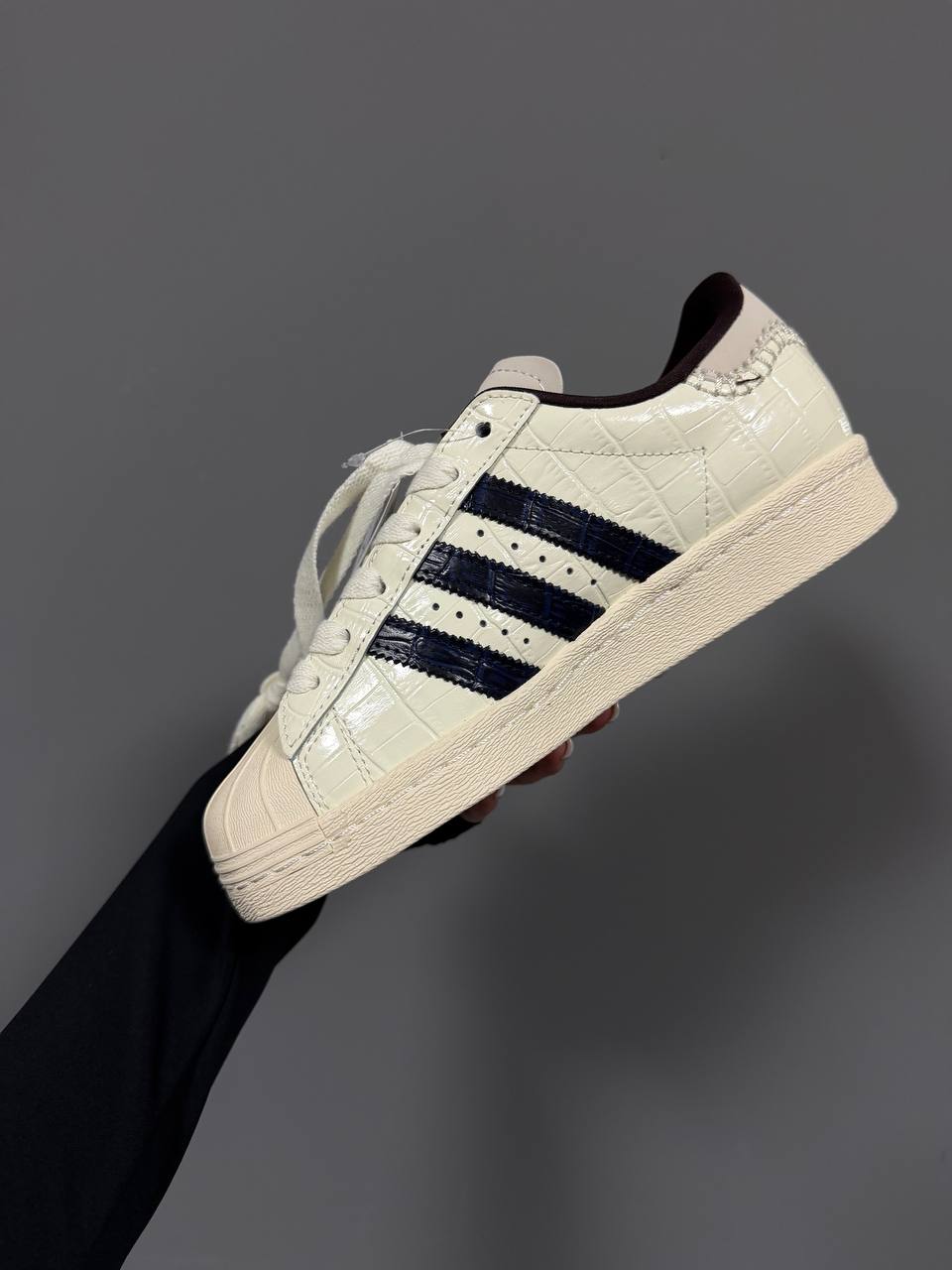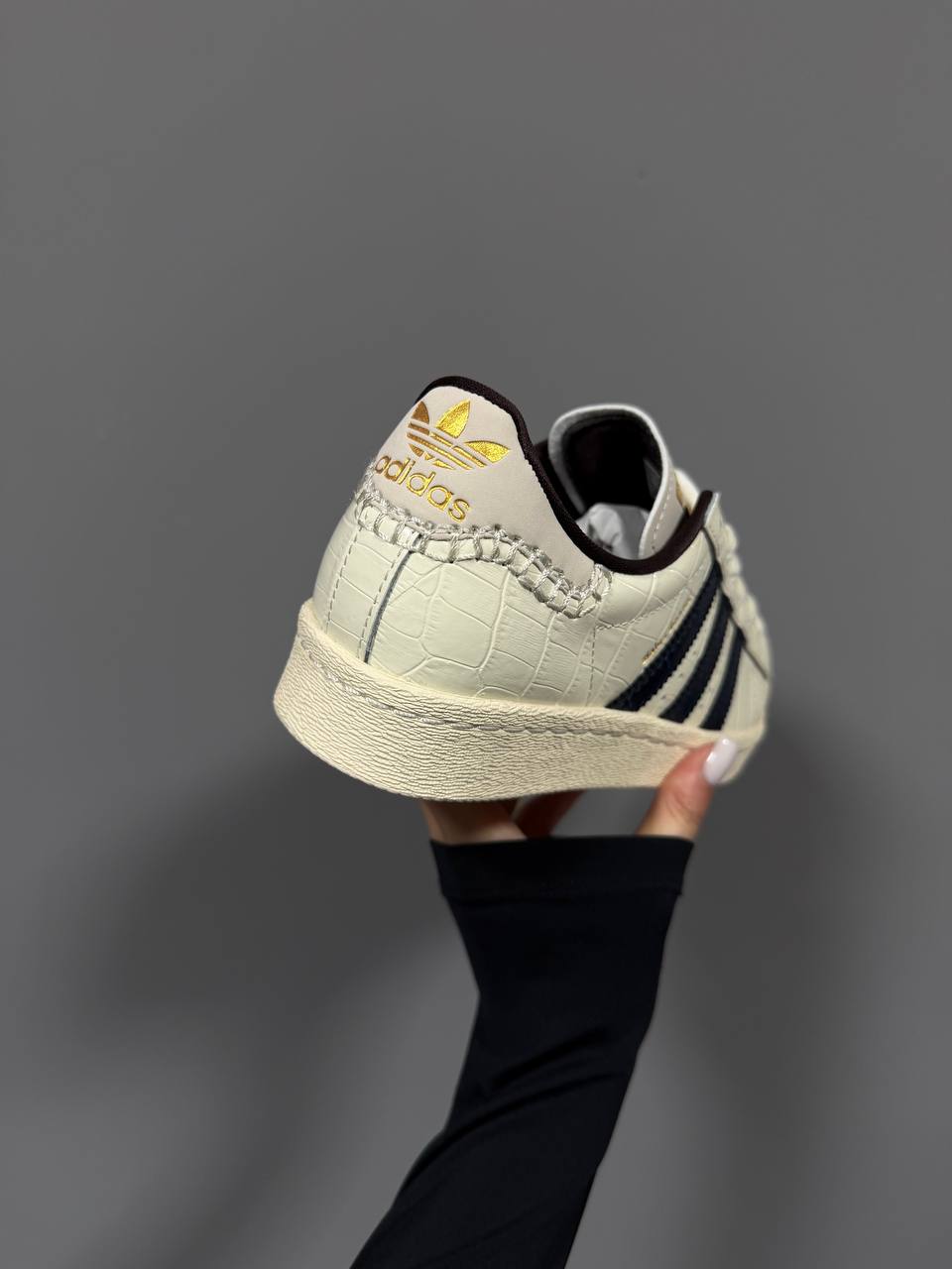 Adidas Superstar x Wales Bonner Wonder White Croc — класична модель у світлому відтінку з фактурним тисненням, що поєднує лаконічний дизайн і зручну посадку для щоденного стилю.