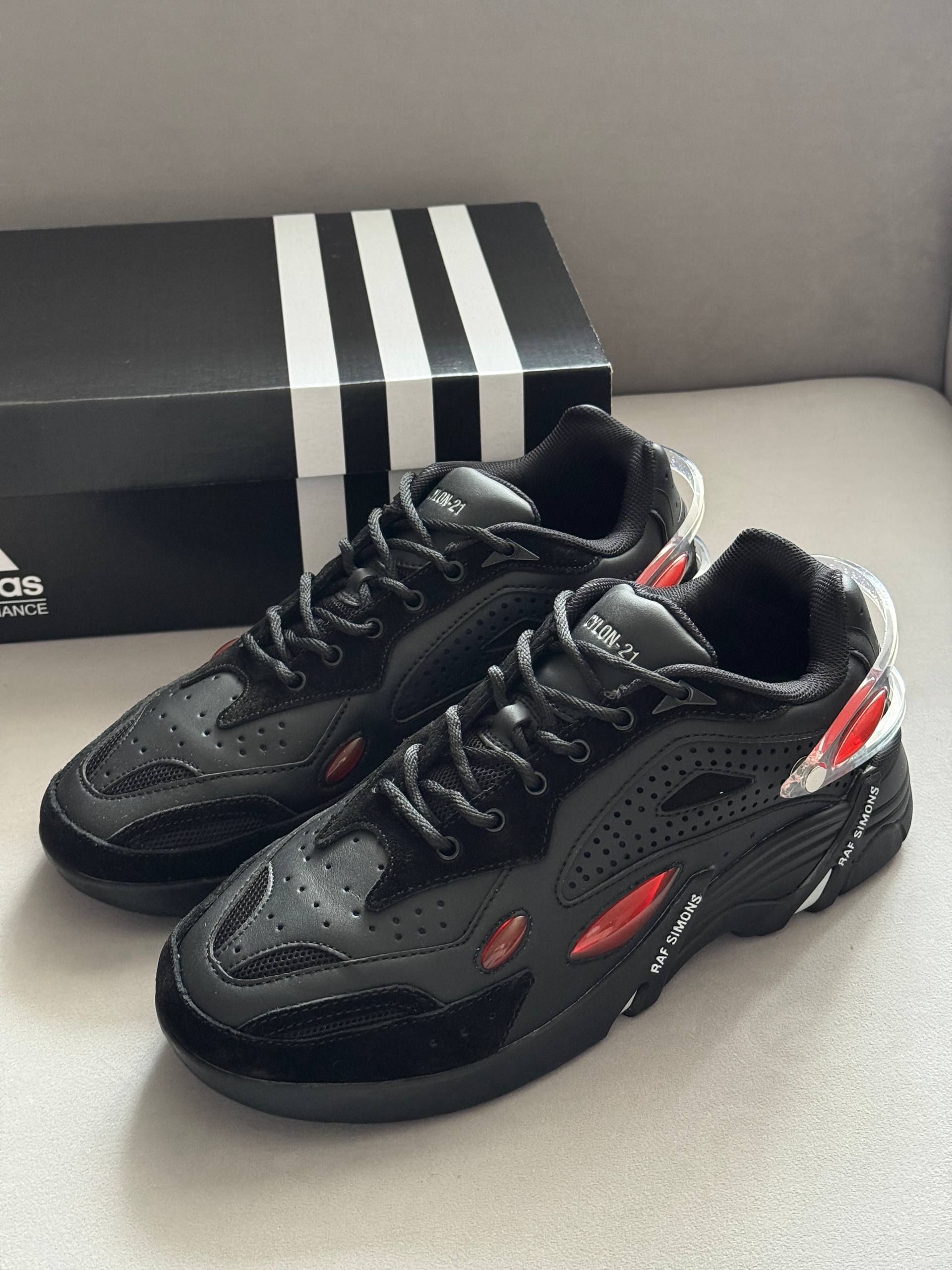 Adidas x Raf Simons Cylon-21 Black Red — виразна модель з масивним силуетом і контрастними акцентами, що поєднує футуристичний дизайн, комфортну посадку та сміливий повсякденний стиль.