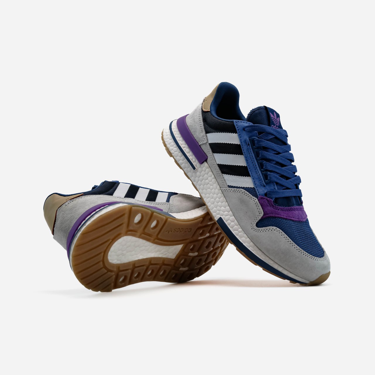 Adidas ZX 500 Blue Purple Grey – класичні кросівки в ретро-стилі з поєднанням синього, фіолетового та сірого кольорів, що поєднують комфорт, стиль та легендарний дизайн лінійки ZX.