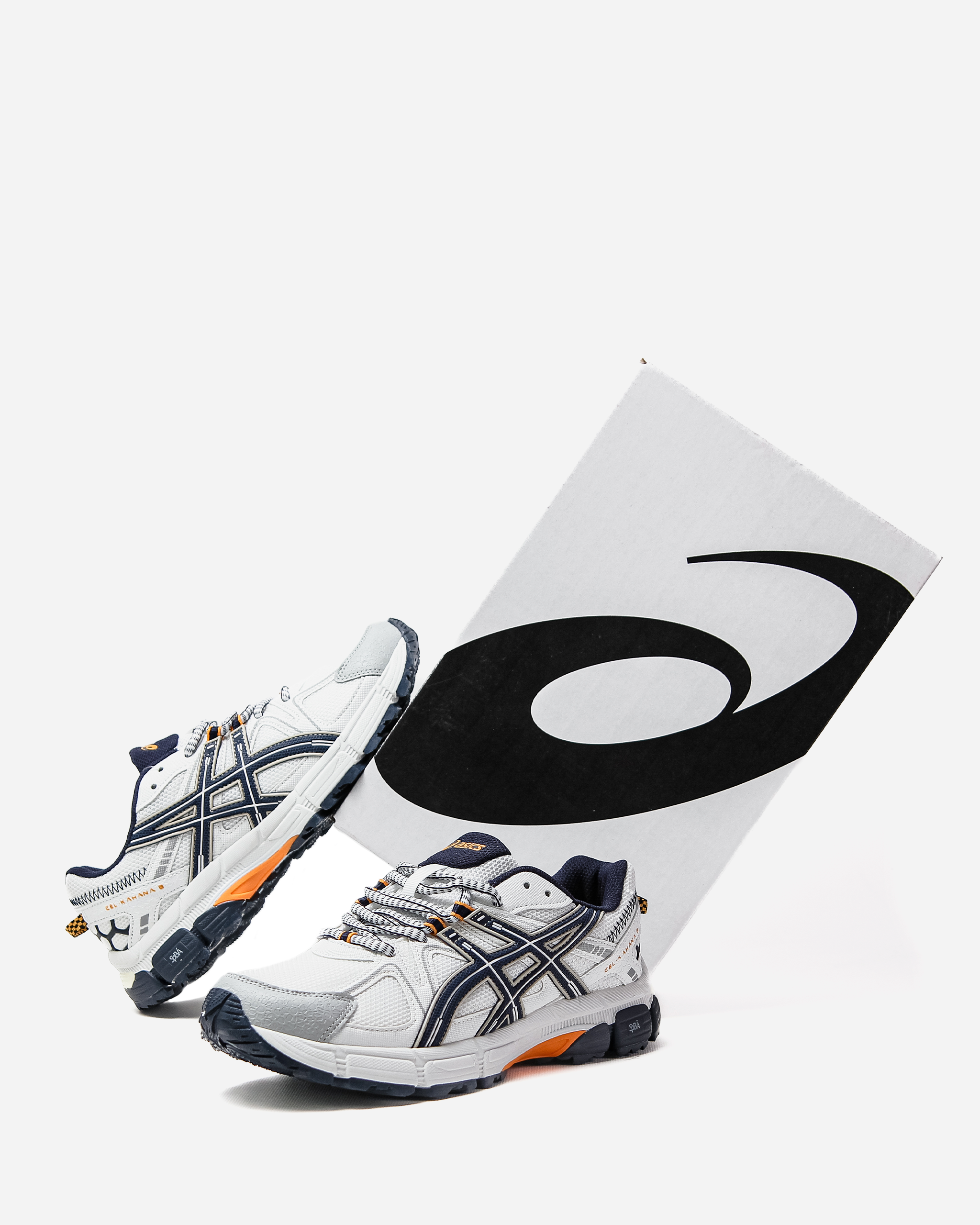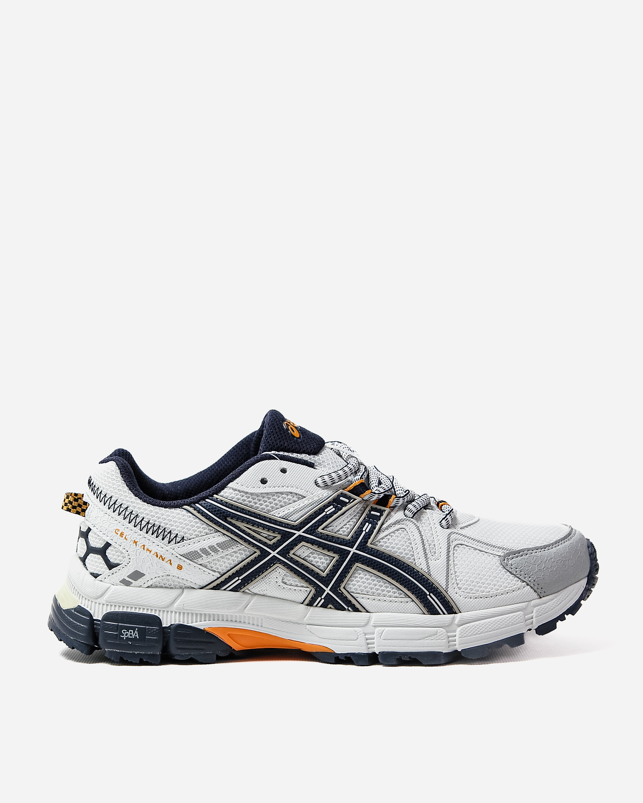 Asics Gel Kahana White Navy — кросівки з біговим дизайном у поєднанні білого та темно-синього кольорів, що поєднують стабільність, комфорт і стиль для активного щоденного використання.