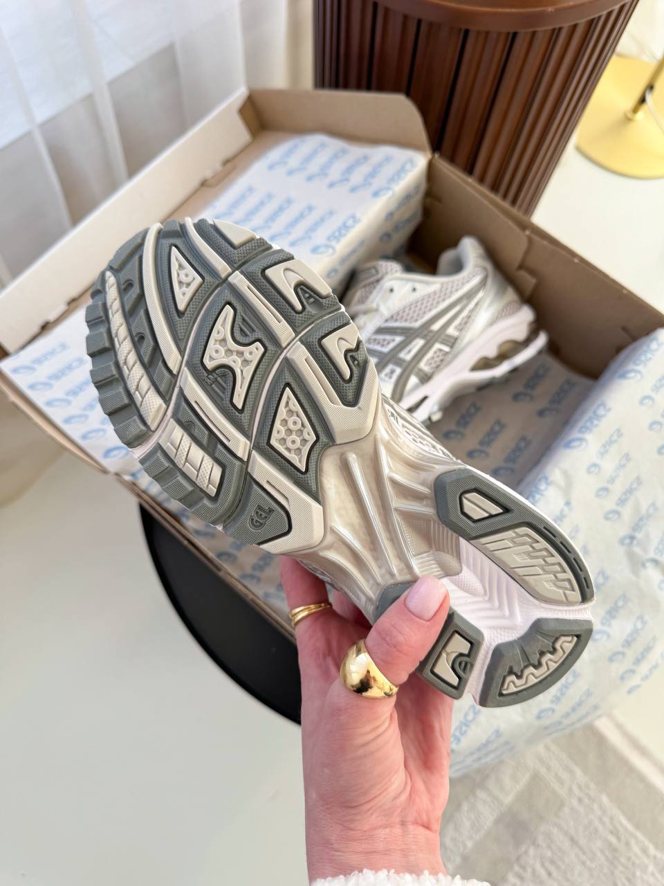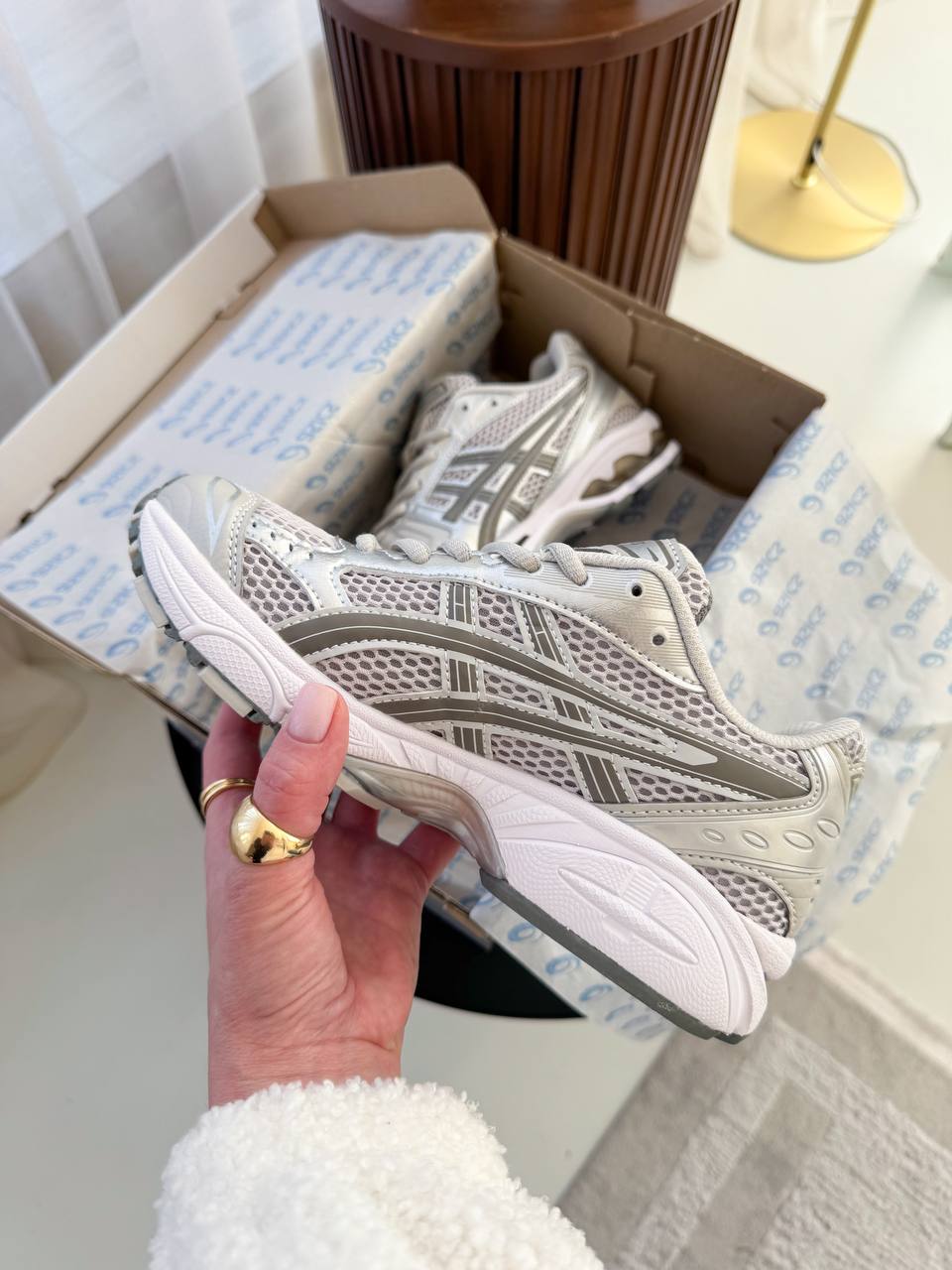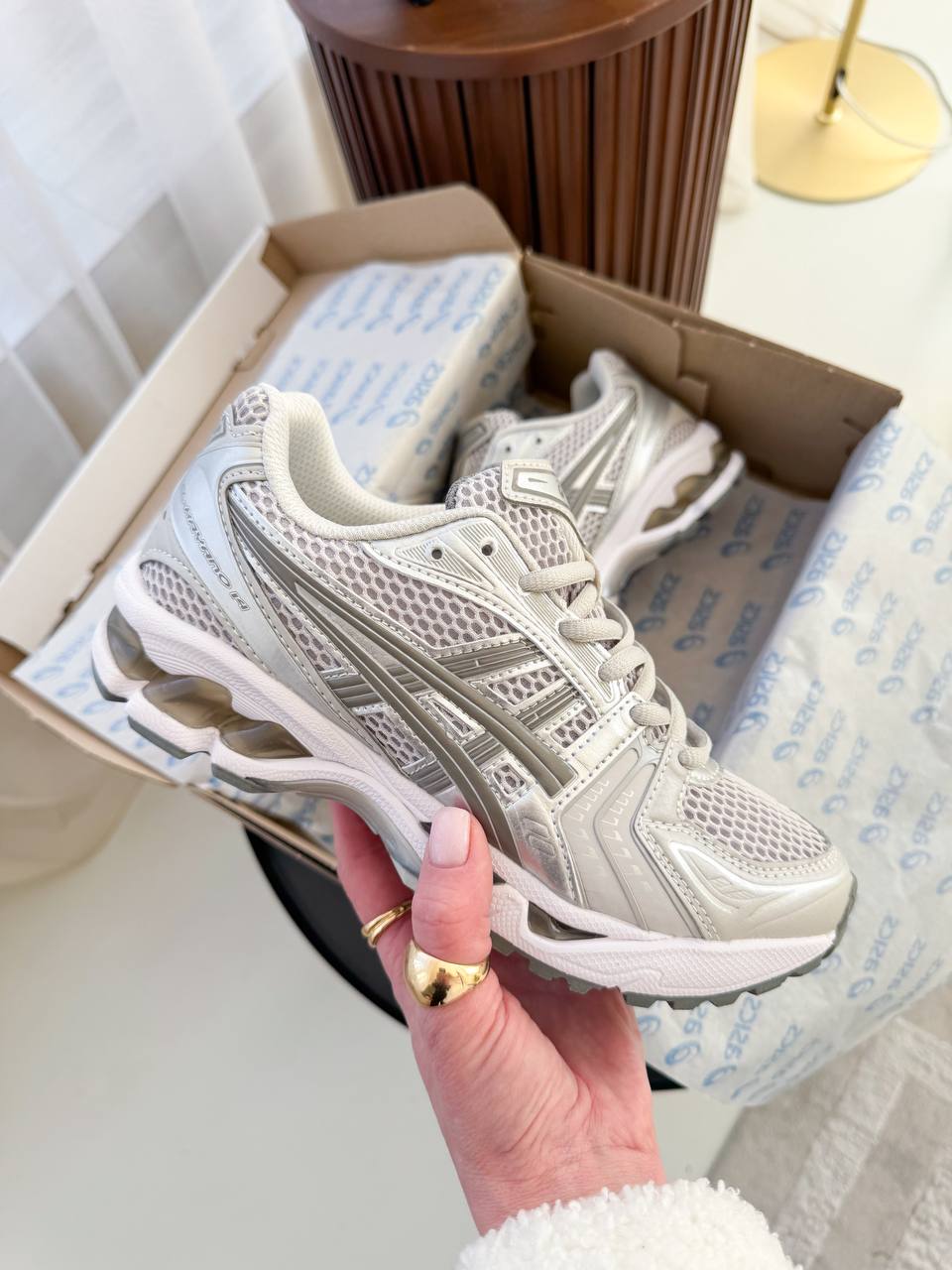 Asics Gel-Kayano 14 “Cloud Grey” — модель у світло-сірій гамі з технічним силуетом, що поєднує комфортну посадку та стриманий сучасний стиль для щоденного носіння.