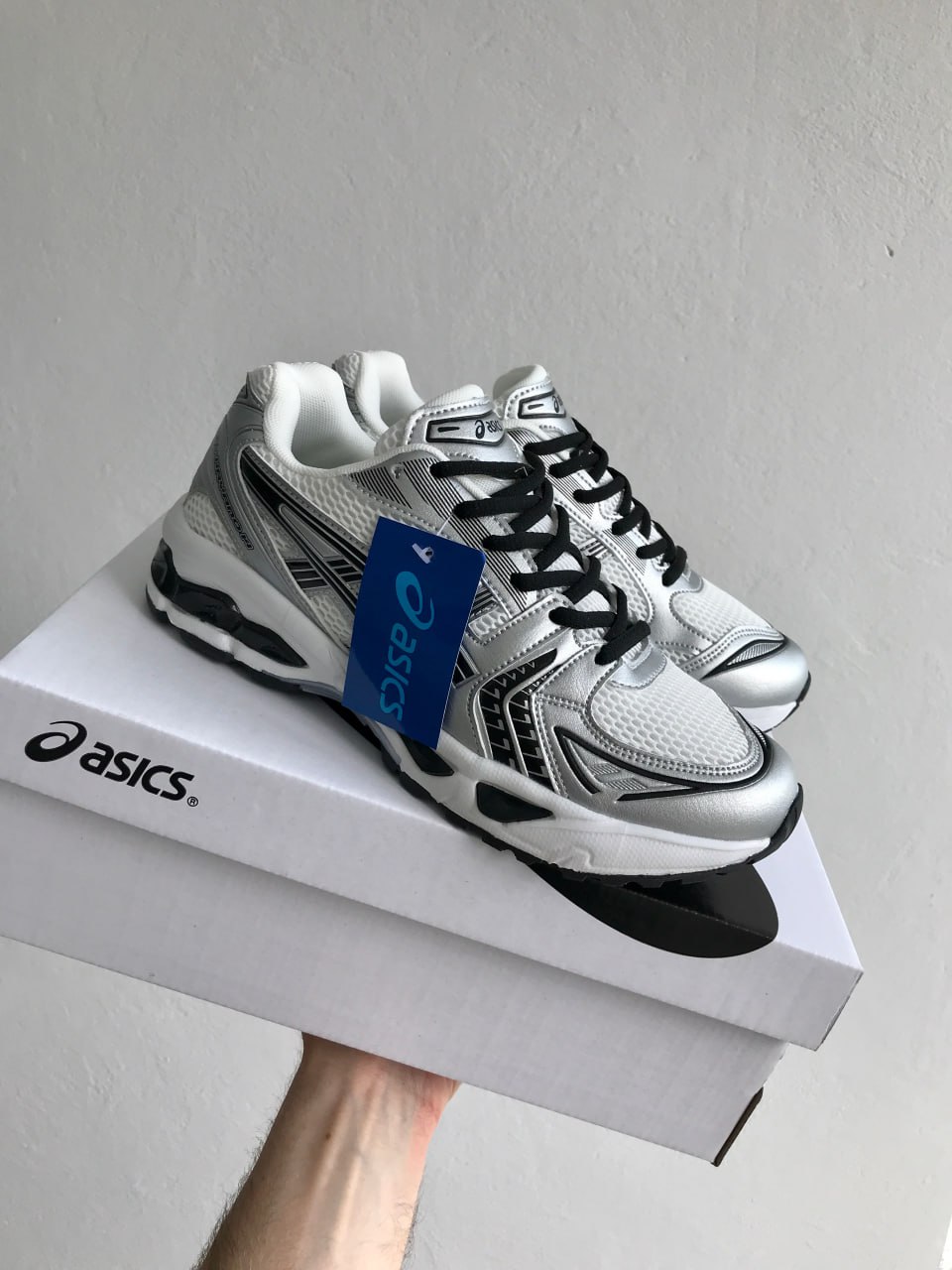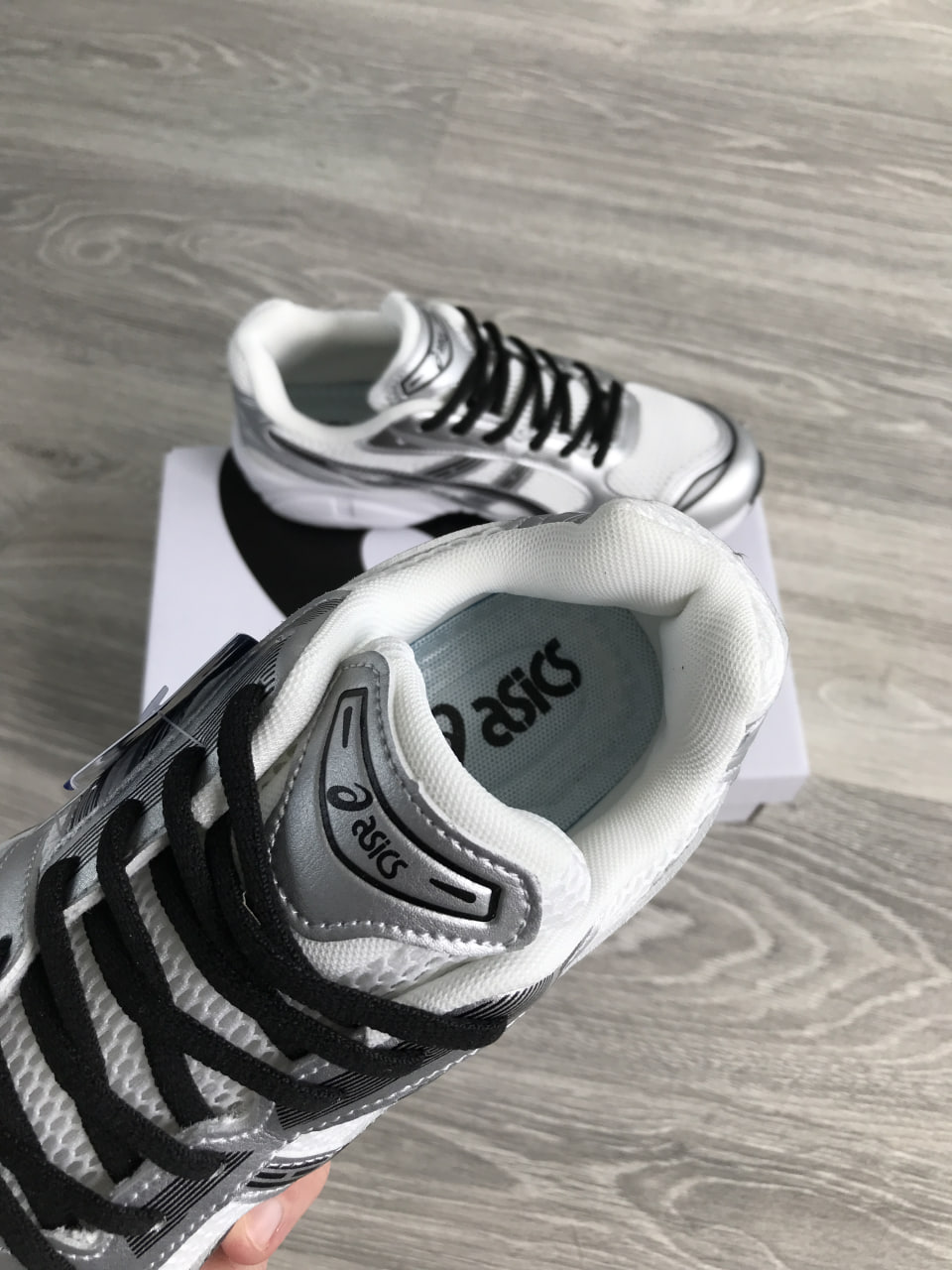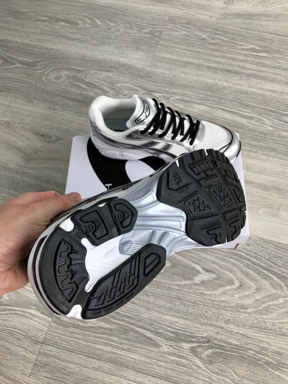 Asics Gel-Kayano 14 Silver White — це культові бігові кросівки у сріблясто-білому виконанні з технологією GEL для амортизації та підтримки, що поєднують ретро-естетику з сучасним комфортом.