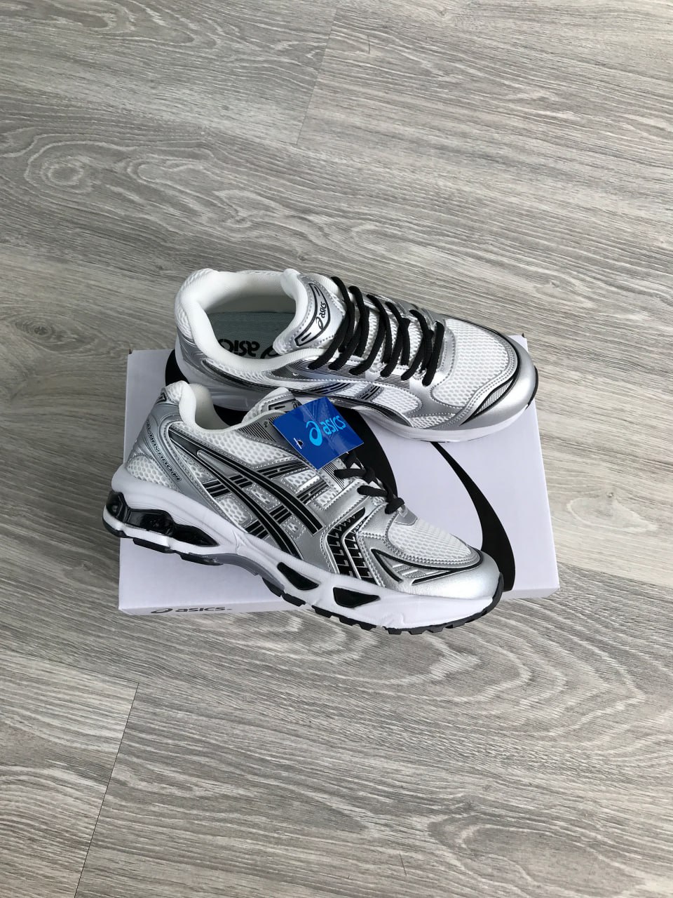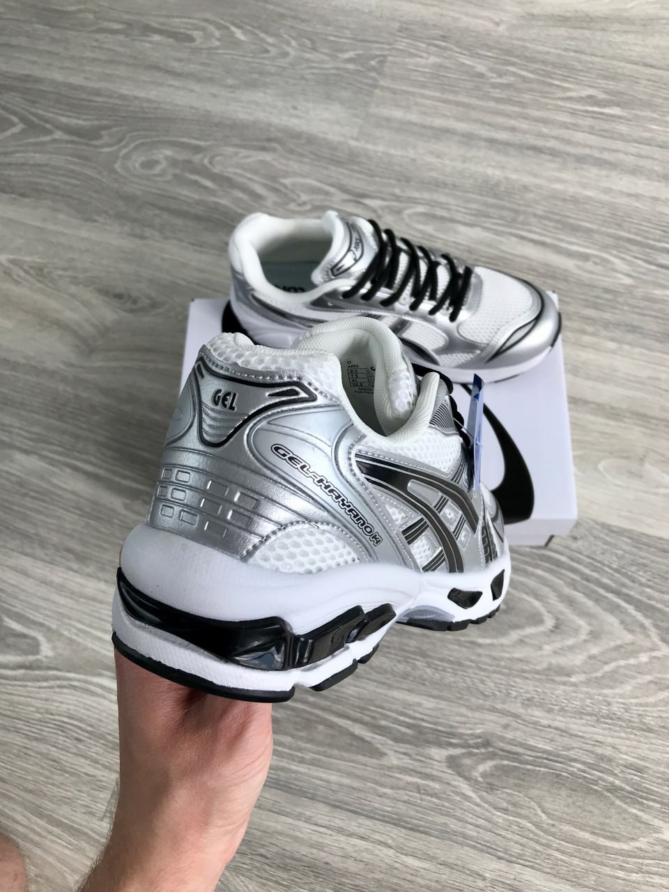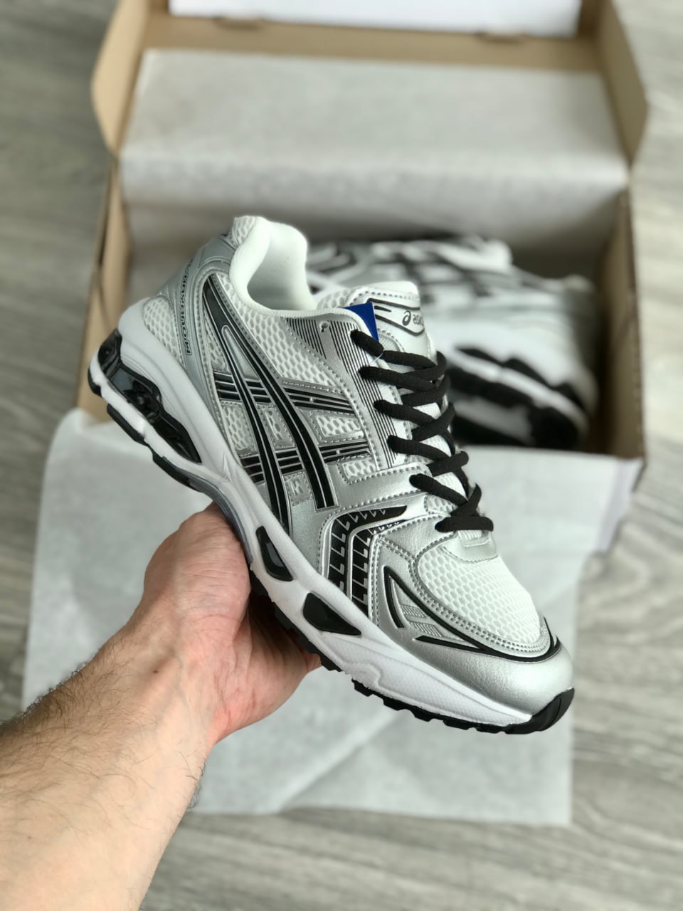 Asics Gel-Kayano 14 Silver White — це культові бігові кросівки у сріблясто-білому виконанні з технологією GEL для амортизації та підтримки, що поєднують ретро-естетику з сучасним комфортом.