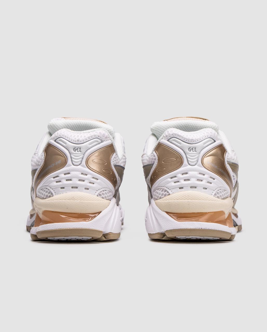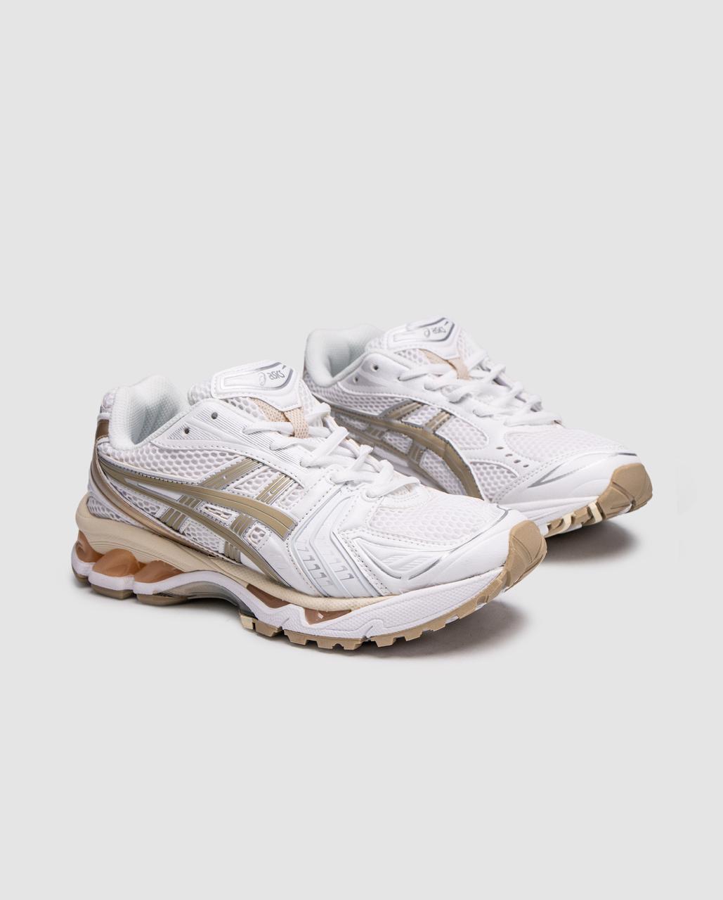 Asics Gel-Kayano 14 White/Bronze — це ретро-натхненні кросівки з білою сіткою та бронзовими акцентами, що поєднують амортизацію GEL із стабільністю для щоденного комфорту.