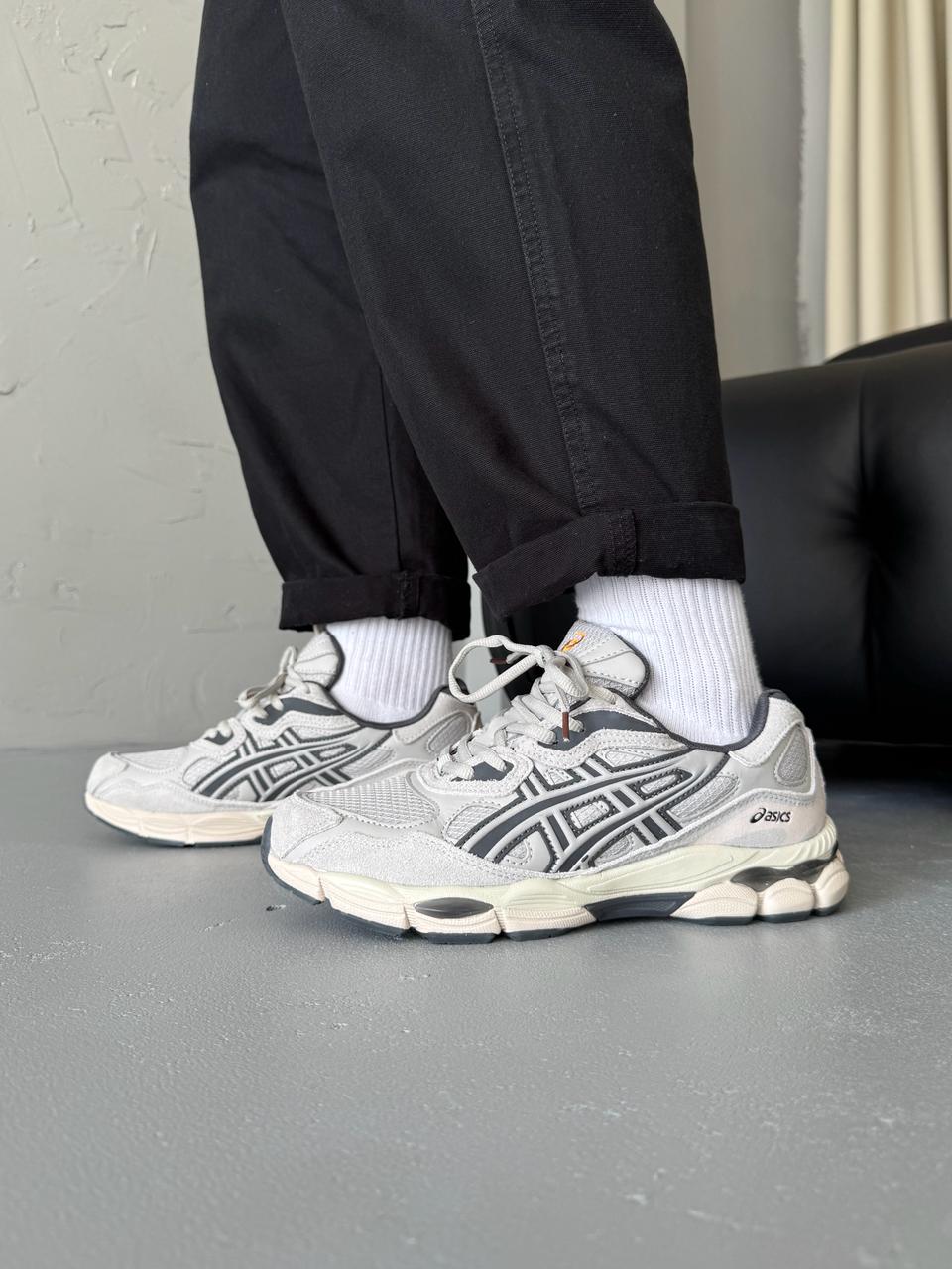 Asics Gel-NYC Beige/Grey Gore-Tex – стильні кросівки з ретро-дизайном 2000-х, оснащені водонепроникною мембраною Gore-Tex та амортизацією GEL для максимального комфорту в дощову погоду та повсякденному міському ритмі.
