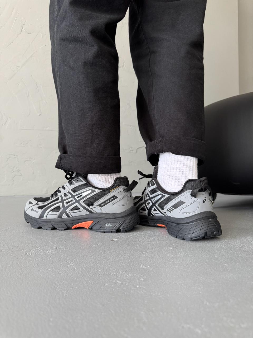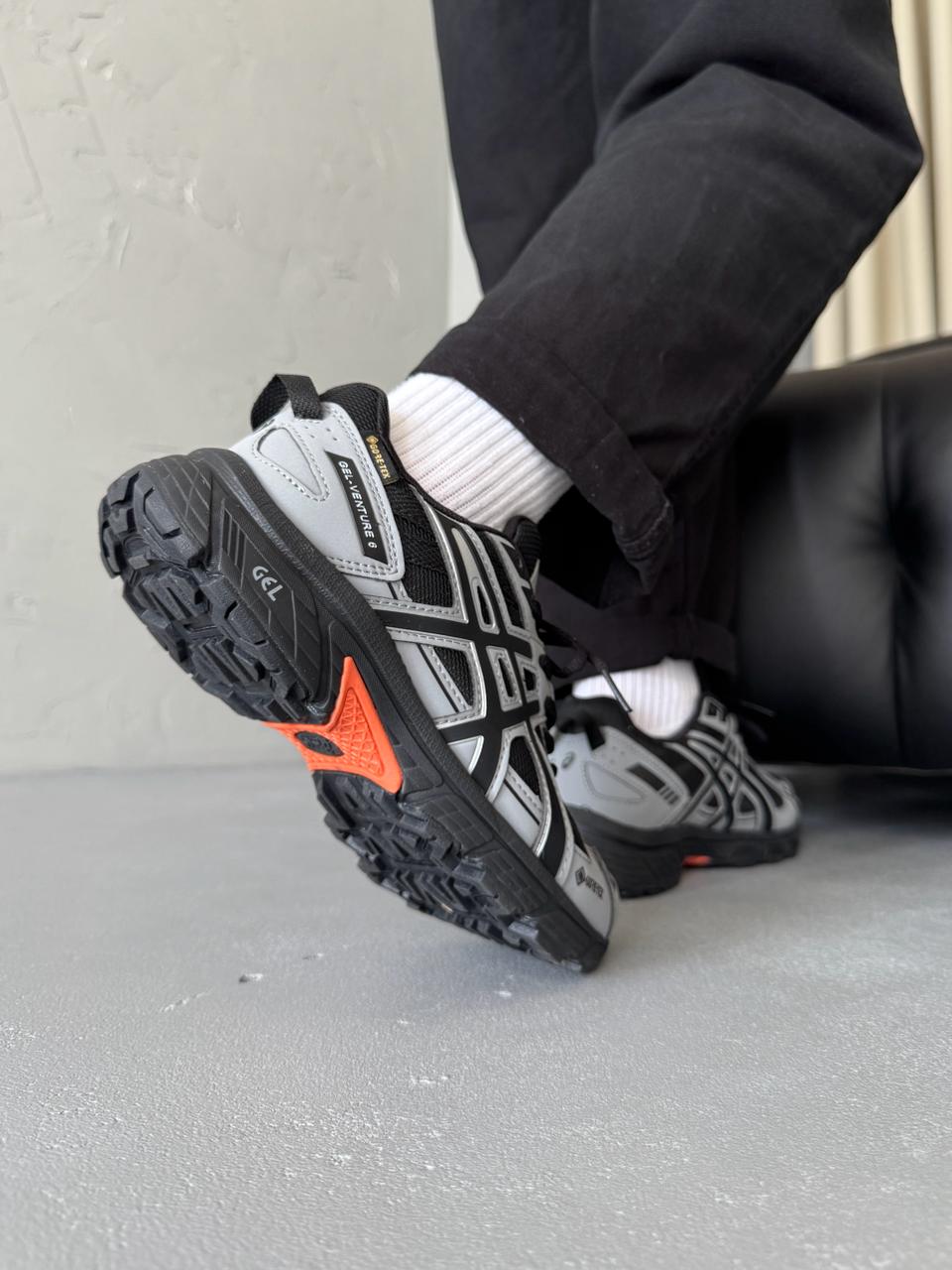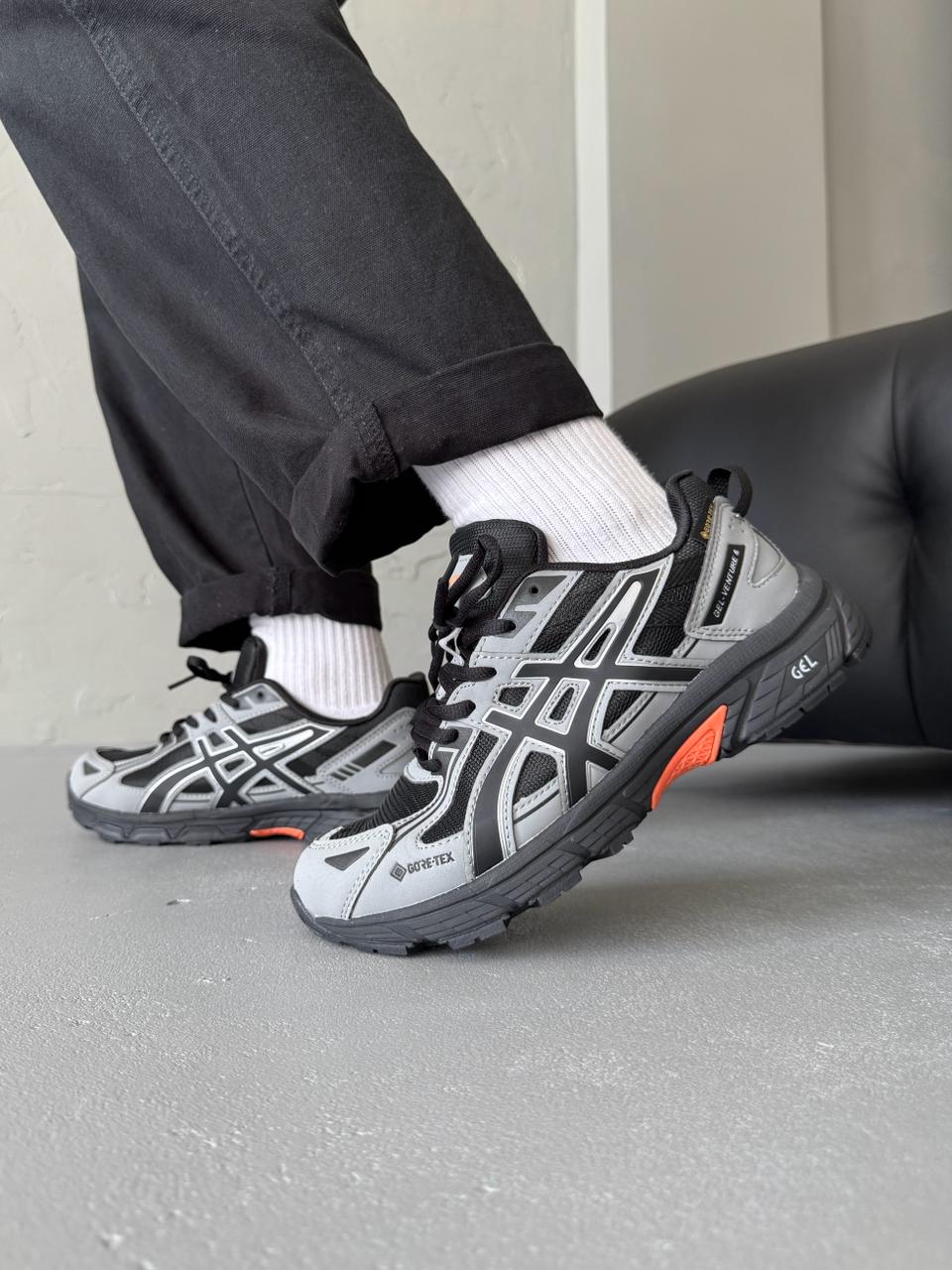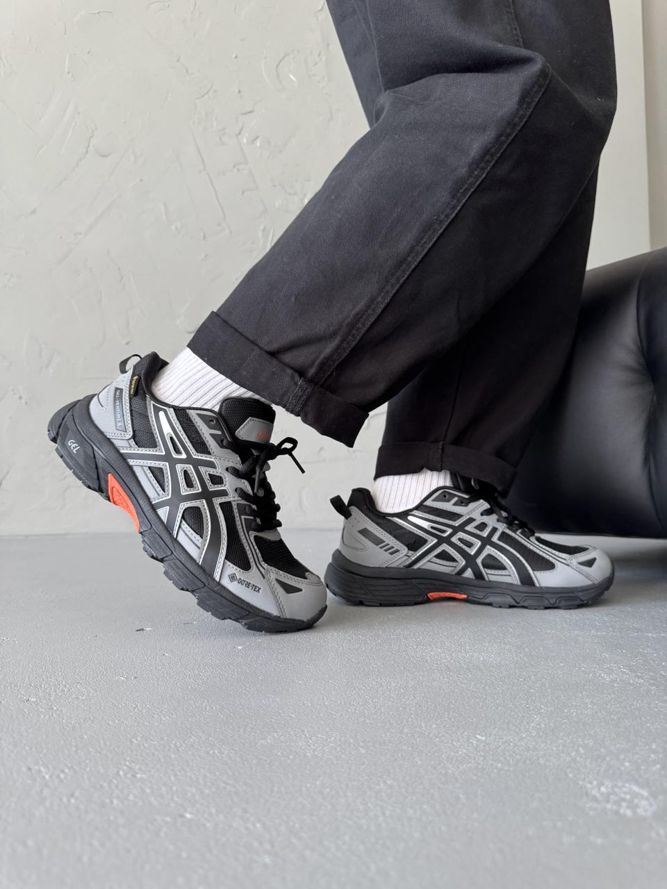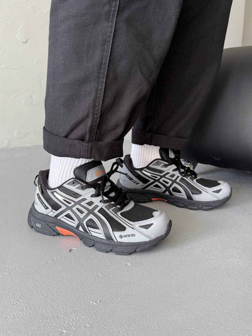 Asics Gel-Venture 6 Grey/Black Gore-Tex – міцні та водонепроникні кросівки з мембраною Gore-Tex, розроблені для трейлу та щоденного використання. Завдяки амортизації GEL і зчепленню підошви, вони забезпечують комфорт і стабільність на різних типах покриття, навіть у складних погодних умовах.