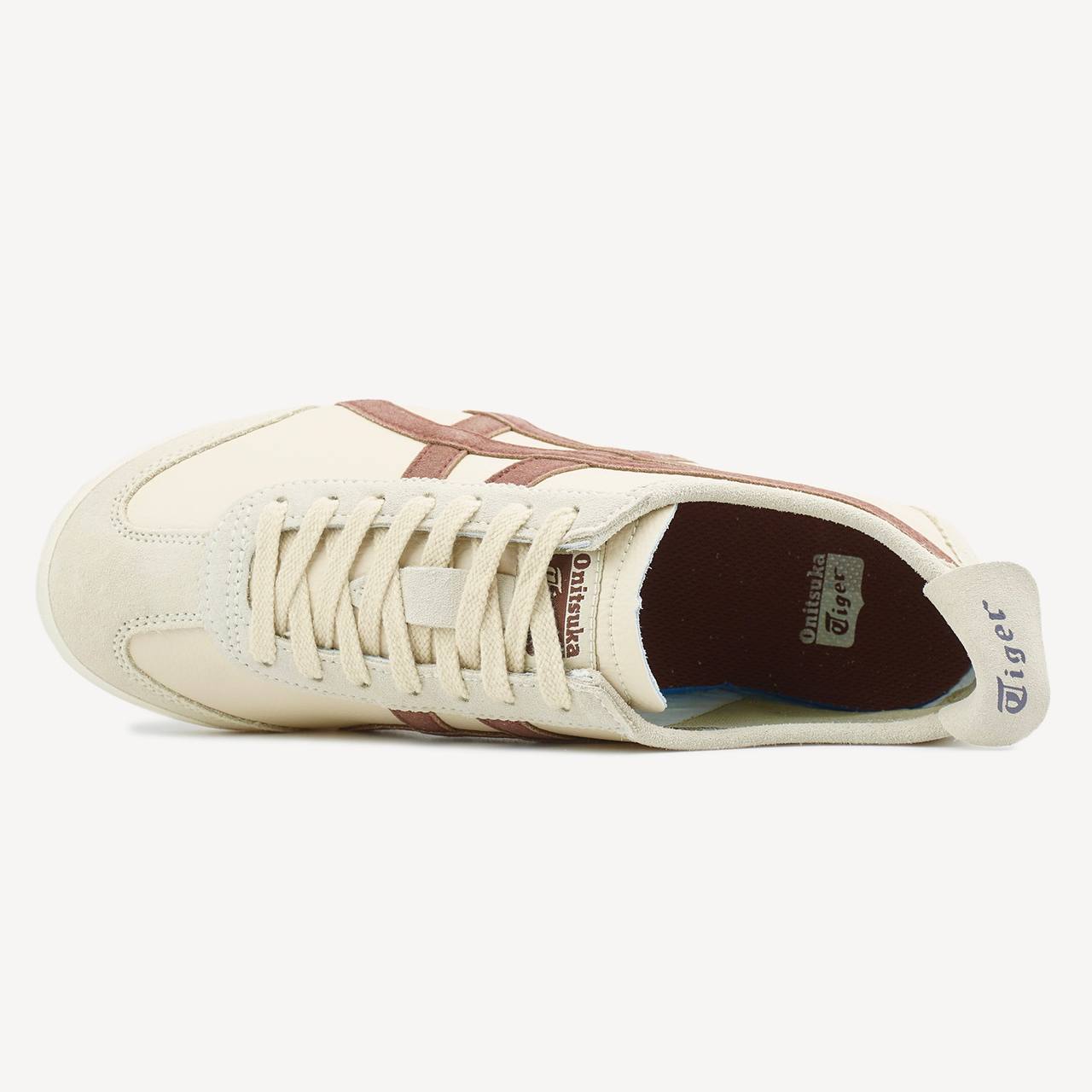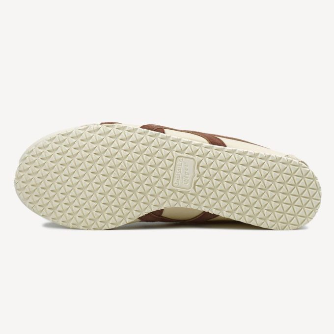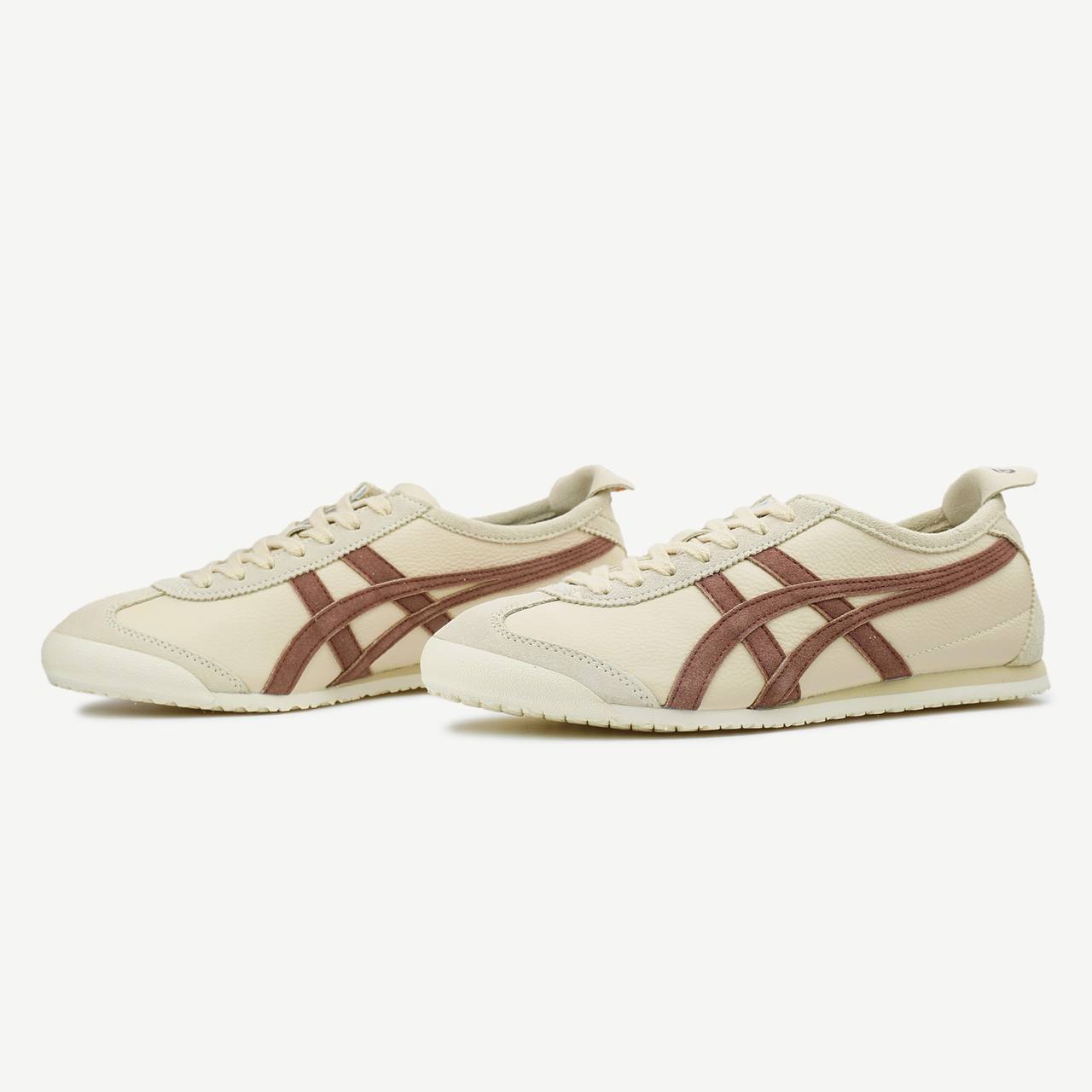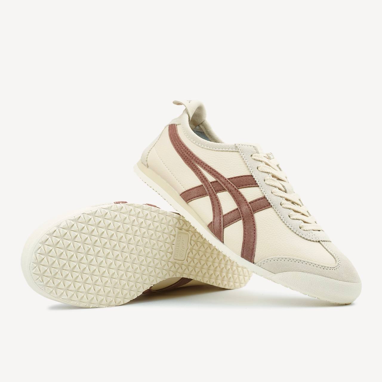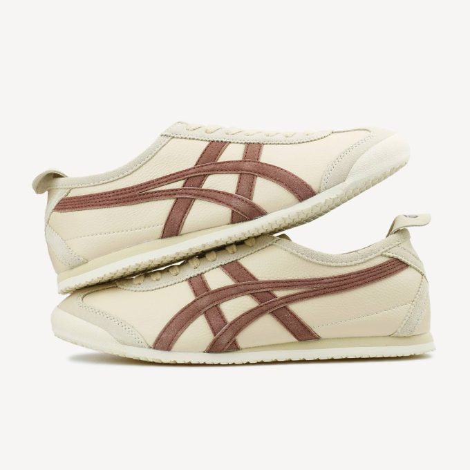 Asics Onitsuka Tiger Mexico 66 Beige/Brown — це кросівки з бежевим шкіряним верхом, коричневими замшевими смужками та тонкою гумовою підошвою, що поєднують ретро-дизайн 1960-х з сучасним комфортом.