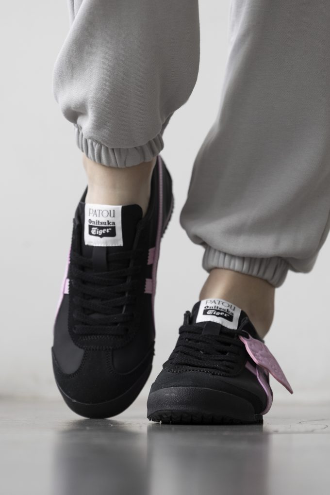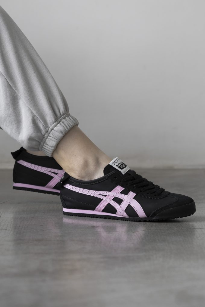 Asics Onitsuka Tiger Mexico 66 Black/Pink — легендарні кросівки у класичному стилі з сучасним акцентом. Чорний верх із натуральної шкіри доповнений рожевими смужками, що додають яскравості образу.