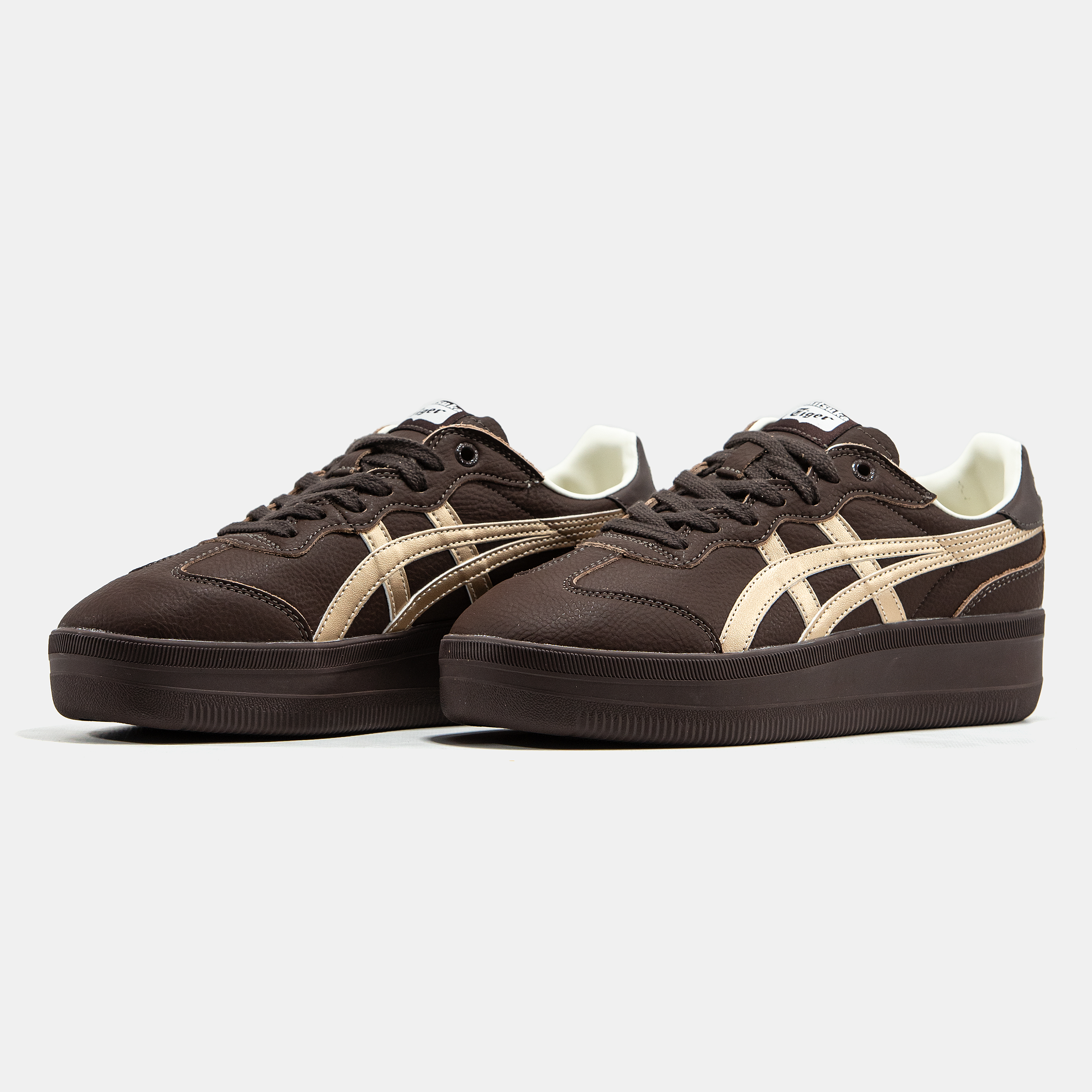 Asics Onitsuka Tiger Tokuten Brown Gold Platform — модель у коричневому кольорі з золотистими акцентами та високою підошвою, що поєднує ретро-настрій, виразний силует і комфортну посадку для повсякденного стилю.
