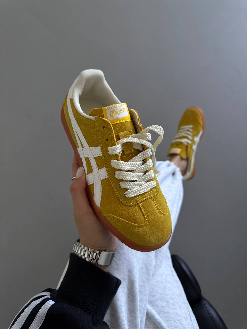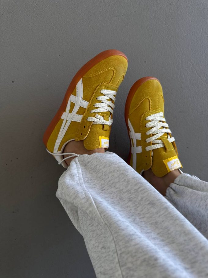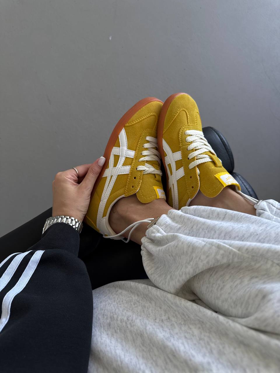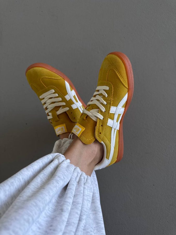 Asics Onitsuka Tiger Yellow White — стильне ретро-взуття з поєднанням яскравого жовтого та чистого білого кольорів класичний дизайн 1960-х із сучасними матеріалами.