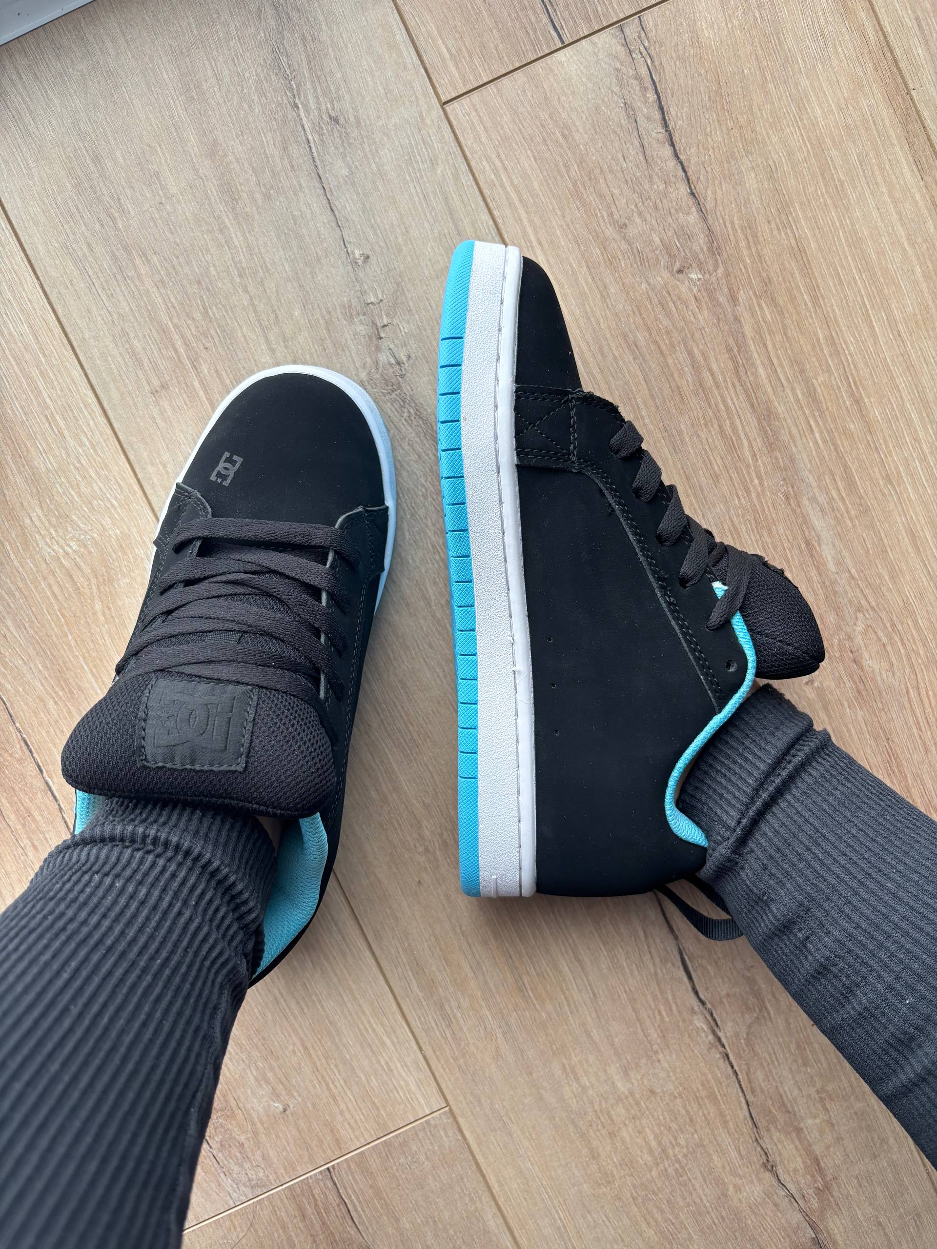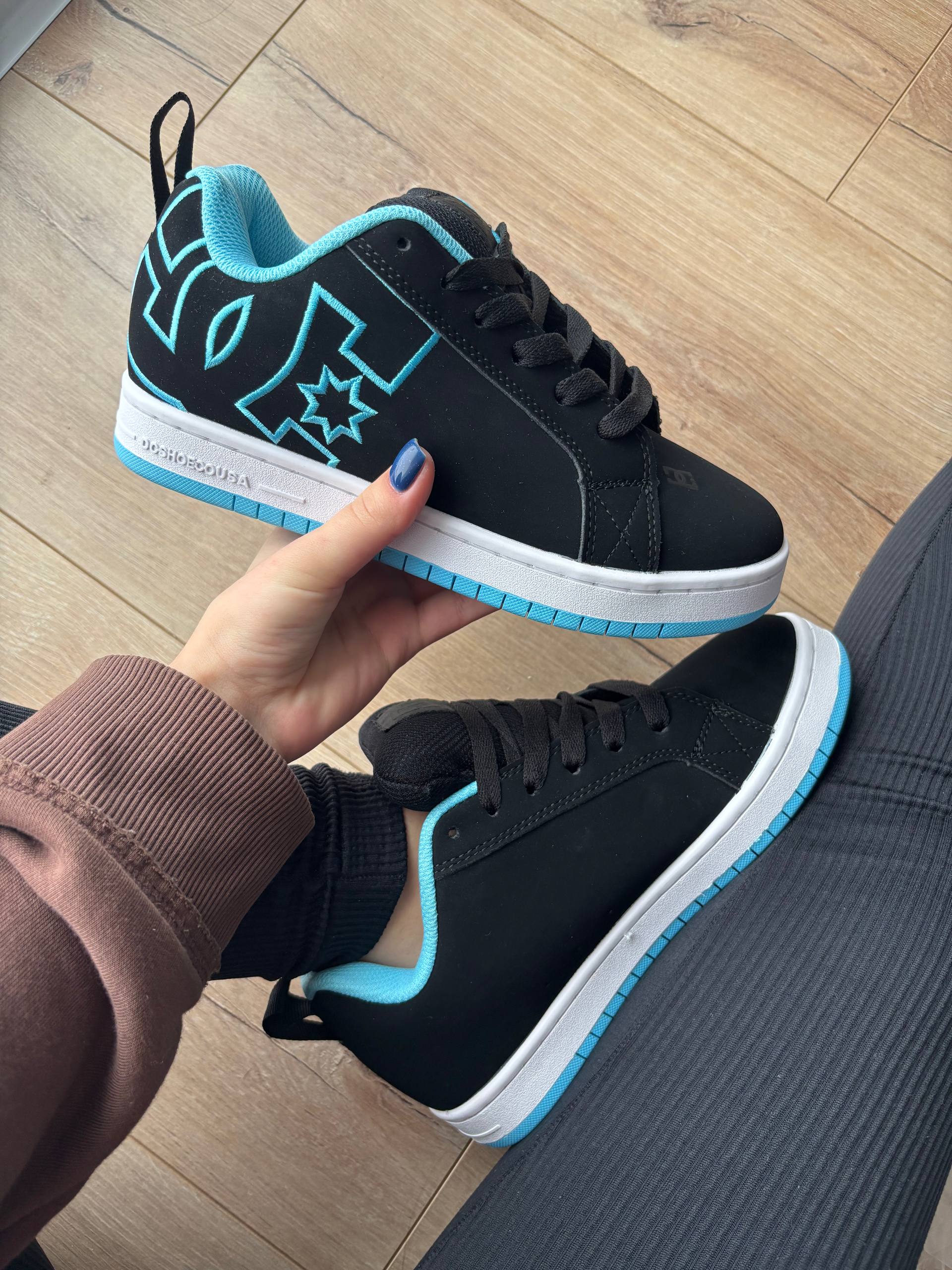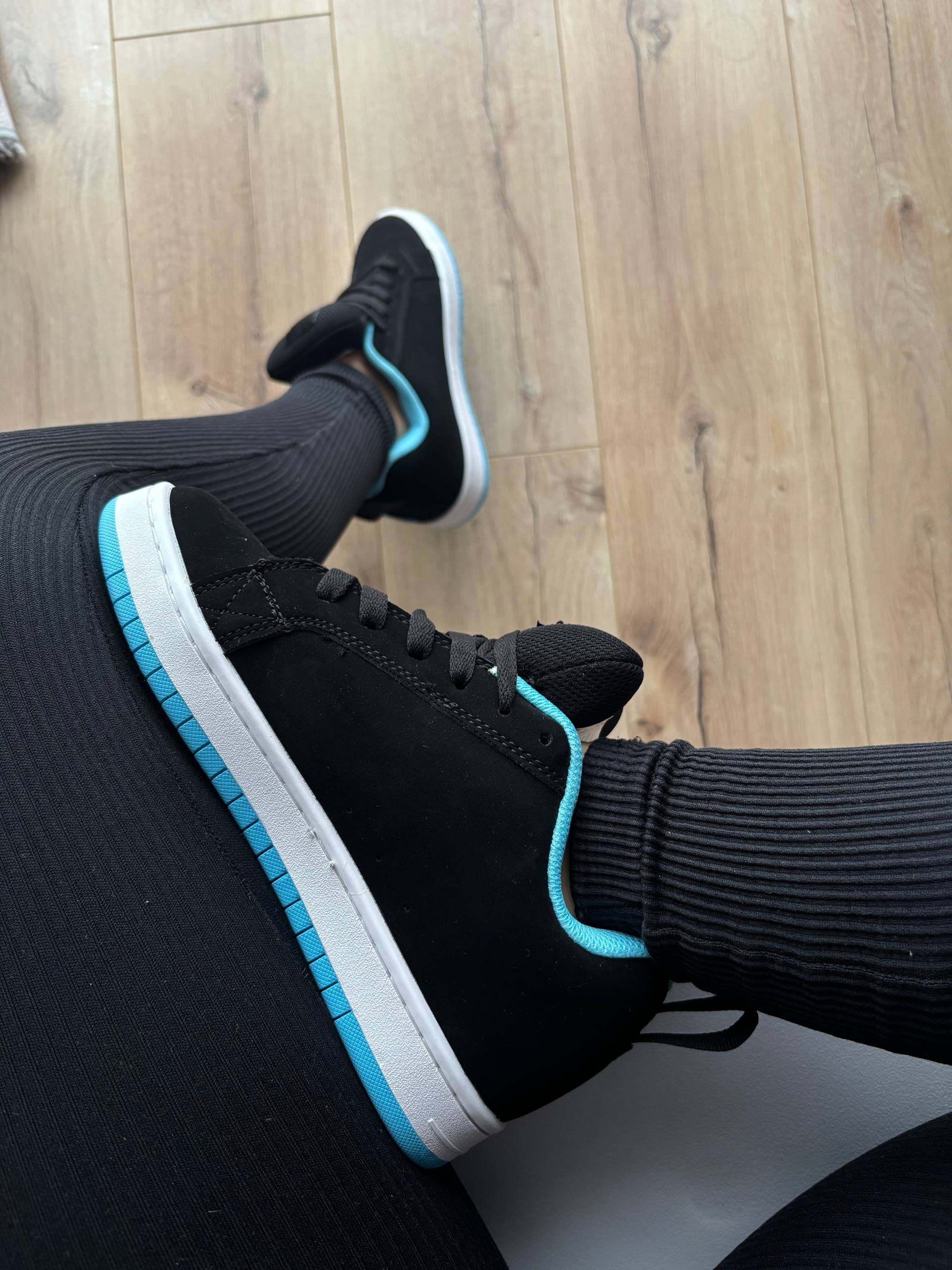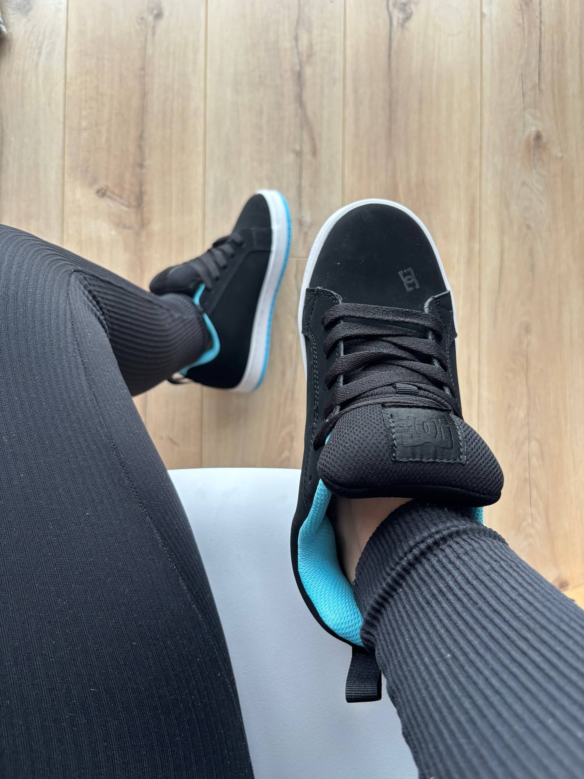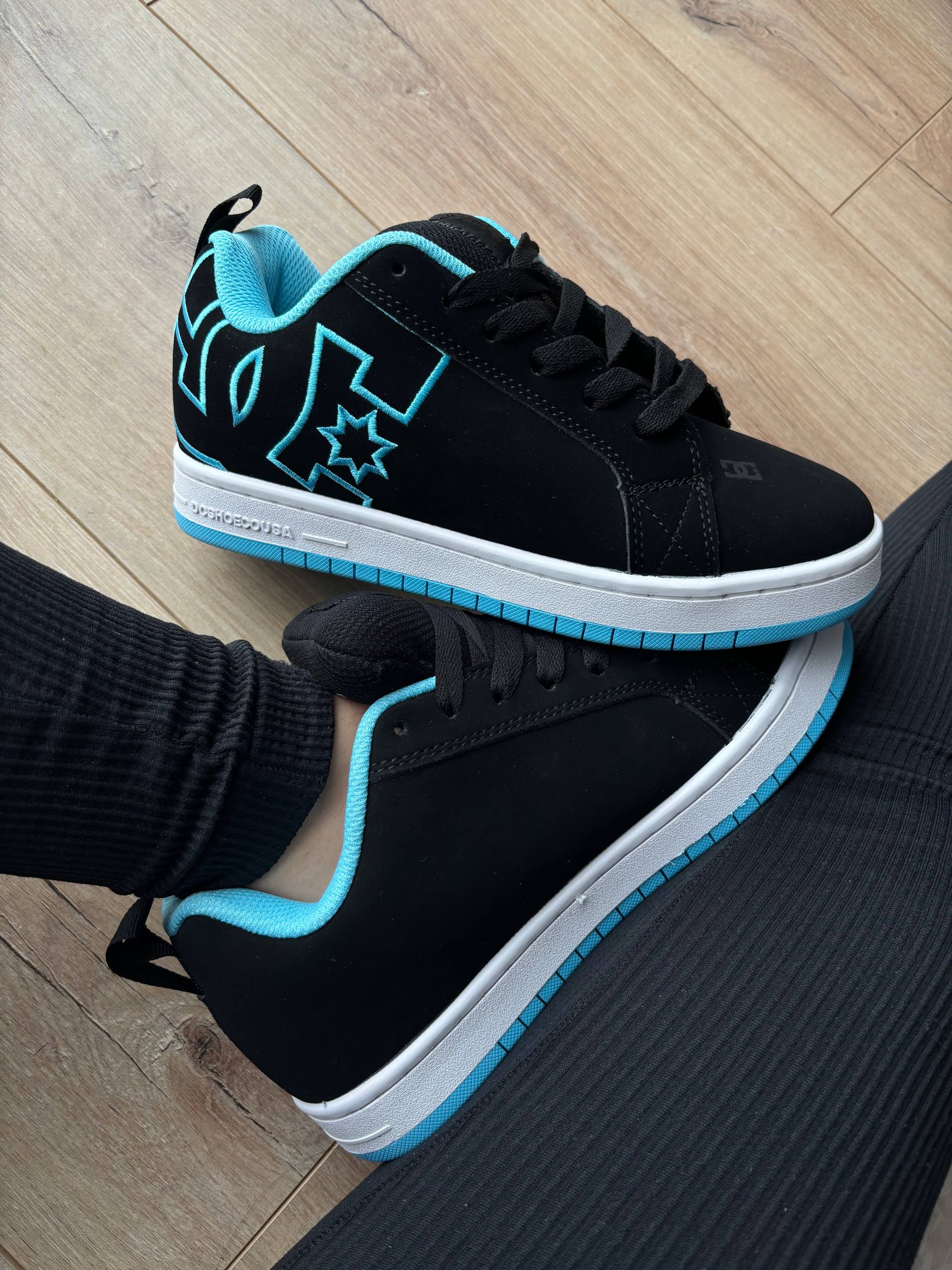 DC Court Graffik Black Blue — масивна модель у чорному кольорі з синіми акцентами та скейт-естетикою, що поєднує впізнаваний силует, комфортну посадку та виразний повсякденний стиль.