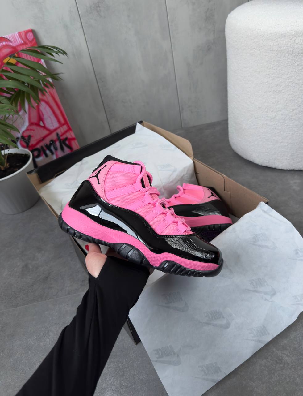 Jordan 11 Retro Black Pink — яскраві кросівки з культовим силуетом, що поєднують чорну базу з ефектними рожевими акцентами.
