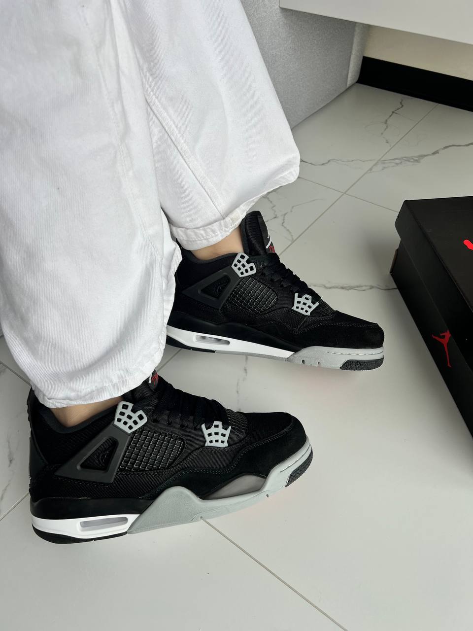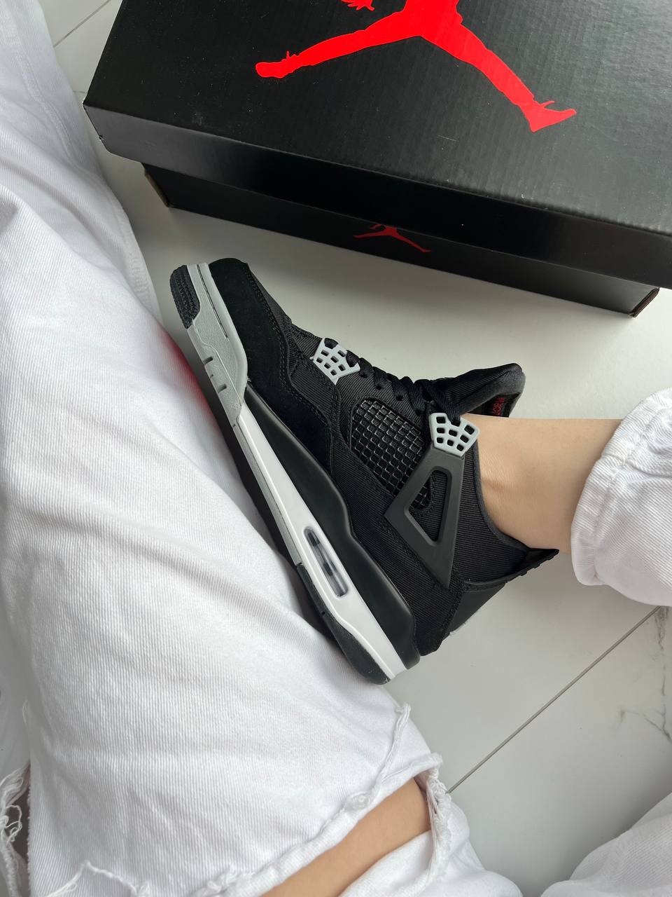 Jordan 4 Retro SE Black Canvas — стильна версія культової моделі Jordan 4, виконана в стриманій чорній гамі з акцентами сірого.