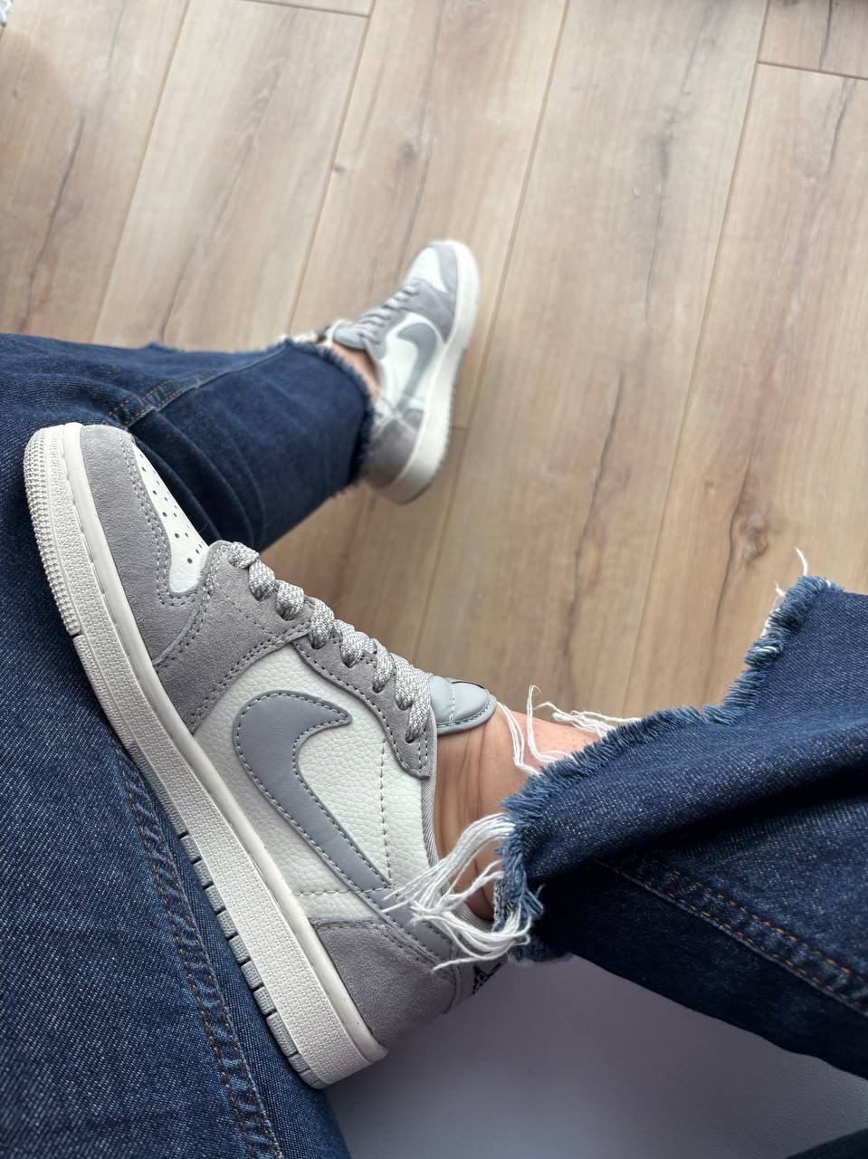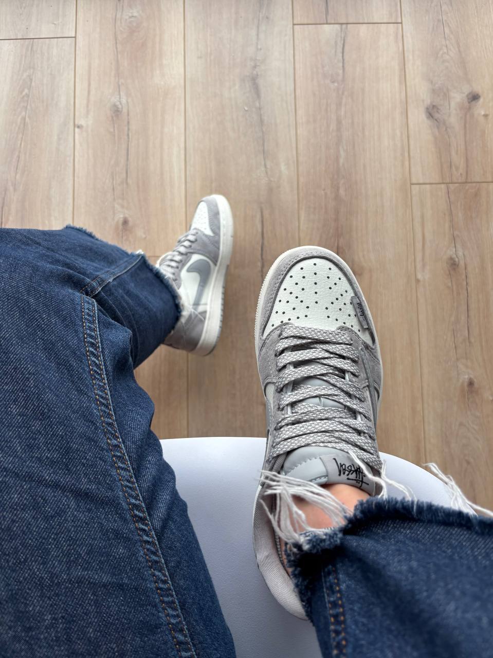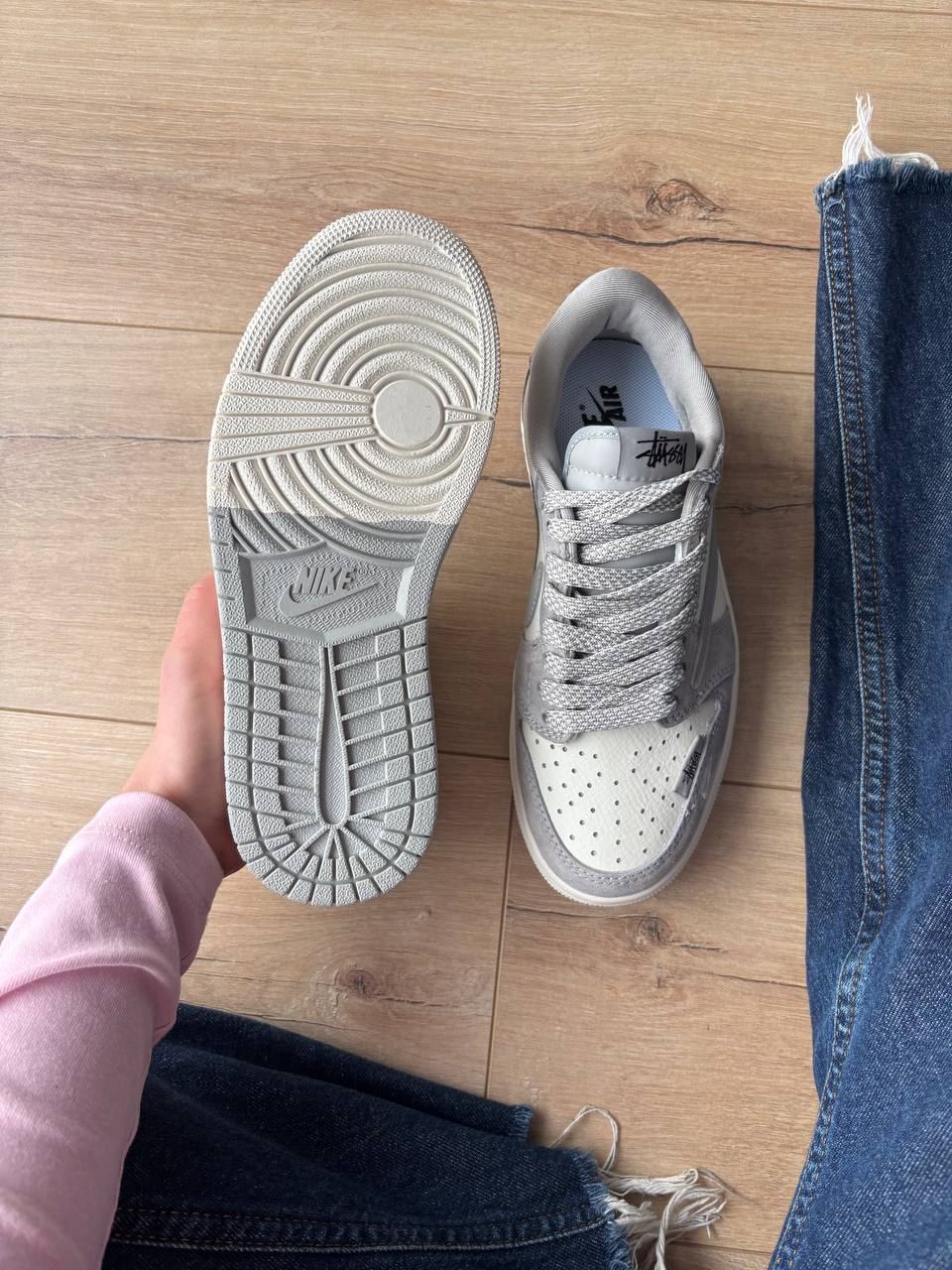 Jordan 1 Low x Travis Scott x Stussy Grey — стильні кросівки для повсякденного носіння у стриманому сірому відтінку з виразними деталями колаборації.