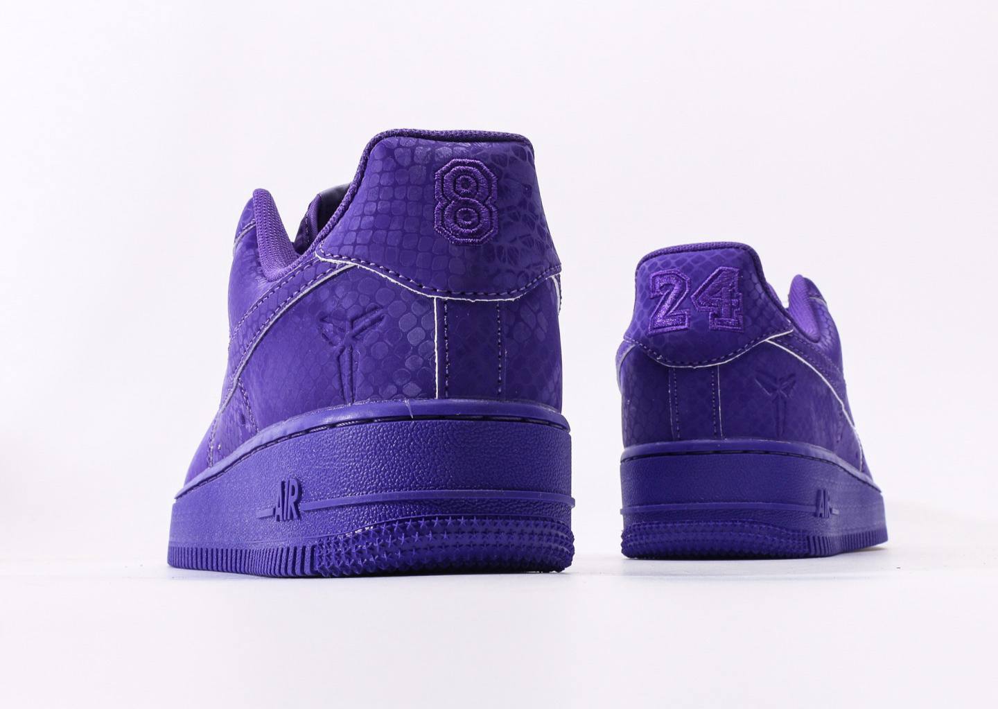 Kobe Bryant x Nike Air Force 1 Low ‘Court Purple’ — лімітована версія класичних Air Force 1, присвячена легендарному Кобі Браянту. Кросівки виконані у фірмових кольорах «Lakers» — білий верх зі вставками фіолетового відтінку Court Purple.
