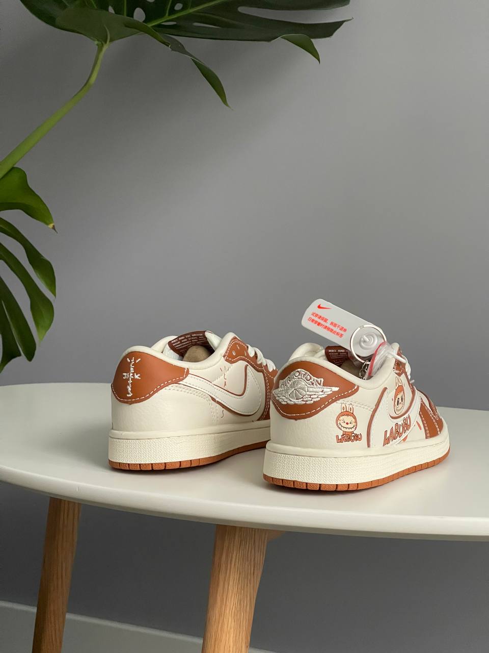 Labubu x Travis Scott x Nike Air Jordan 1 Low Beige — кросівки на щодень із унікальним дизайном у спокійних тонах. Легкий замшево-текстильний верх забезпечує комфорт і дихаючі властивості, а низький силует підходить для будь-якого стилю.