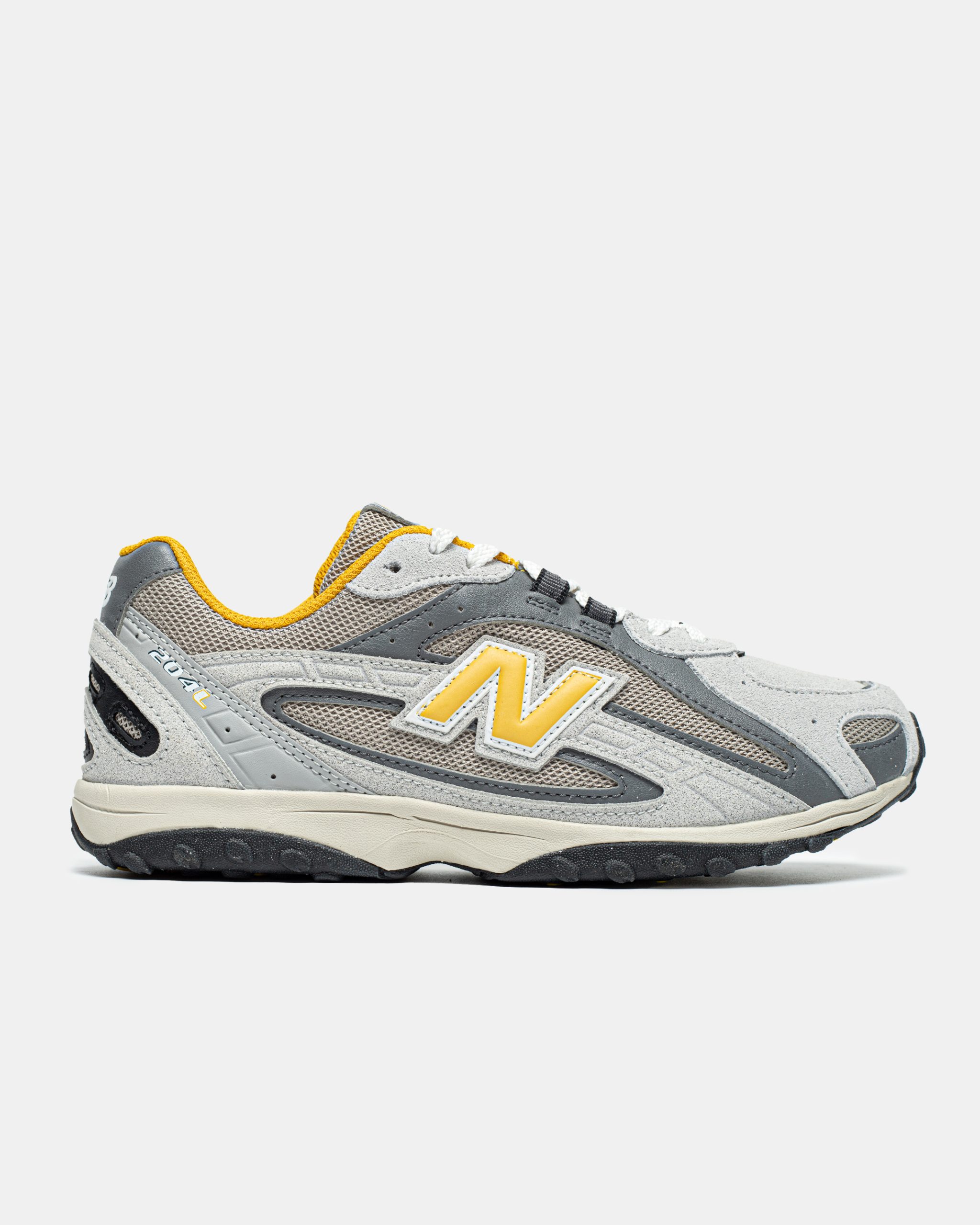 New Balance 204L “Silver Metallic” — стильна модель у сірих відтінках із жовтими деталями та витягнутим силуетом, що поєднує сучасний мінімалізм та комфортну посадку для повсякденного стилю.