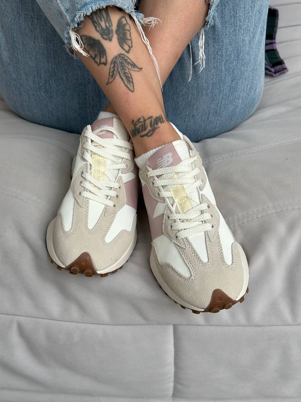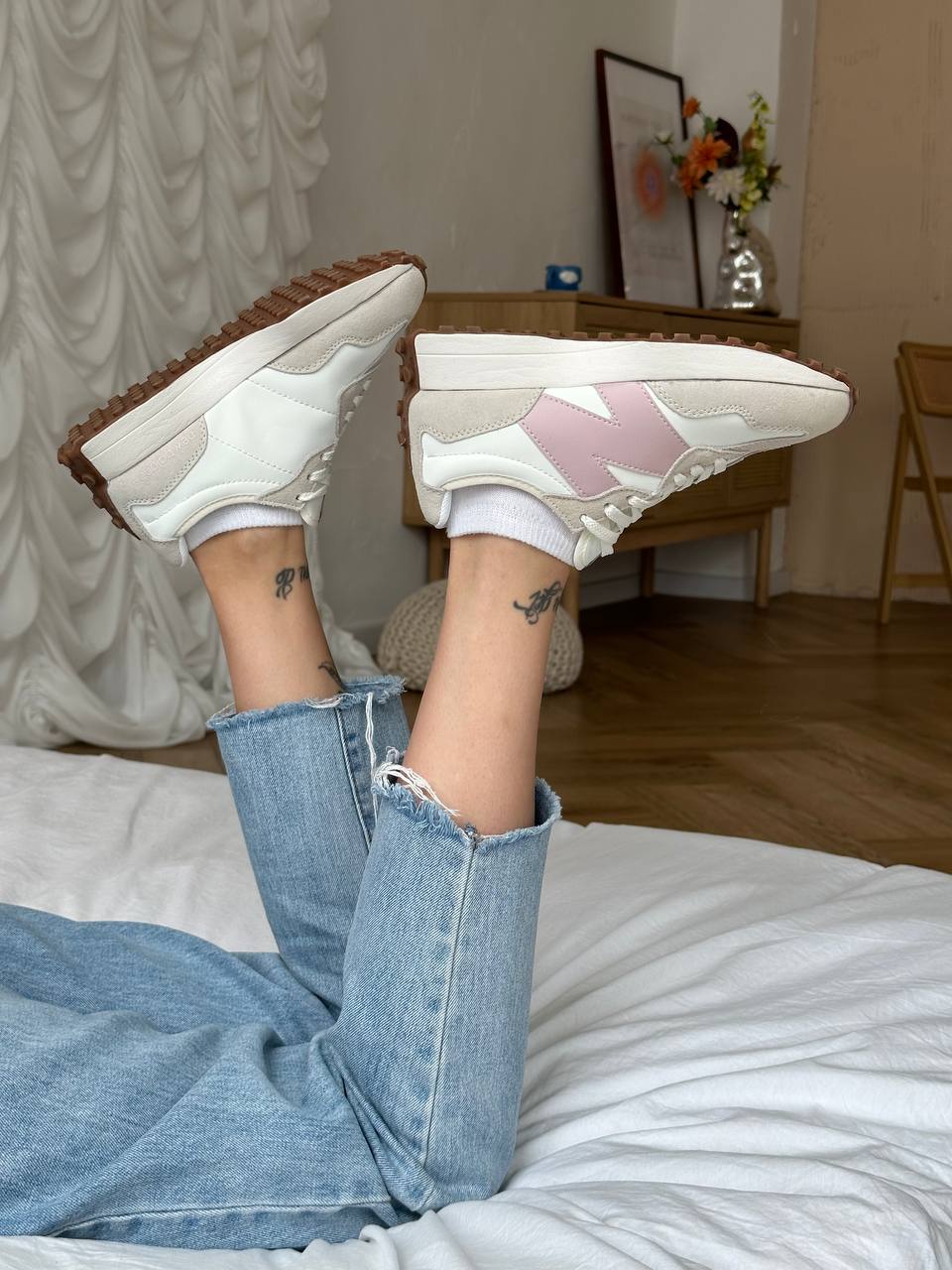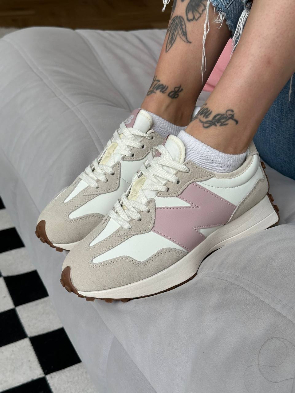 New Balance 327 Pink Grey White — ідеальний вибір для повсякденного використання. Завдяки легким матеріалам, зручній посадці та приємному дизайну в ніжно-рожевих, сірих і білих тонах ця модель чудово підійде для щоденних прогулянок, справ у місті або активного відпочинку.