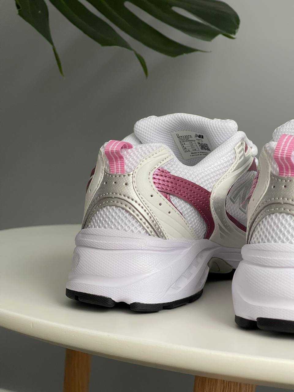 New Balance 530 White Pink — легка модель у поєднанні білого та рожевого кольорів, що поєднує ретро-естетику, комфорт і сучасний стиль.