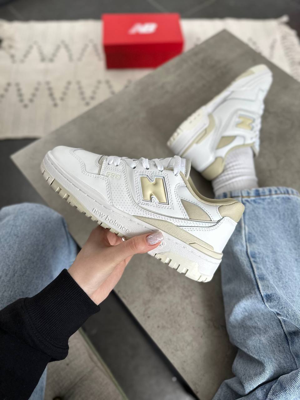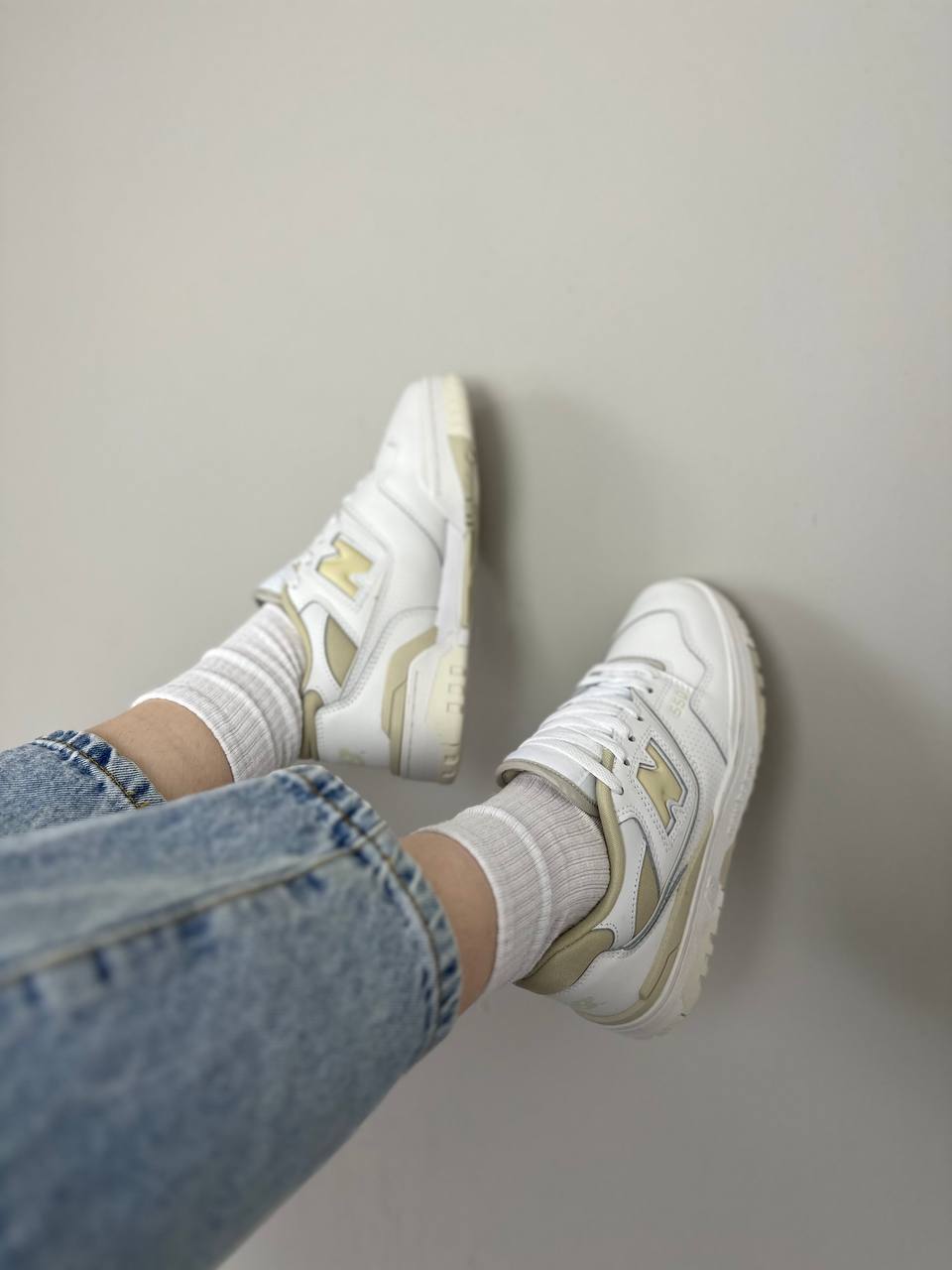 New Balance 550 Silver Birch — модель у світлих тонах із бежевими акцентами, що поєднує стриману палітру, комфорт і лаконічний дизайн для стильного щоденного використання.