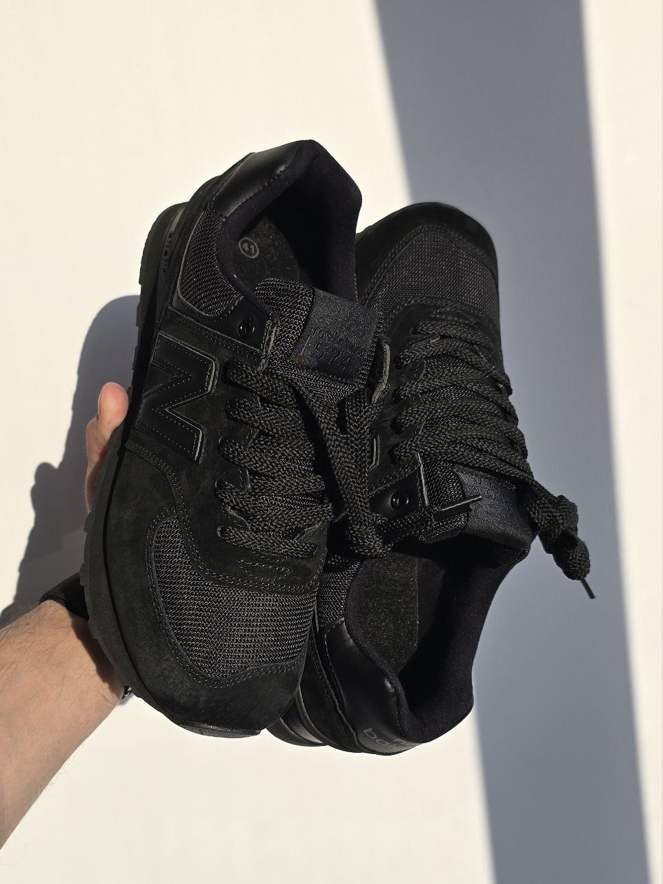 New Balance 574 Black — стримана модель у повністю чорному виконанні з впізнаваним силуетом, що поєднує комфортну посадку, акуратний дизайн та універсальність для щоденного використання.