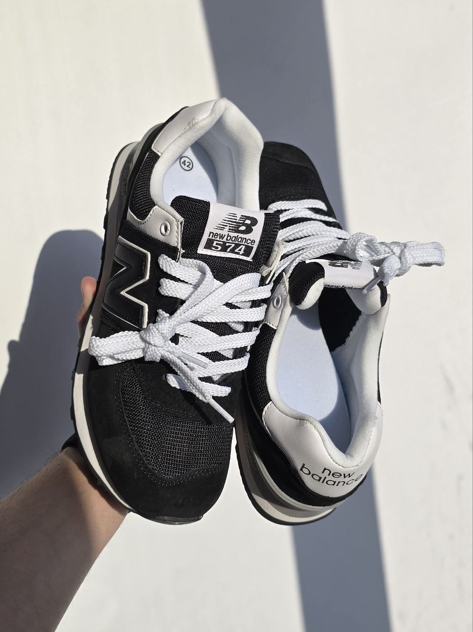 New Balance 574 Black / White — класична модель у чорному та білому кольорах з лаконічним дизайном, яка поєднує комфортну посадку, збалансований силует та універсальність для щоденного носіння.