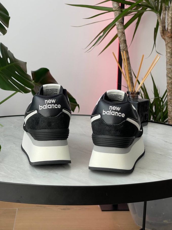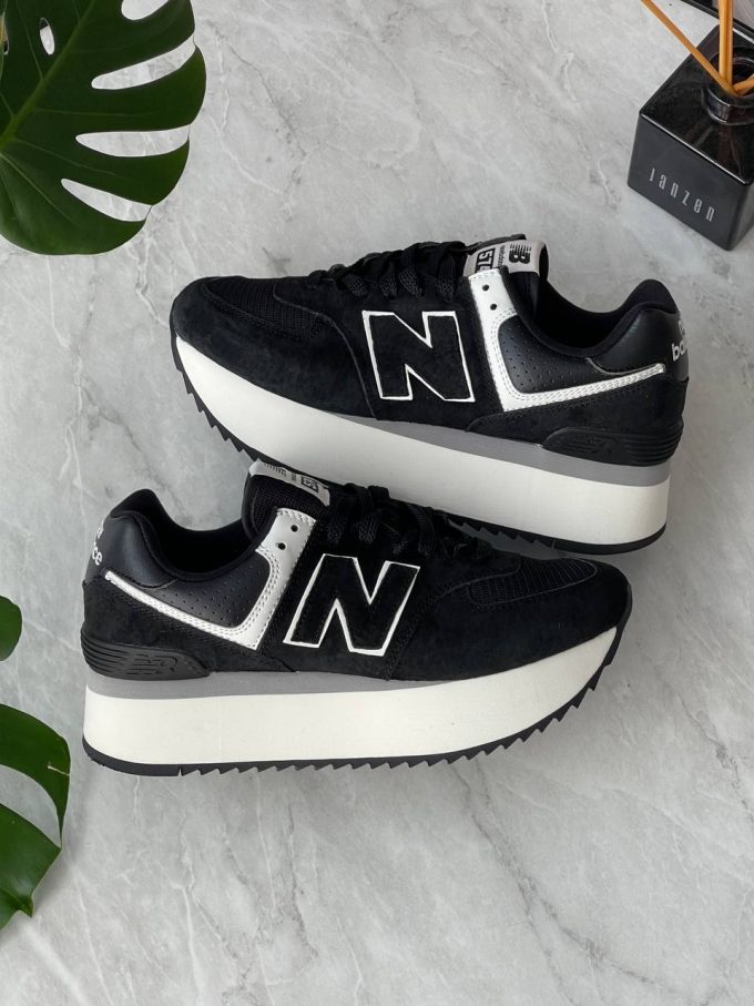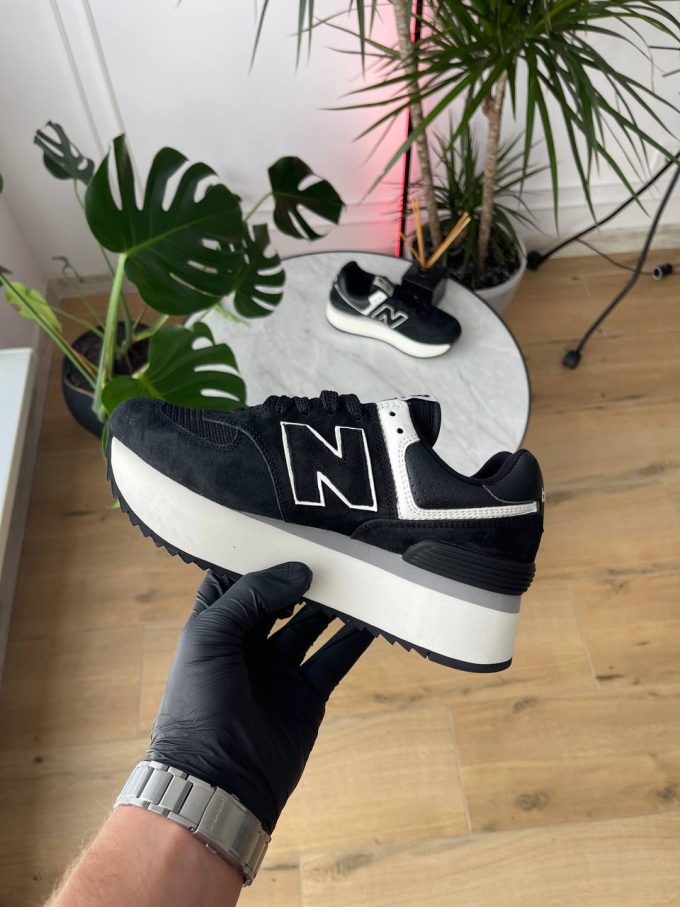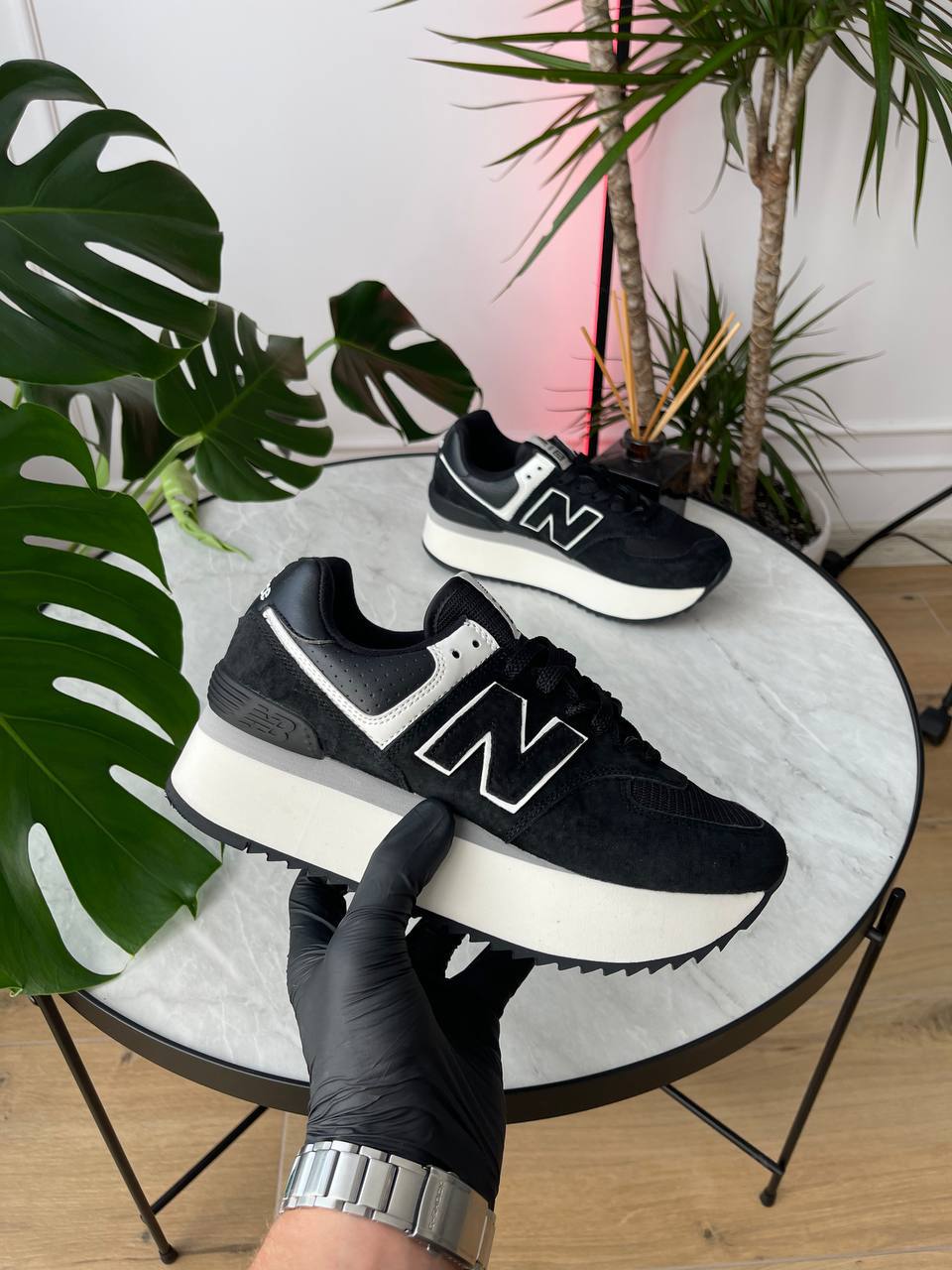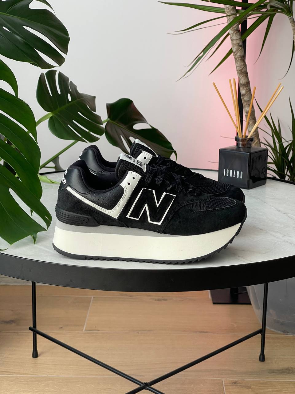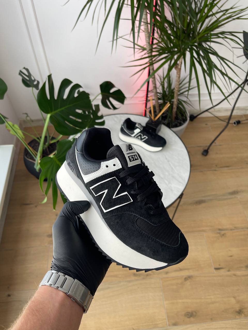 New Balance 574+ Platform Black — кросівки в класичному чорному кольорі з високою підошвою, що поєднують ретро-силует, сучасний акцент і комфорт на кожен день.