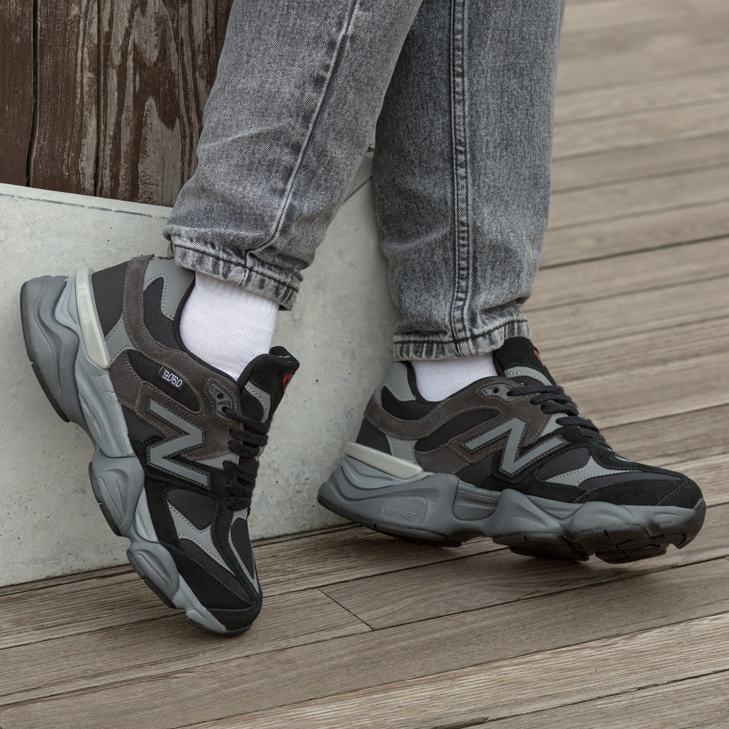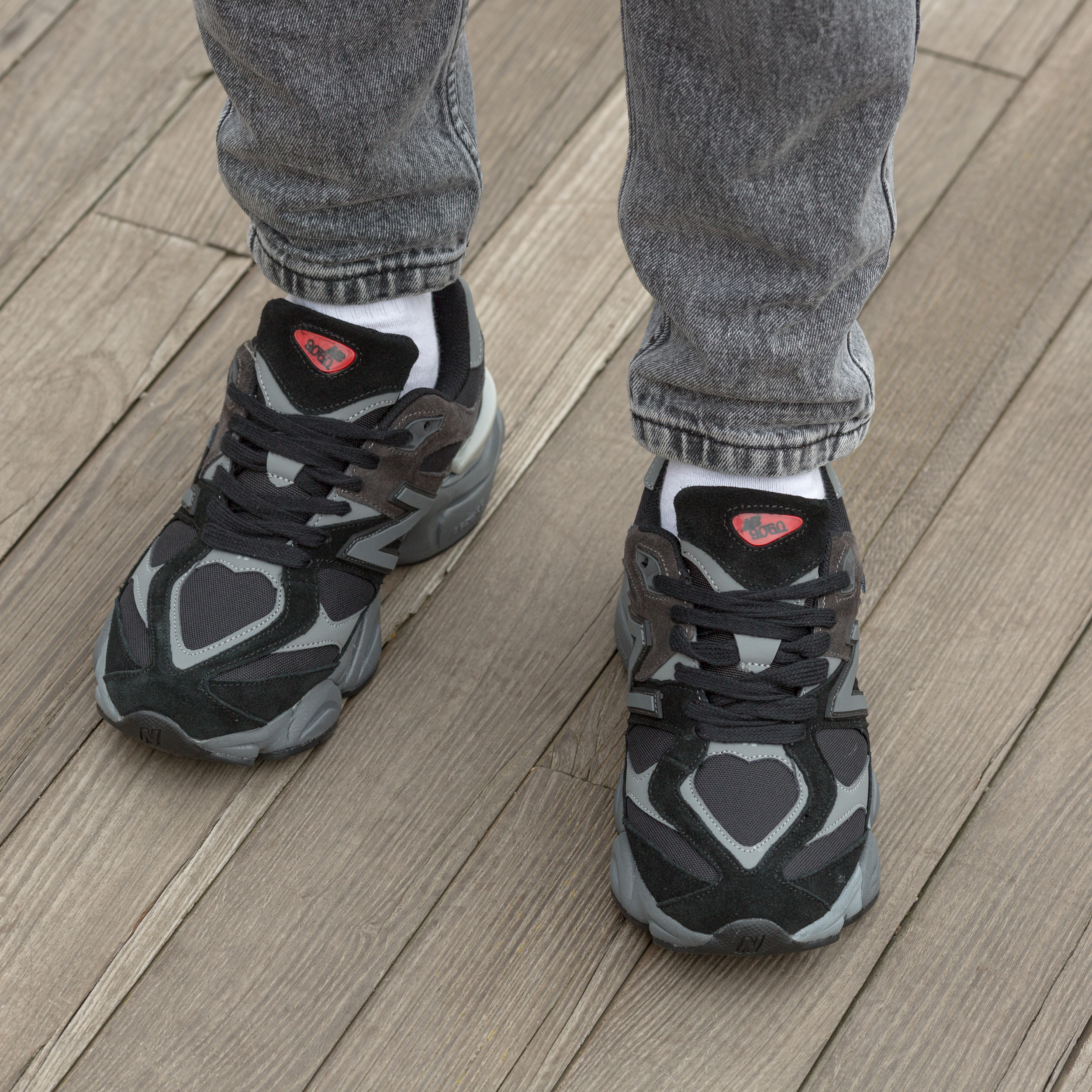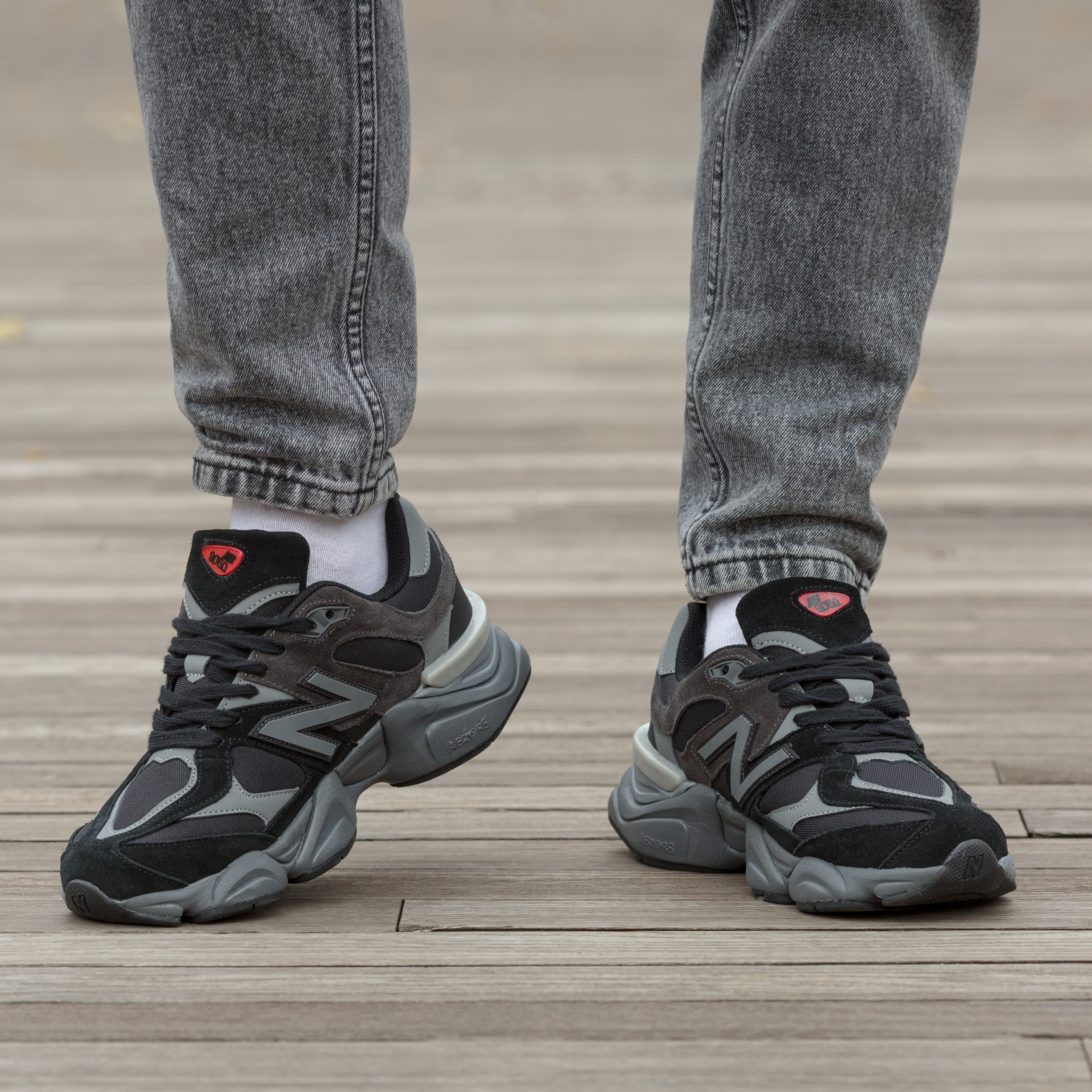 New Balance 9060 Black Grey Red — стильні, міські кросівки в темних тонах із виразними червоними деталями, що привертають увагу. Комфортні, з масивною амортизованою підошвою, ідеальні для щоденного носіння з характером.