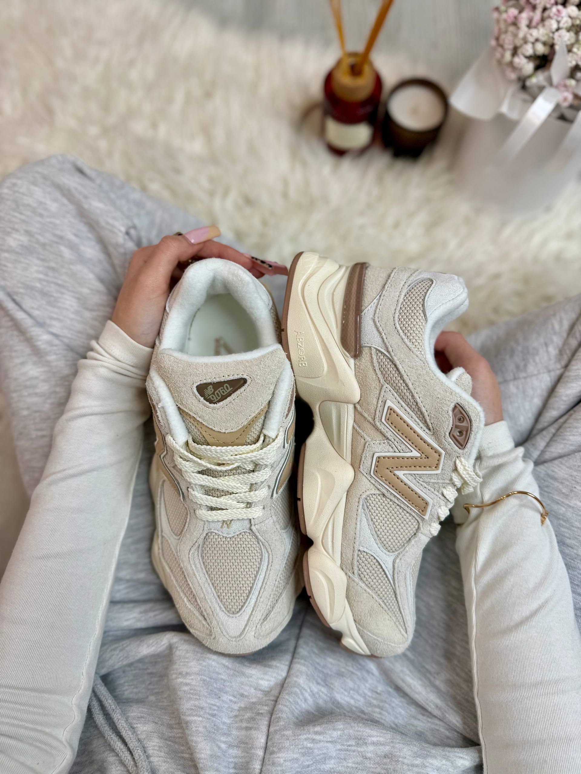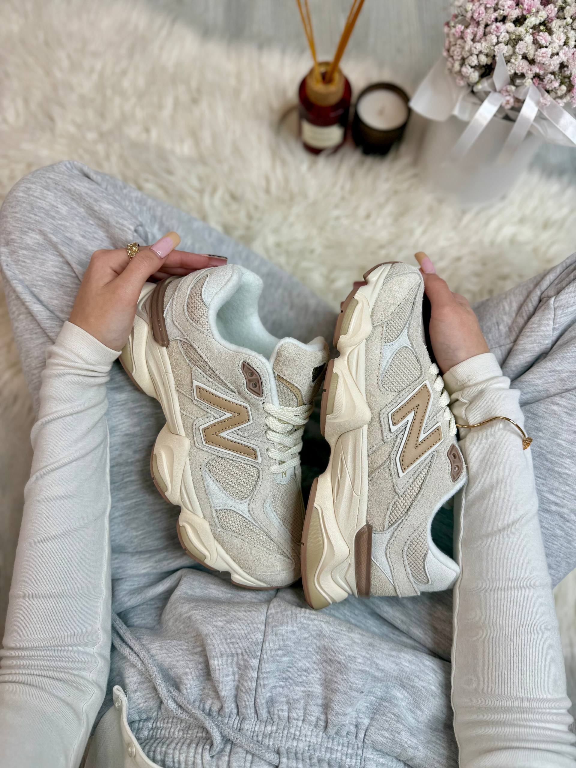New Balance 9060 White Beige — сучасна модель у поєднанні білого та бежевого відтінків із масивною підошвою та комфортною посадкою, що створює стильний і універсальний образ на кожен день.