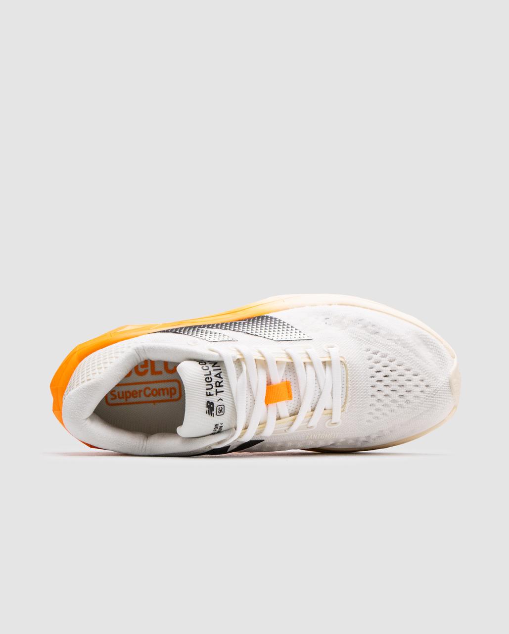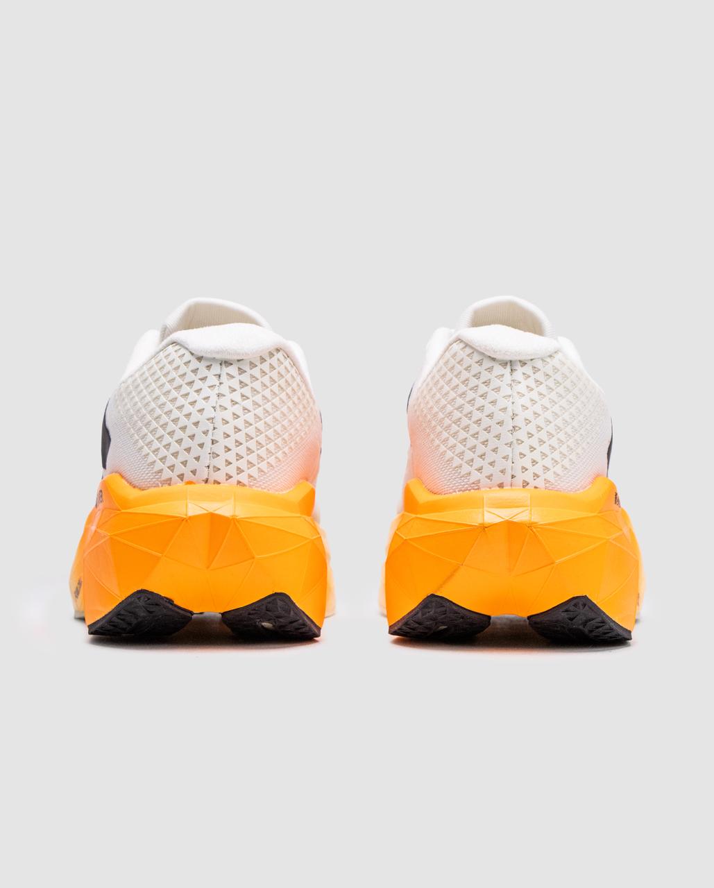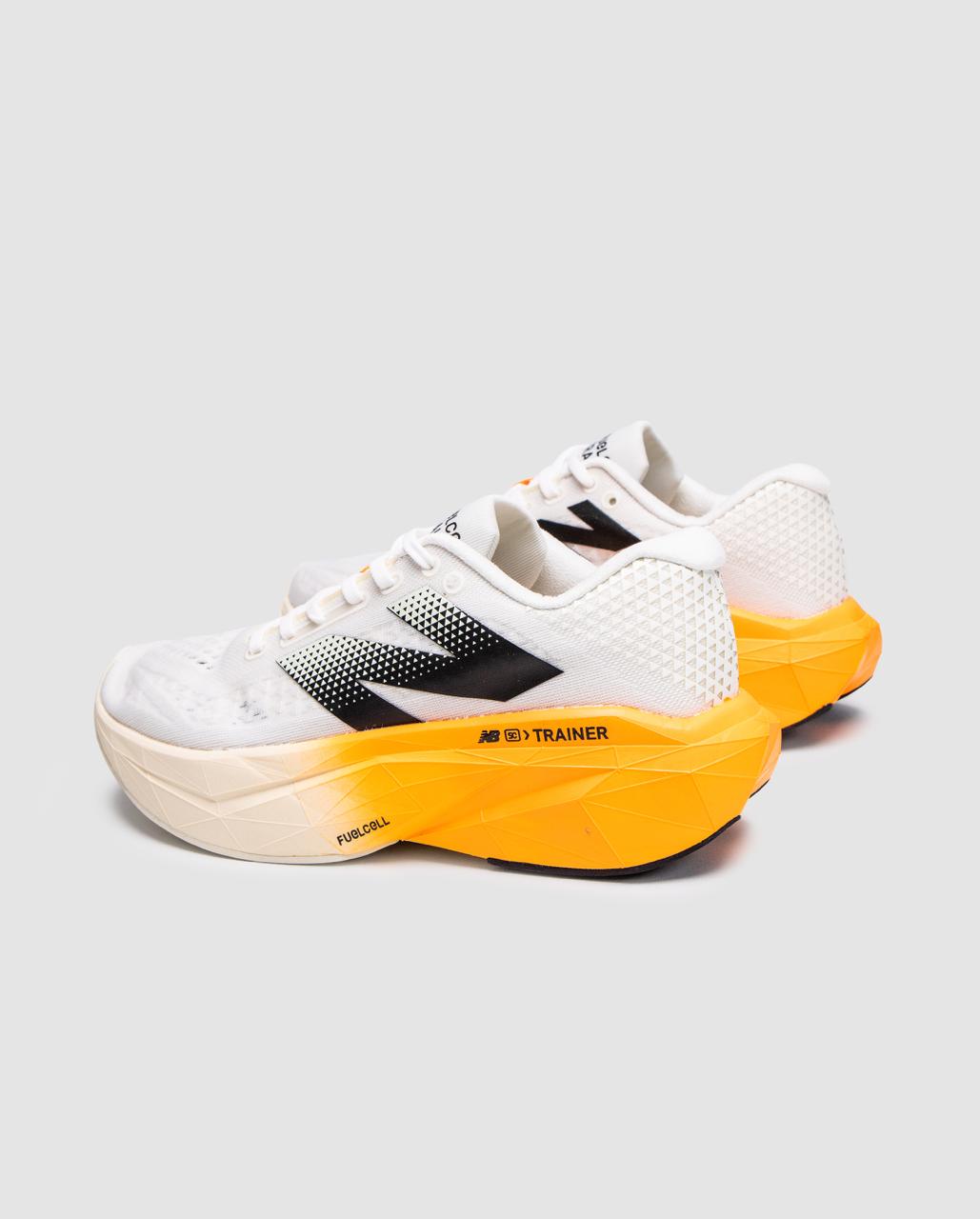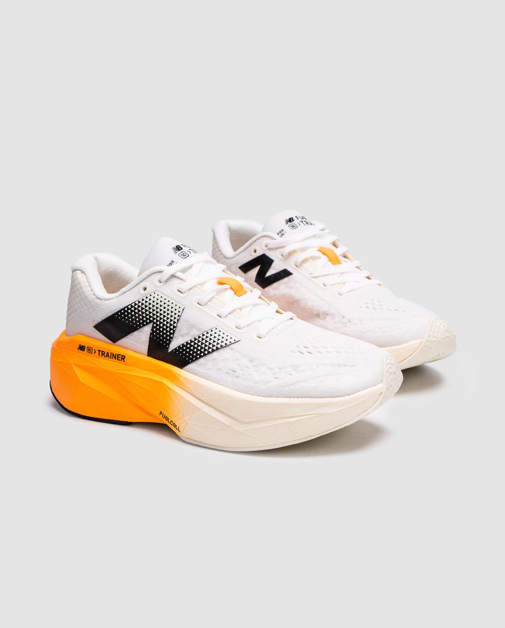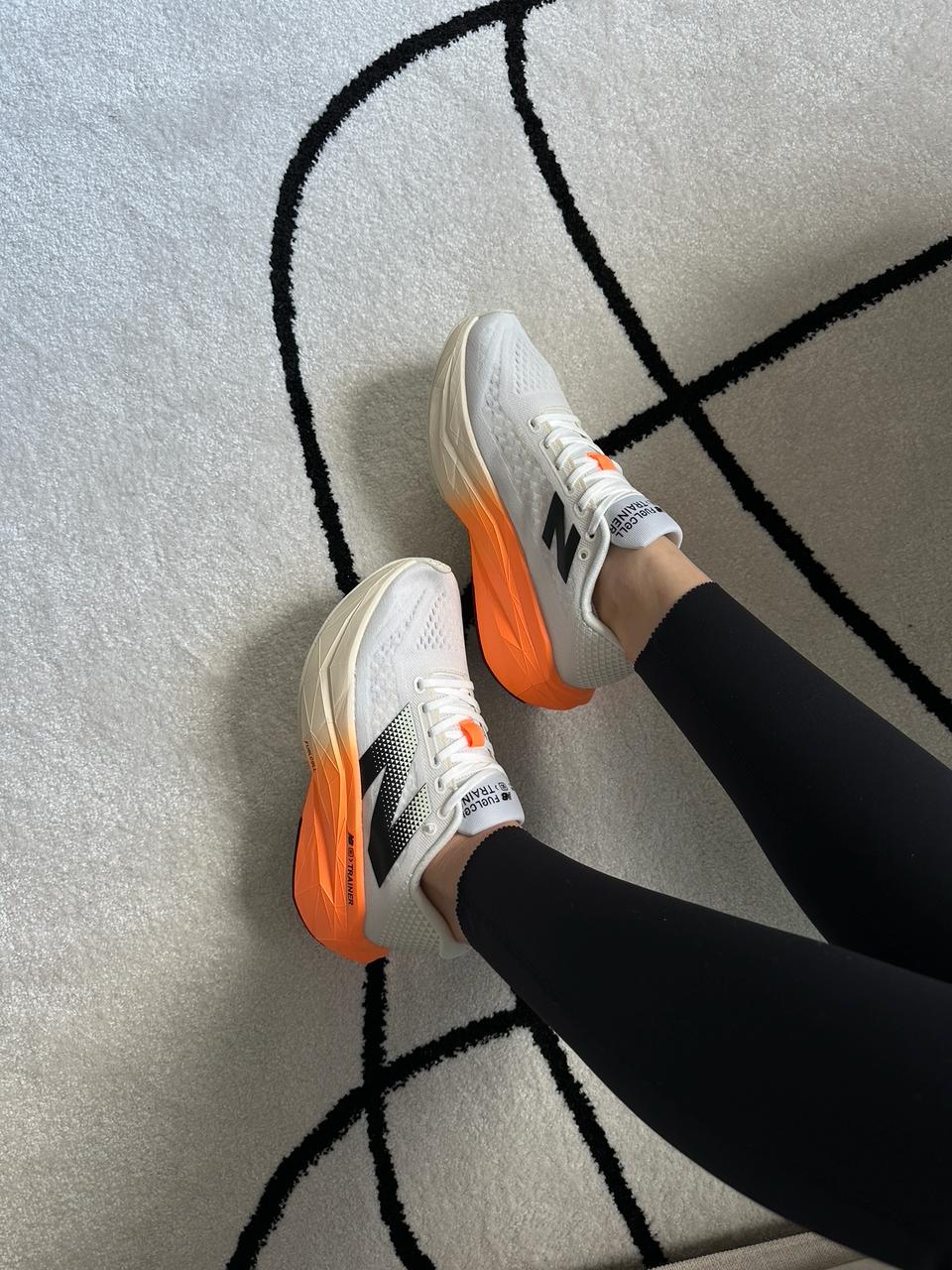 New Balance FuelCell SuperComp Elite V4 White/Orange — це кросівки з карбоновою пластиною та вибуховою амортизацією, створені для швидкості на довгих дистанціях.